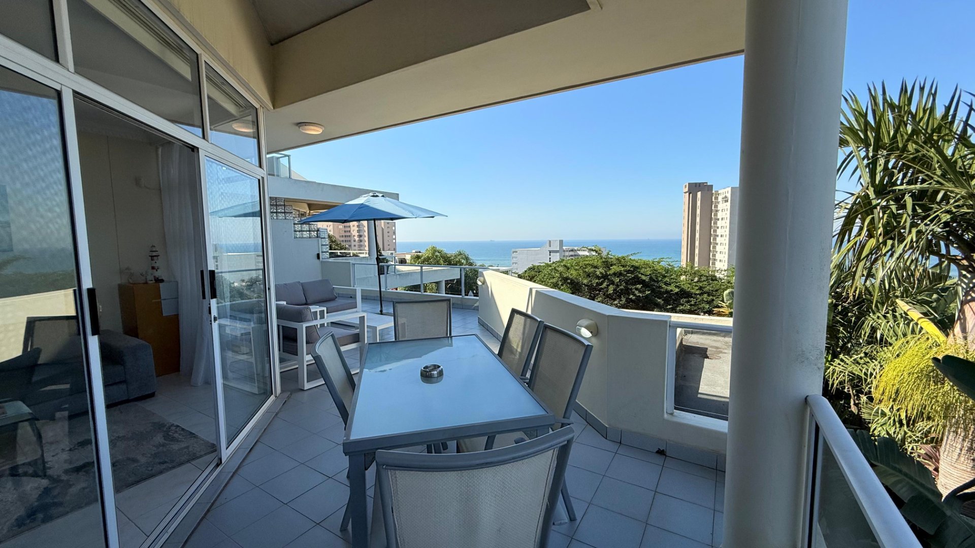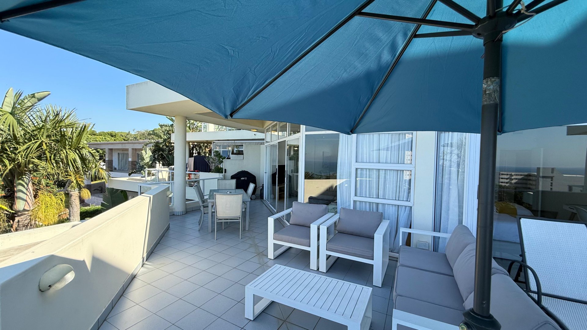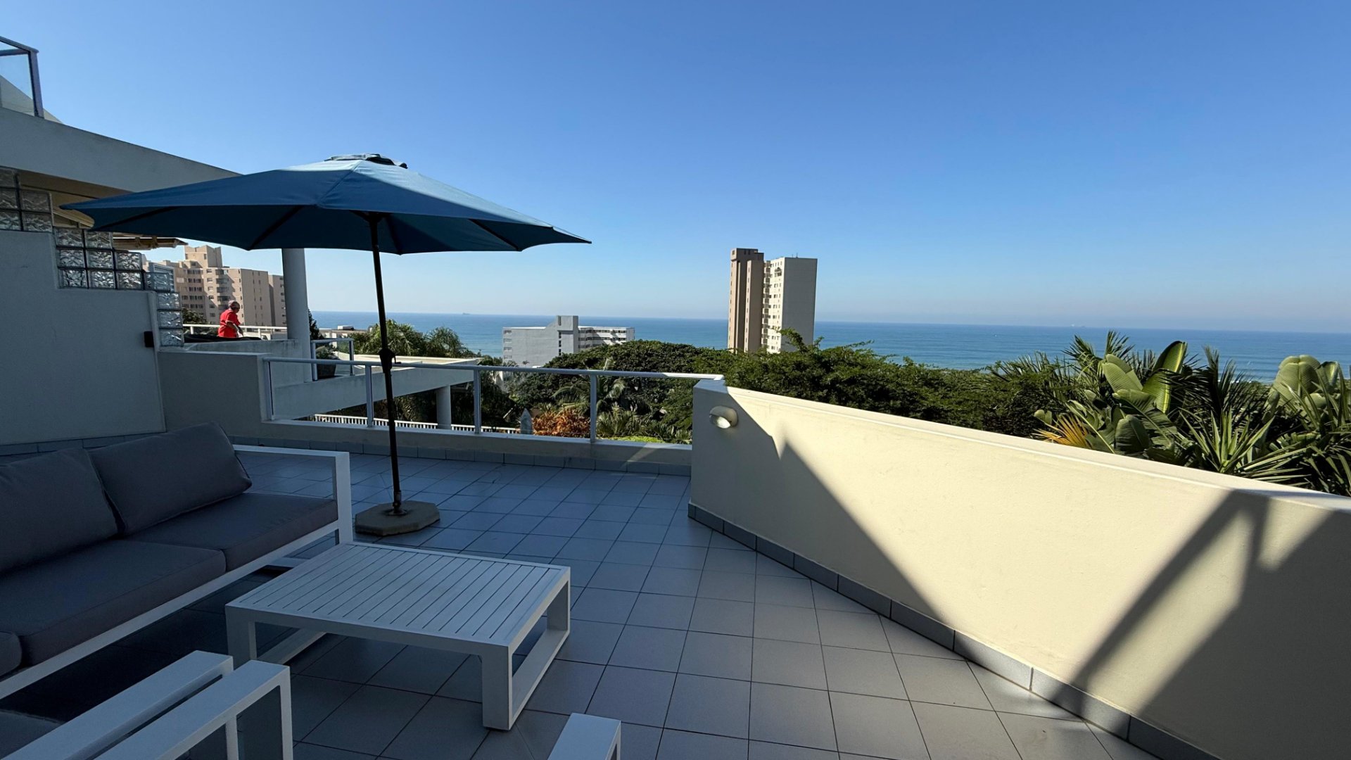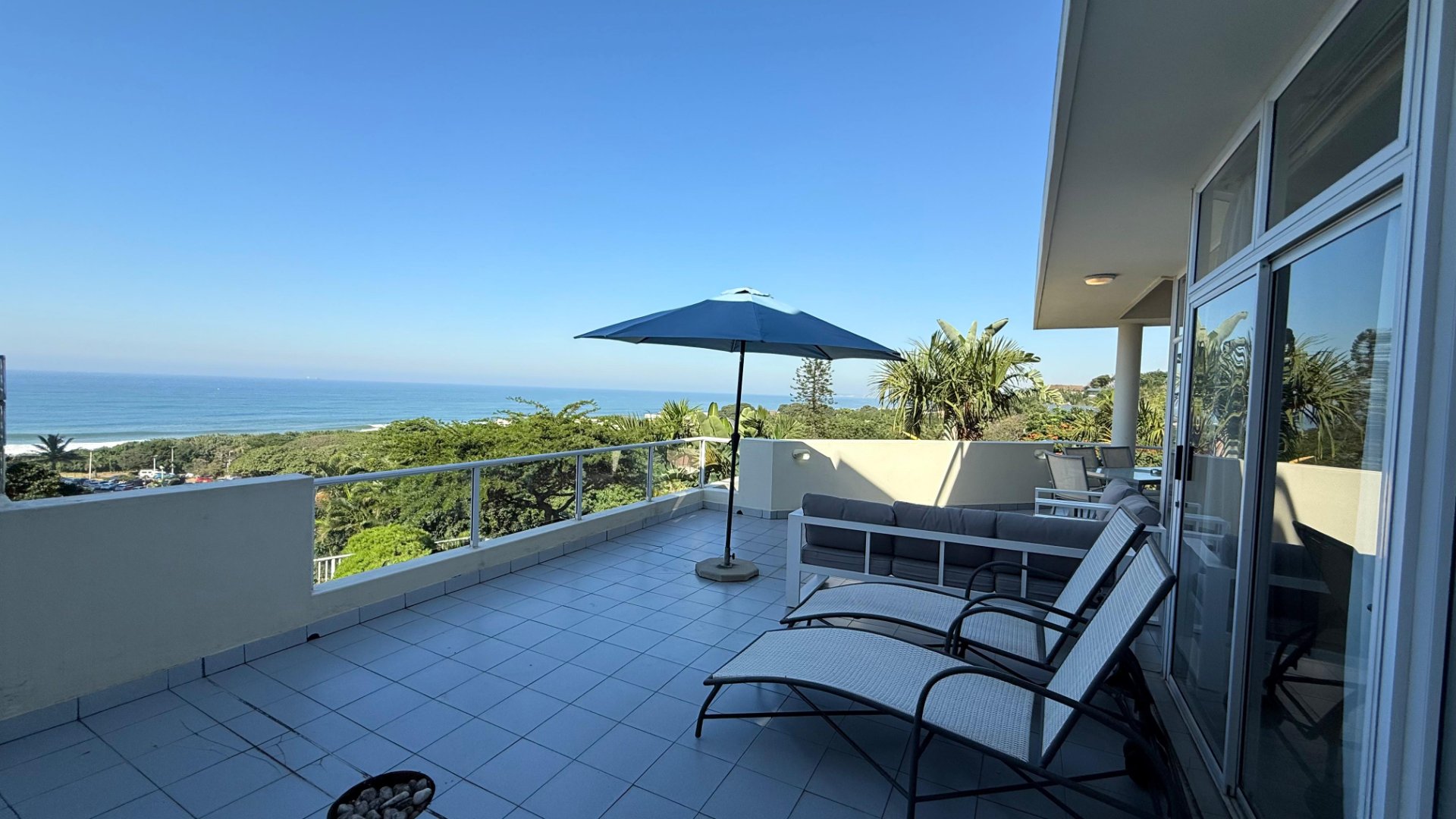 An exclusive complex located on a quiet road with views that stretch from Durban to Umhlanga, fully furnished bar bedding and linen. Three spacious bedrooms and two full bathrooms, the main being en suite. The kitchen is well equipped and ready for any culinary challenge. Large windows allow abundant natural light to flow through the open plan lounge and dining room. An expansive covered patio is ideal for relaxing and unwinding while taking in the surrounding splendour. The apartment is fully air conditioned.