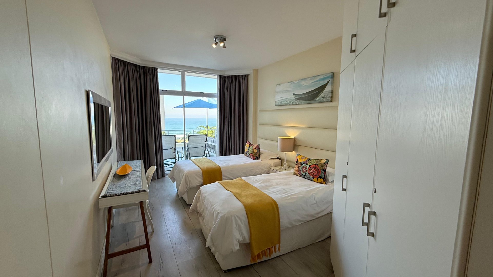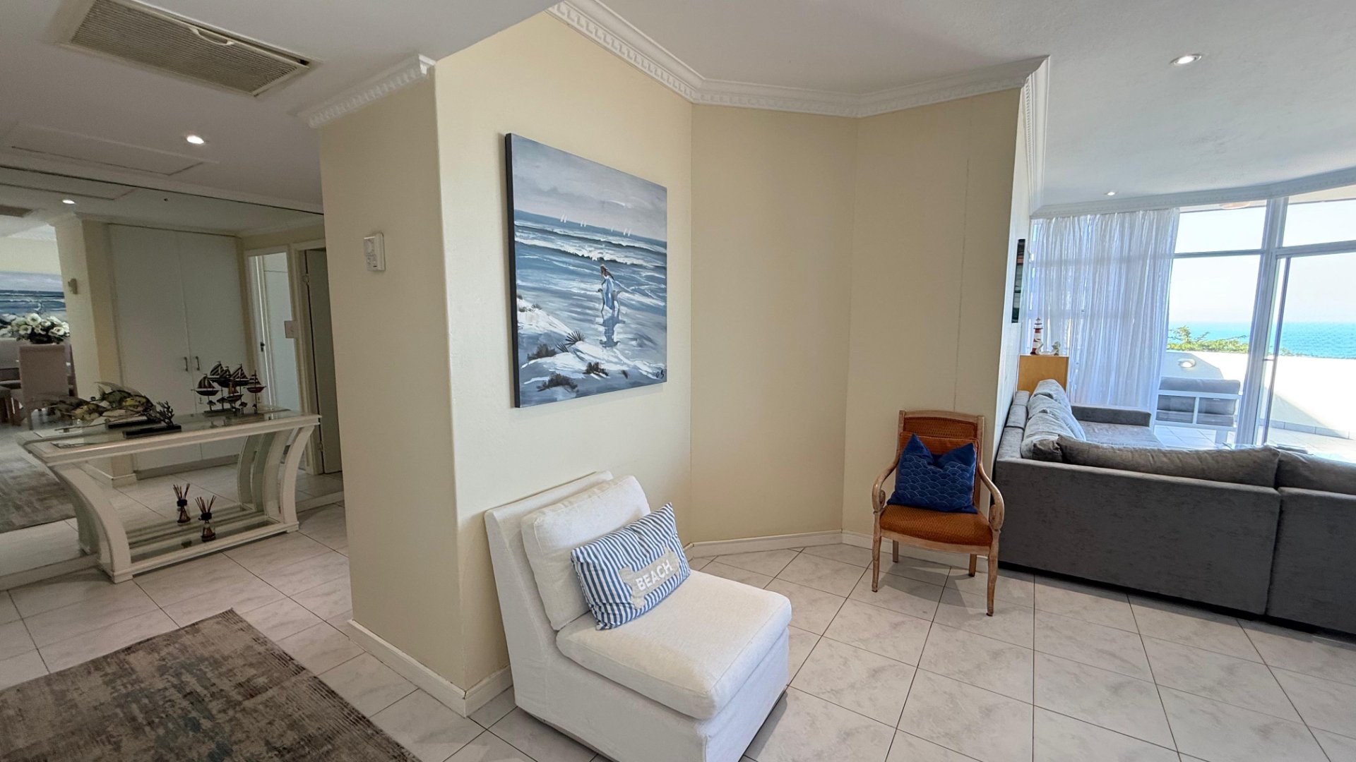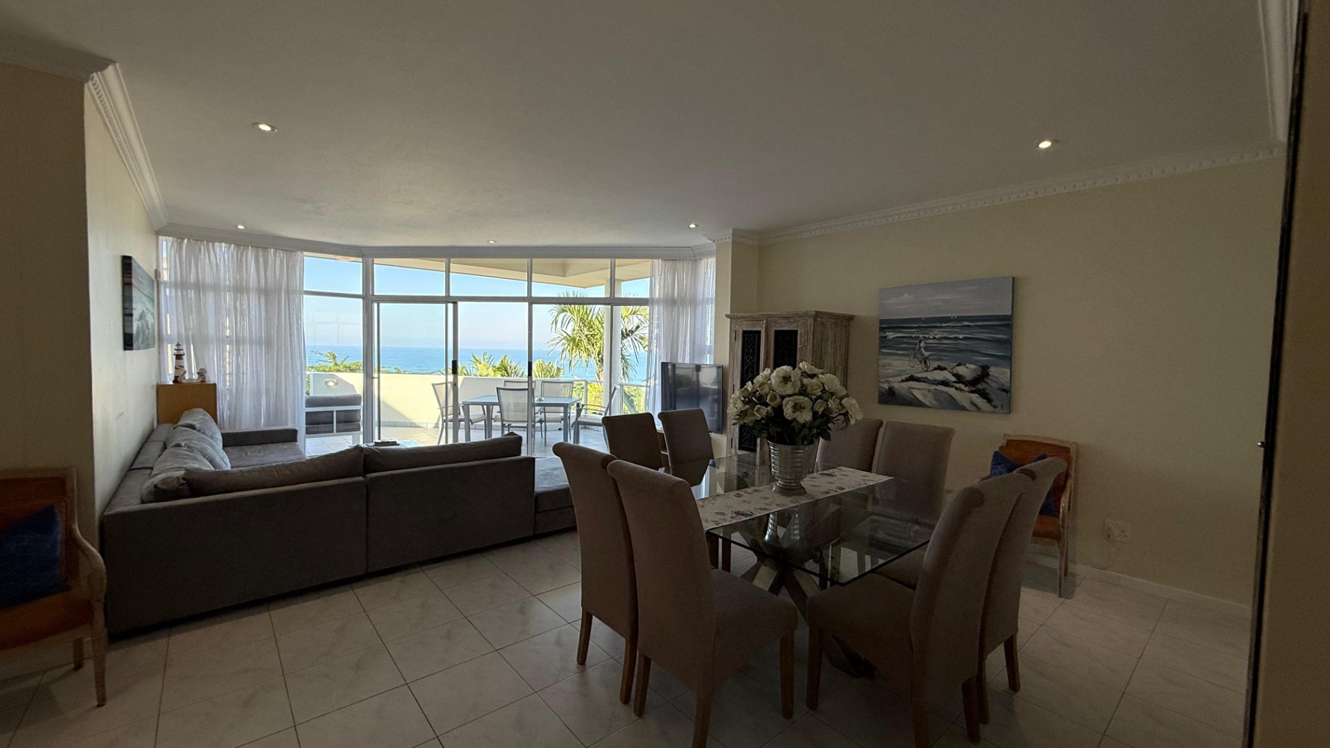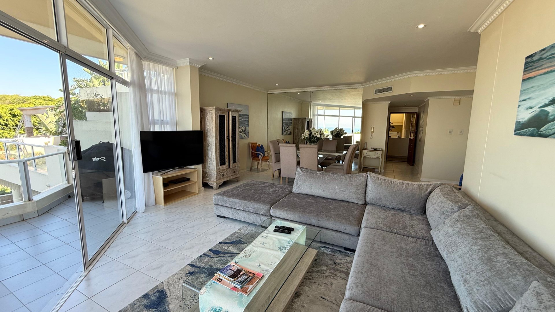 An exclusive complex located on a quiet road with views that stretch from Durban to Umhlanga, fully furnished bar bedding and linen. Three spacious bedrooms and two full bathrooms, the main being en suite. The kitchen is well equipped and ready for any culinary challenge. Large windows allow abundant natural light to flow through the open plan lounge and dining room. An expansive covered patio is ideal for relaxing and unwinding while taking in the surrounding splendour. The apartment is fully air conditioned.