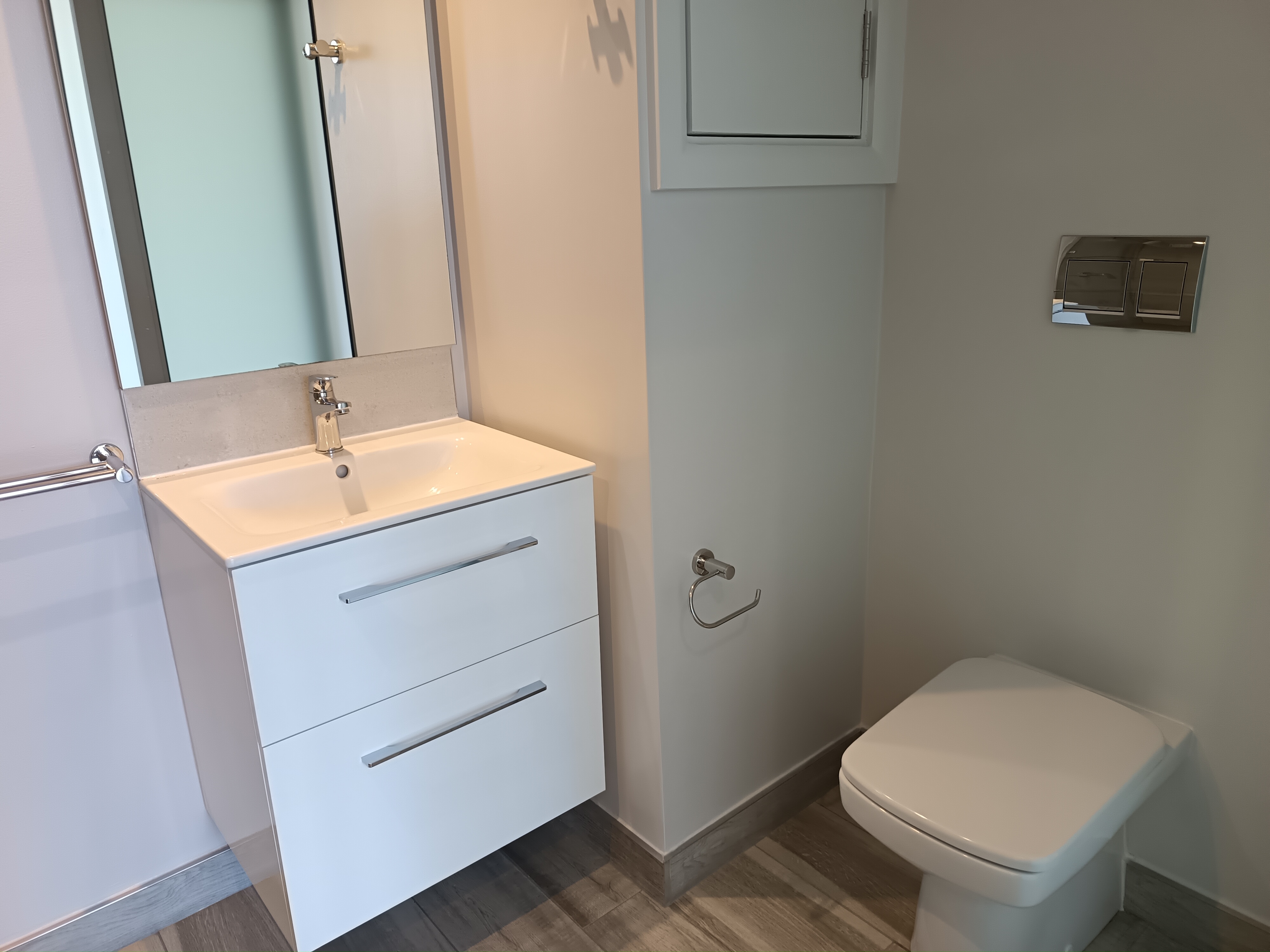 Step inside this apartment to discover a modern interior featuring sleek finishes and ample natural light. The open-plan living and dining area provide a spacious layout for entertaining or relaxing, while the fully-equipped kitchen is ideal for preparing meals. Both bedrooms have built-in wardrobes providing plenty of storage space.