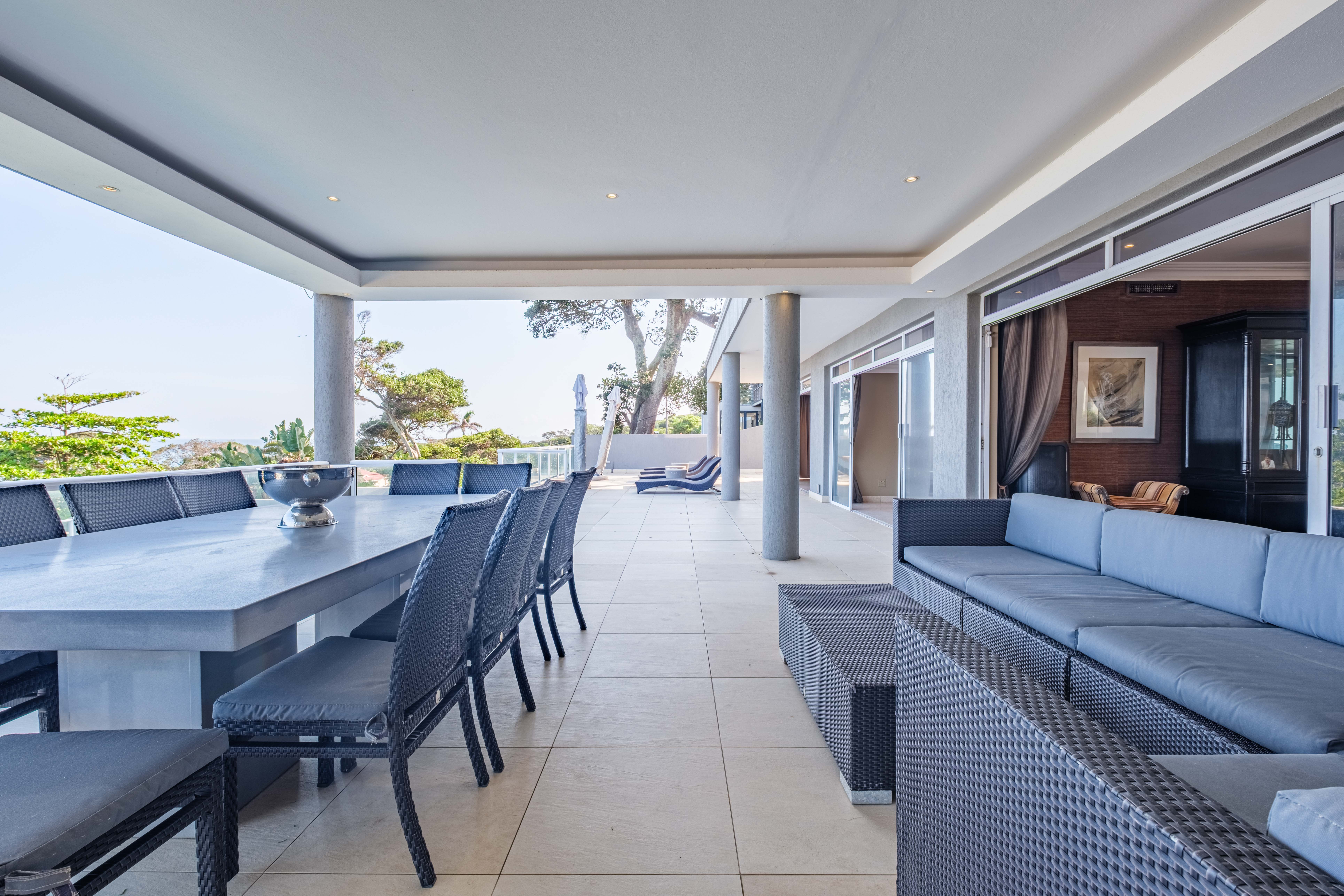 Three bedrooms open onto a top-floor terrace, complete with a jacuzzi and breathtaking coastal views of Umhlanga and cool sea breeze