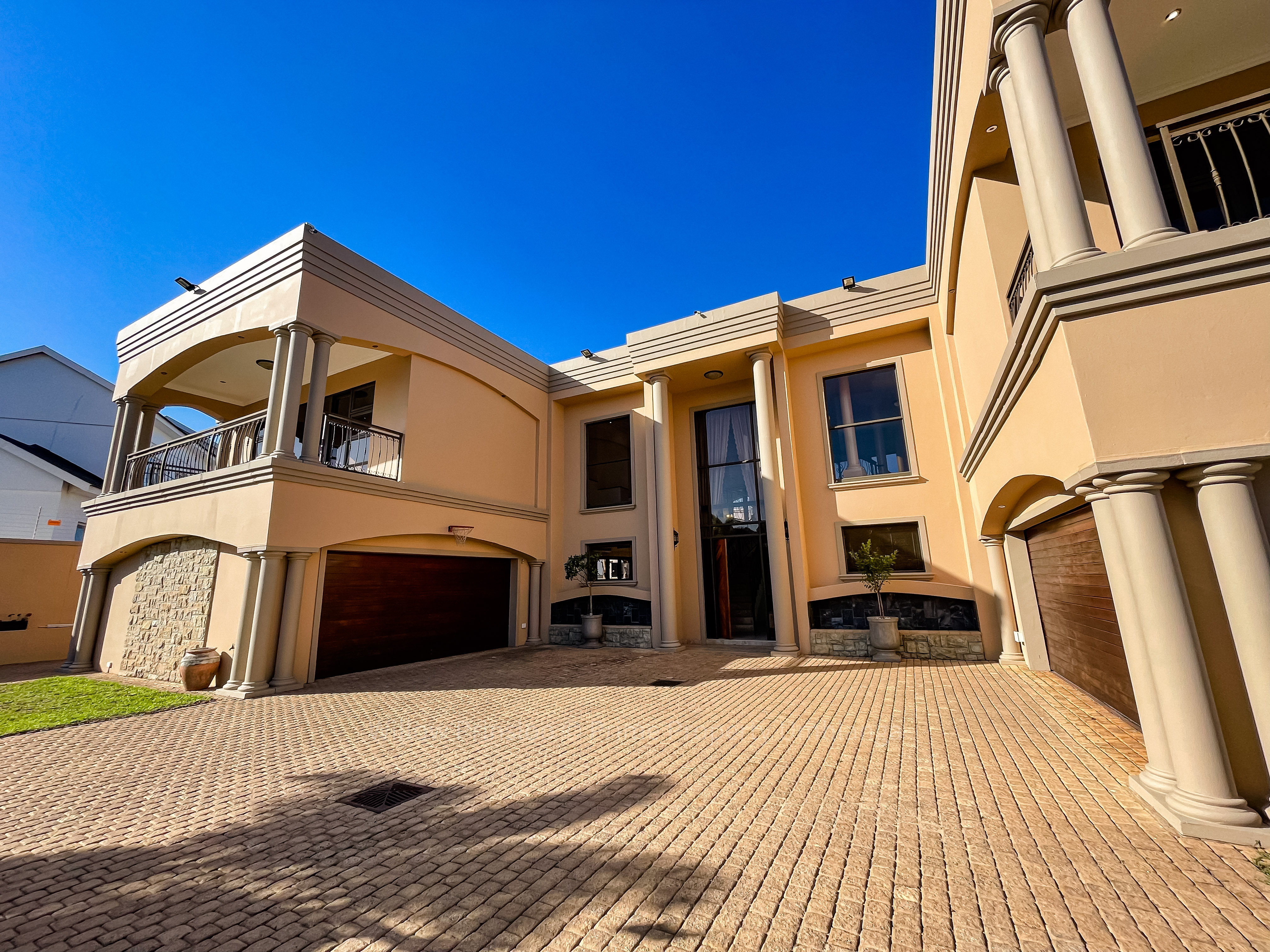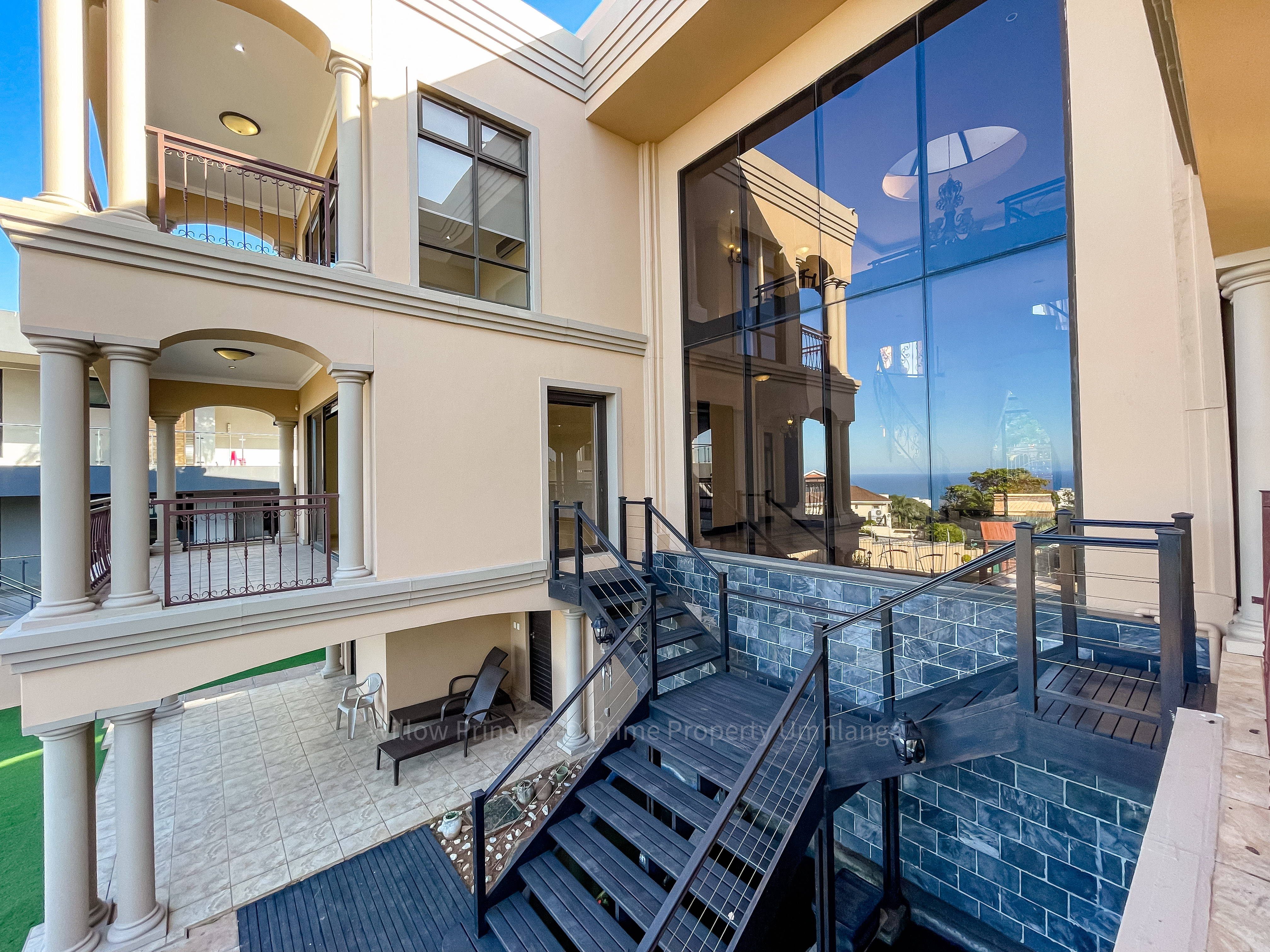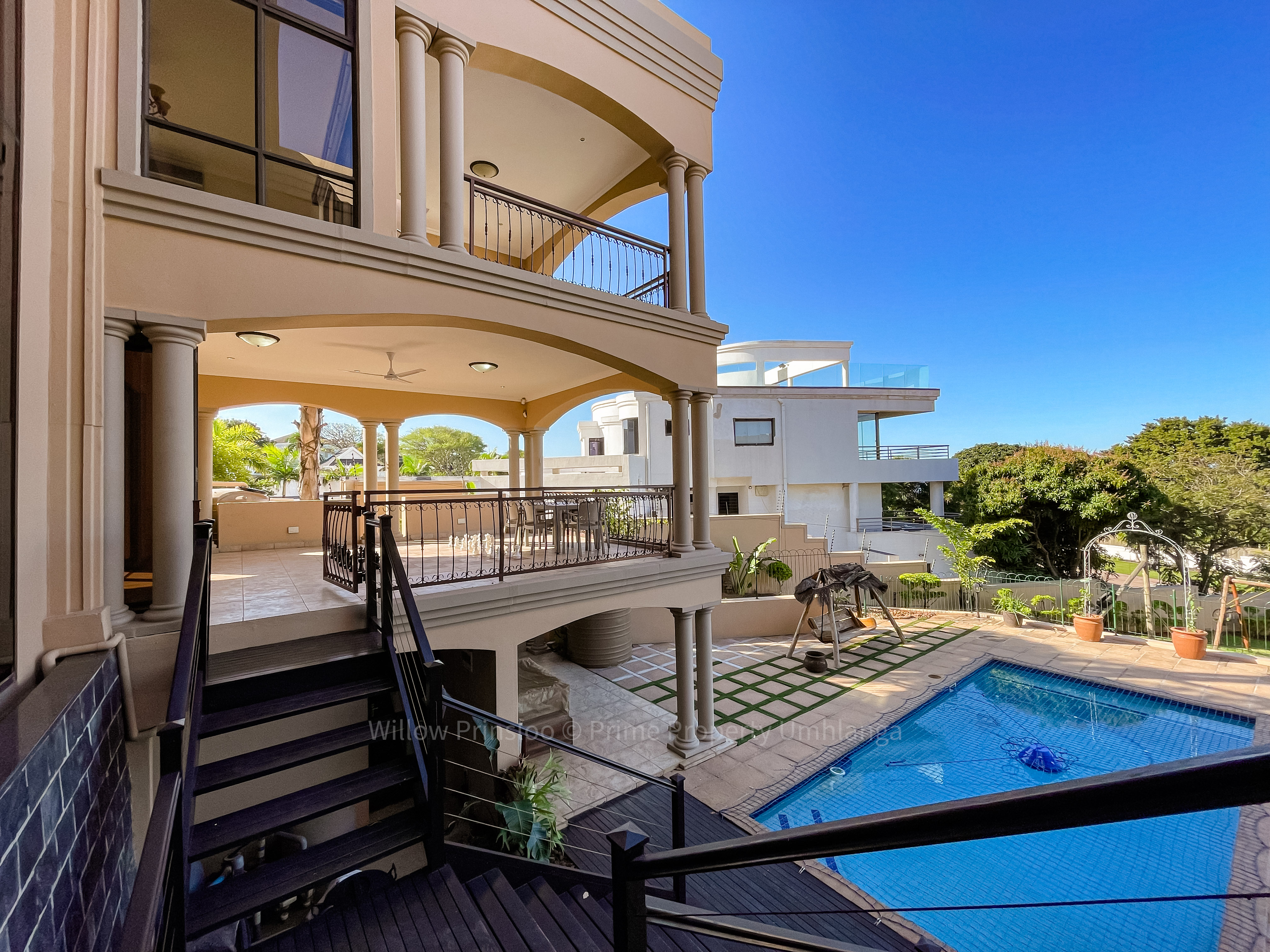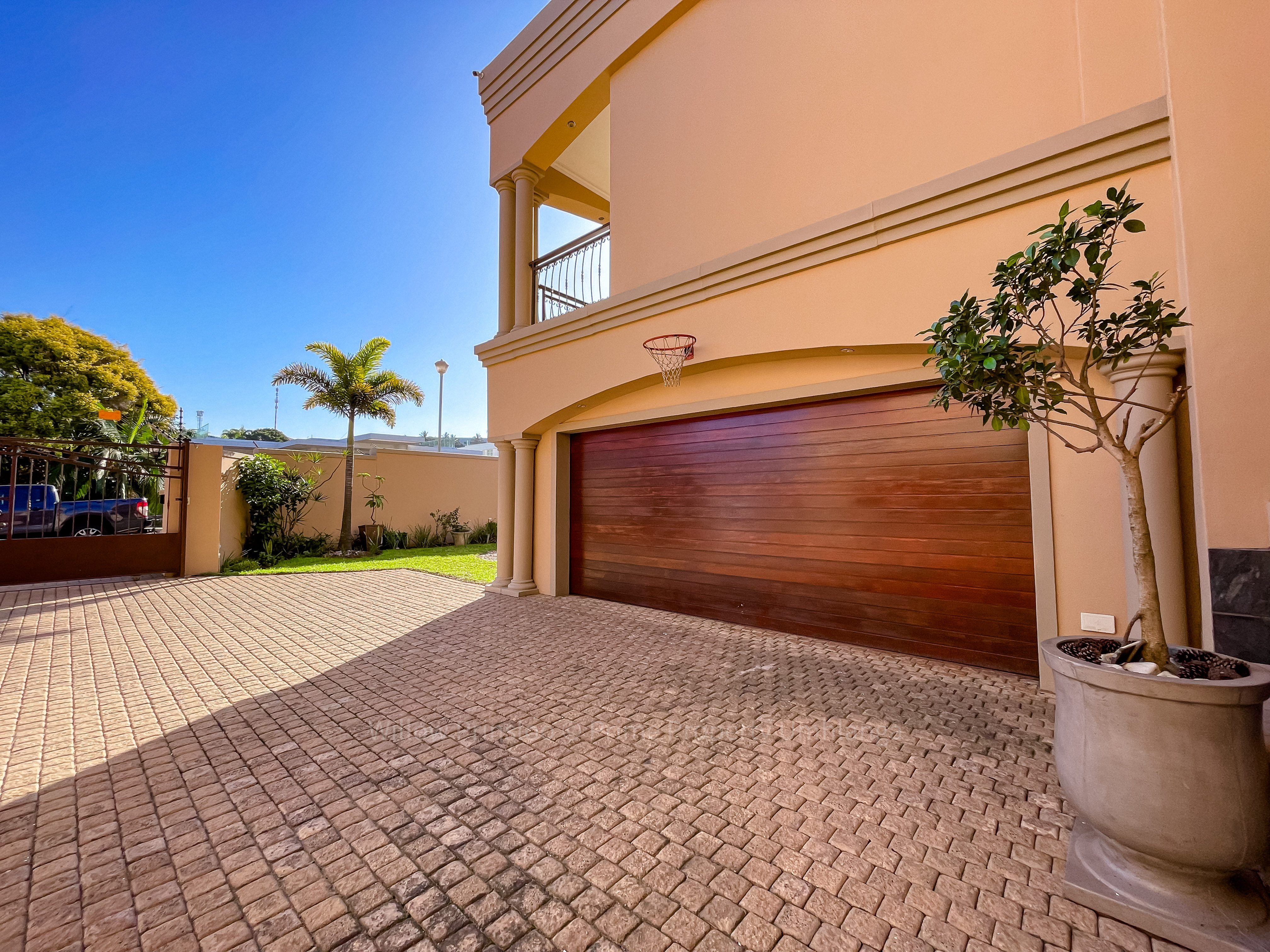 Step into a world of unrivaled luxury with this breathtaking 5-bedroom mansion in the prestigious Umhlanga Ridge. With its grand entrance, towering pillars, and intricate iron railings, this home is an architectural masterpiece that exudes elegance and opulence.