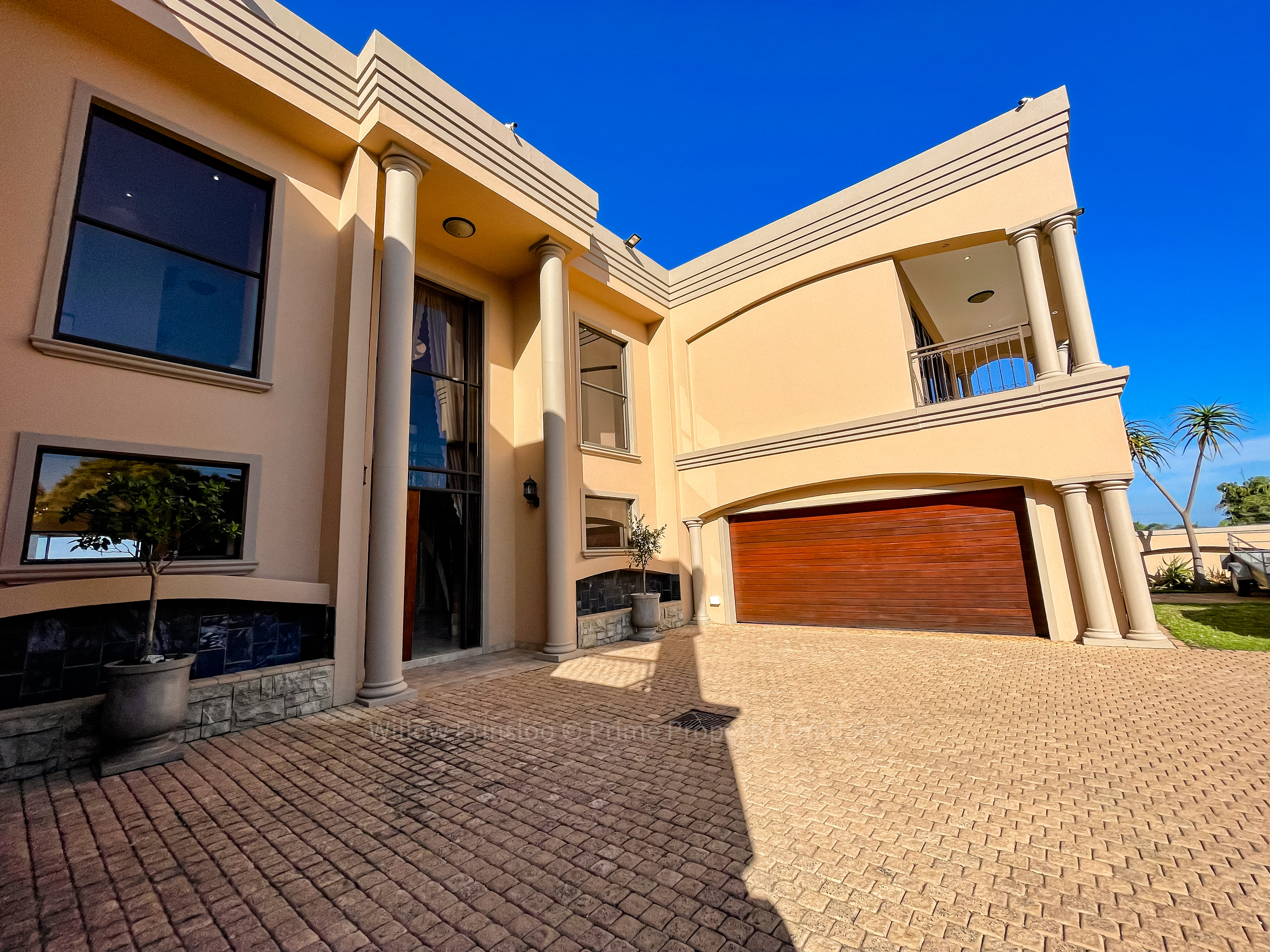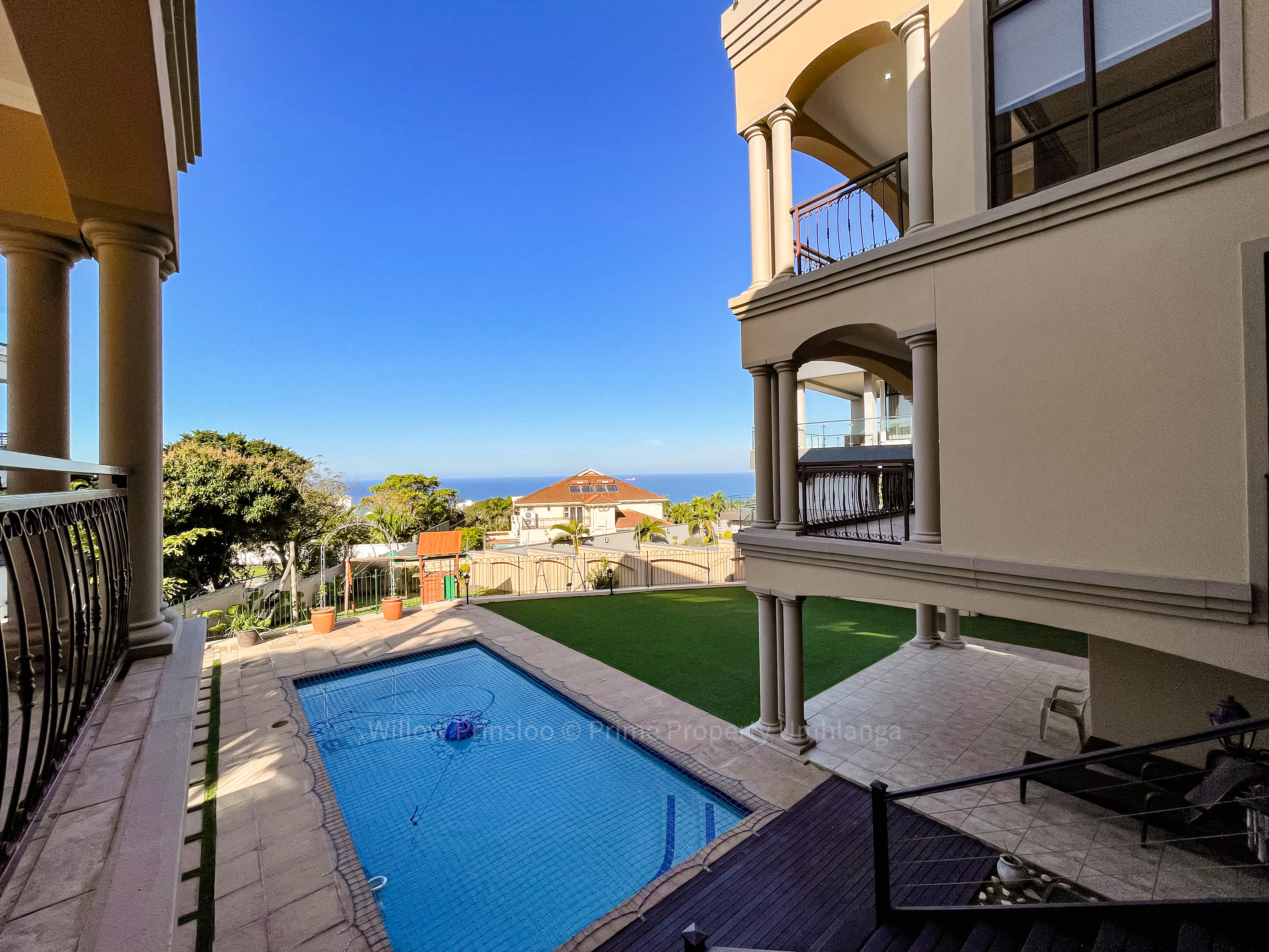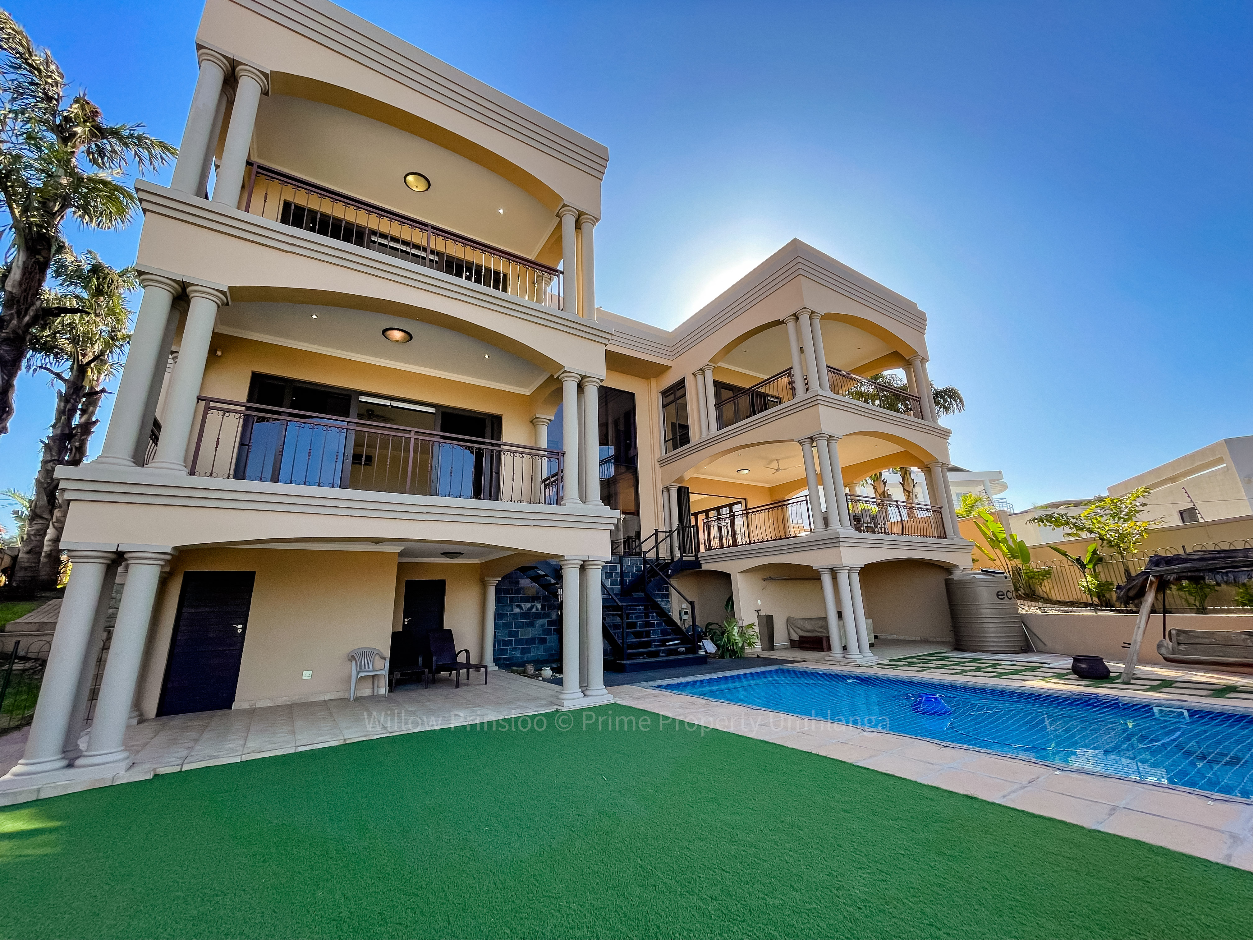 Step into a world of unrivaled luxury with this breathtaking 5-bedroom mansion in the prestigious Umhlanga Ridge. With its grand entrance, towering pillars, and intricate iron railings, this home is an architectural masterpiece that exudes elegance and opulence.