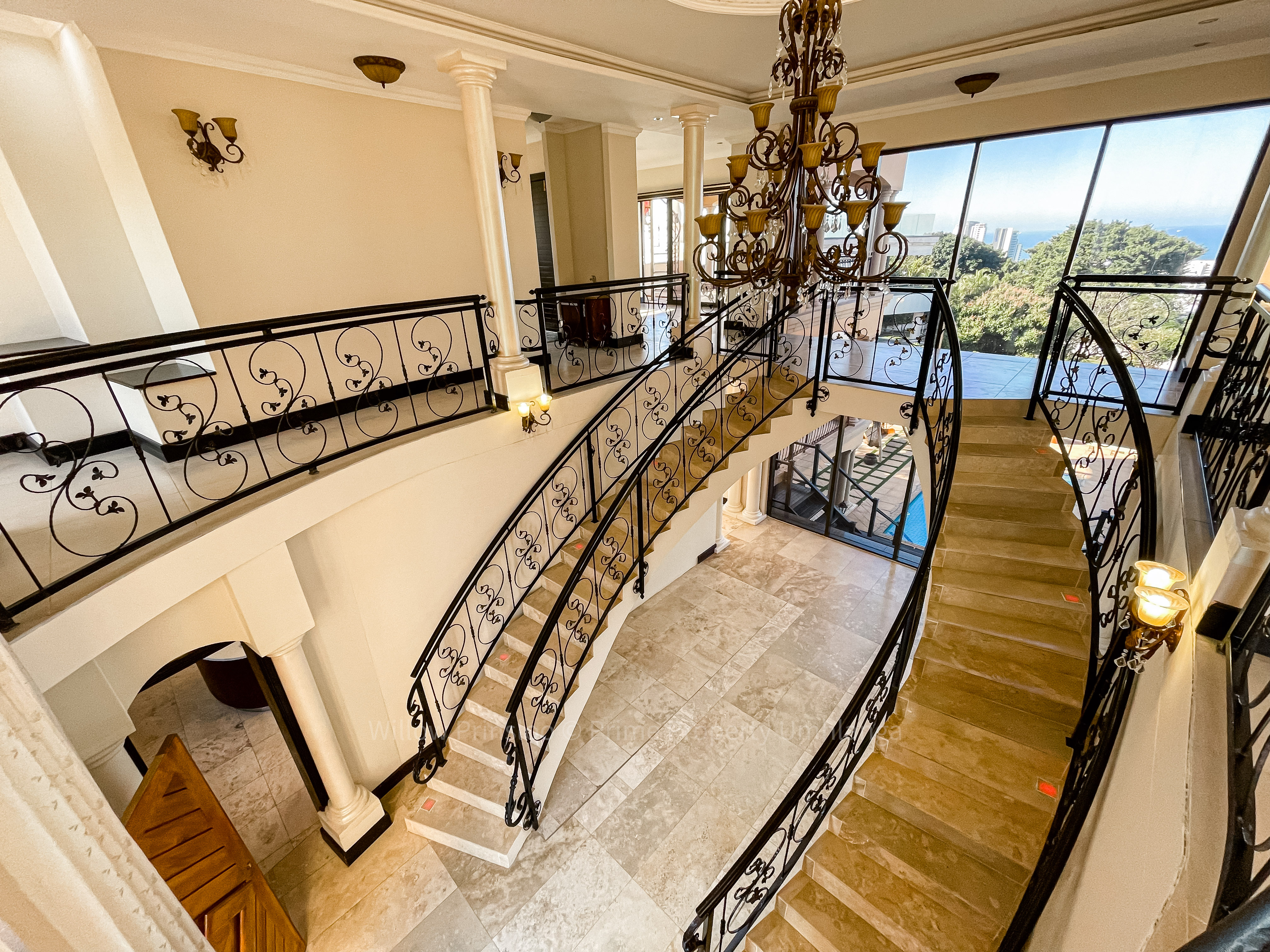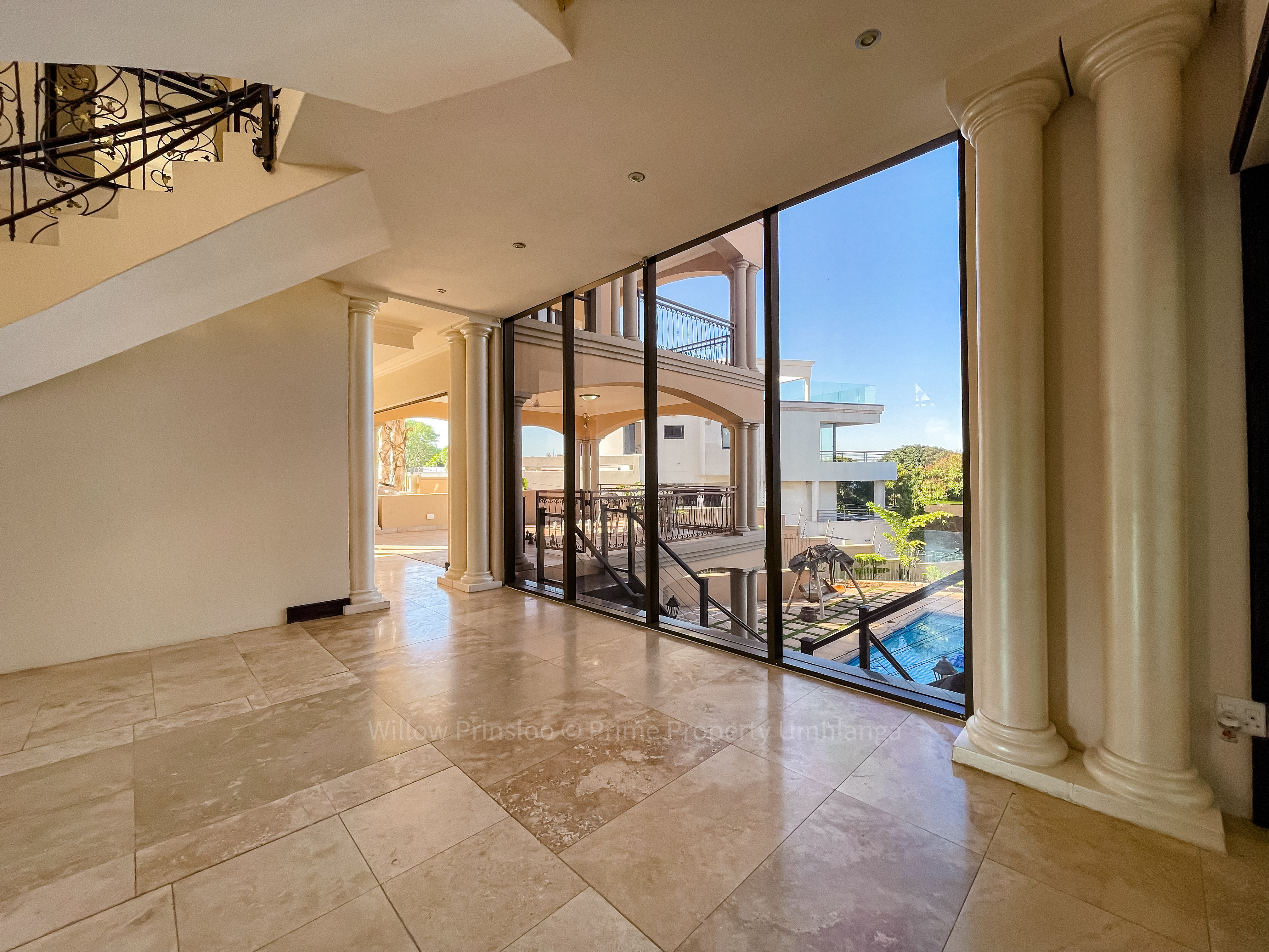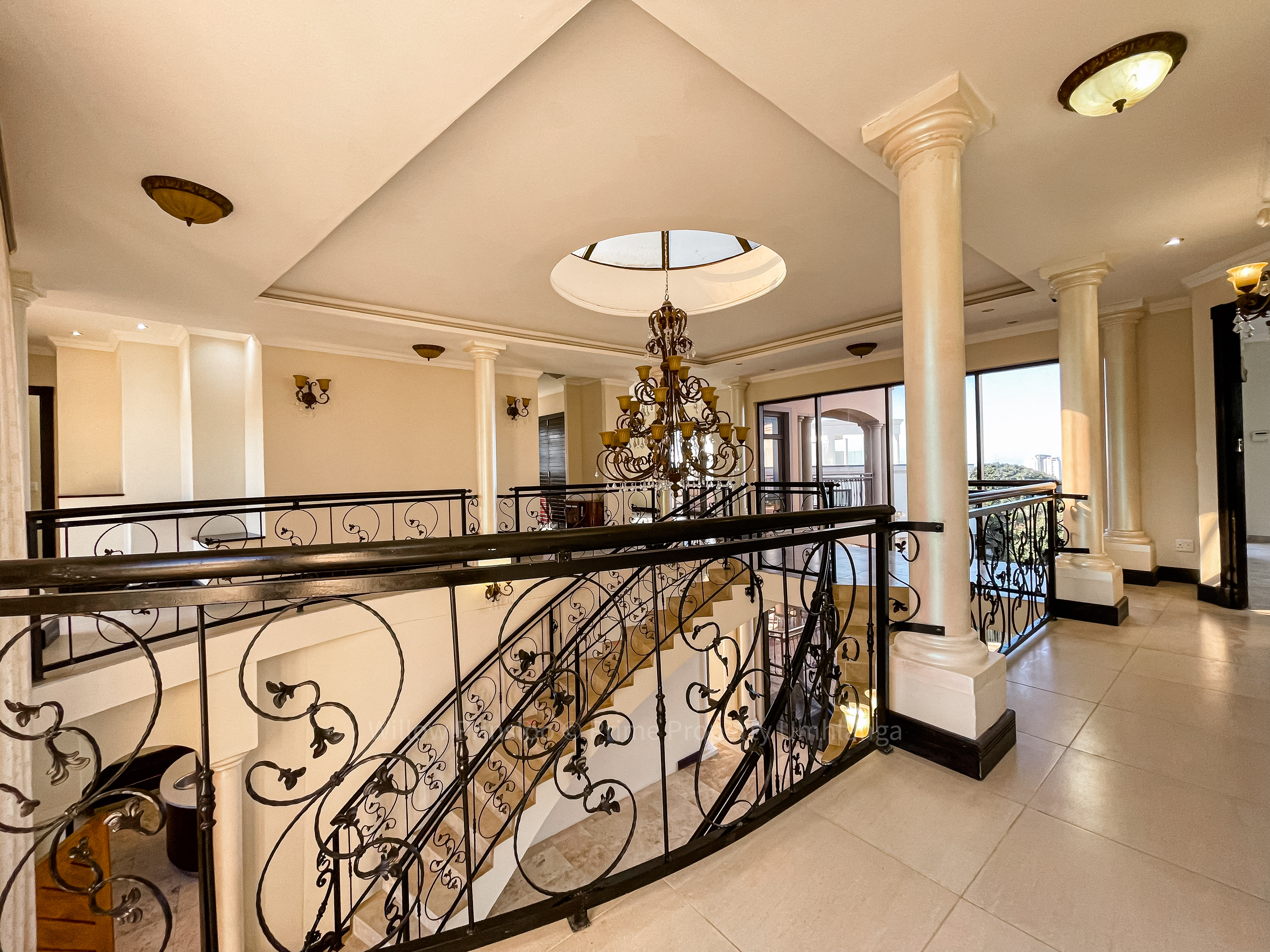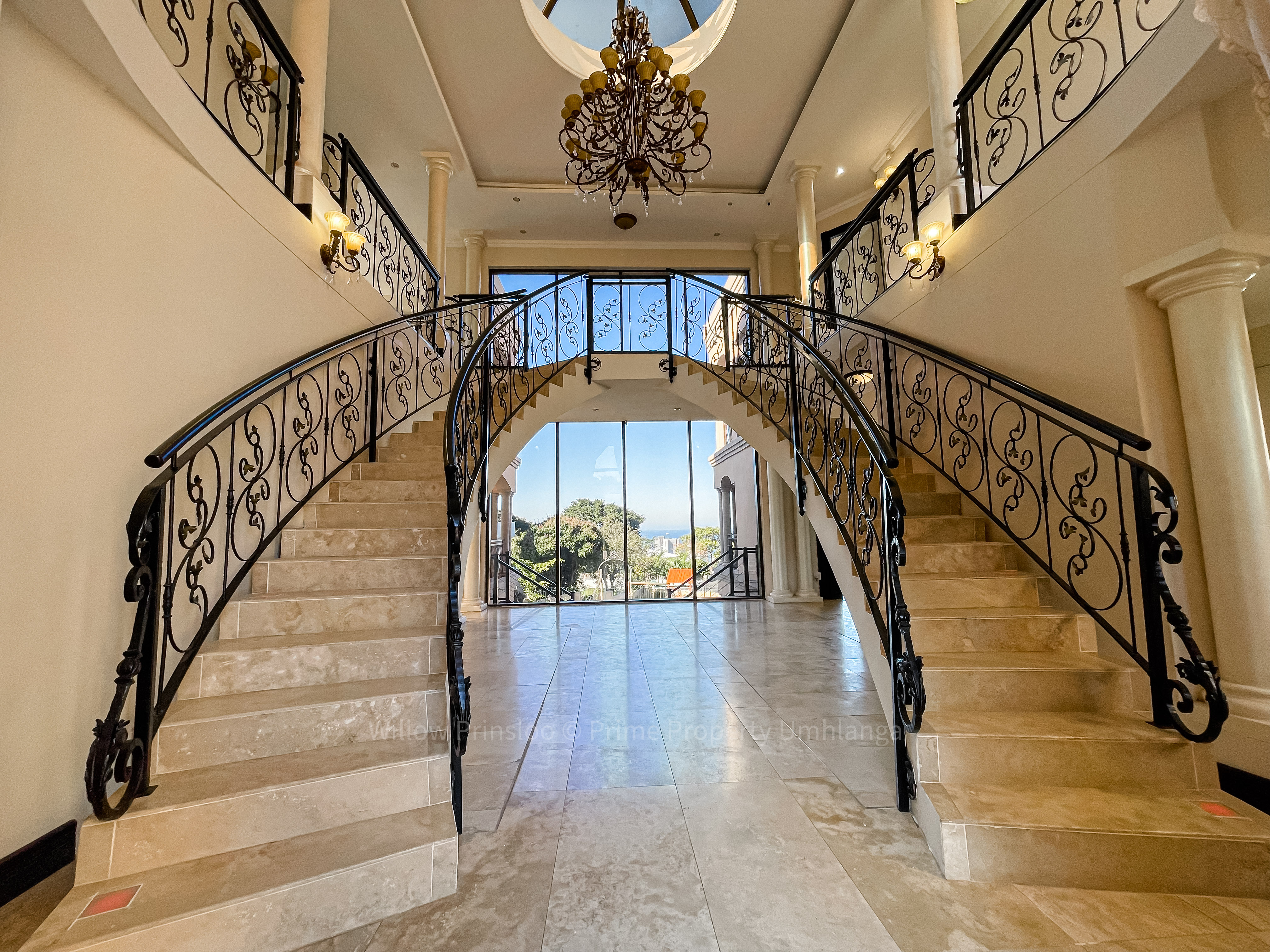 Step into a world of unrivaled luxury with this breathtaking 5-bedroom mansion in the prestigious Umhlanga Ridge. With its grand entrance, towering pillars, and intricate iron railings, this home is an architectural masterpiece that exudes elegance and opulence.