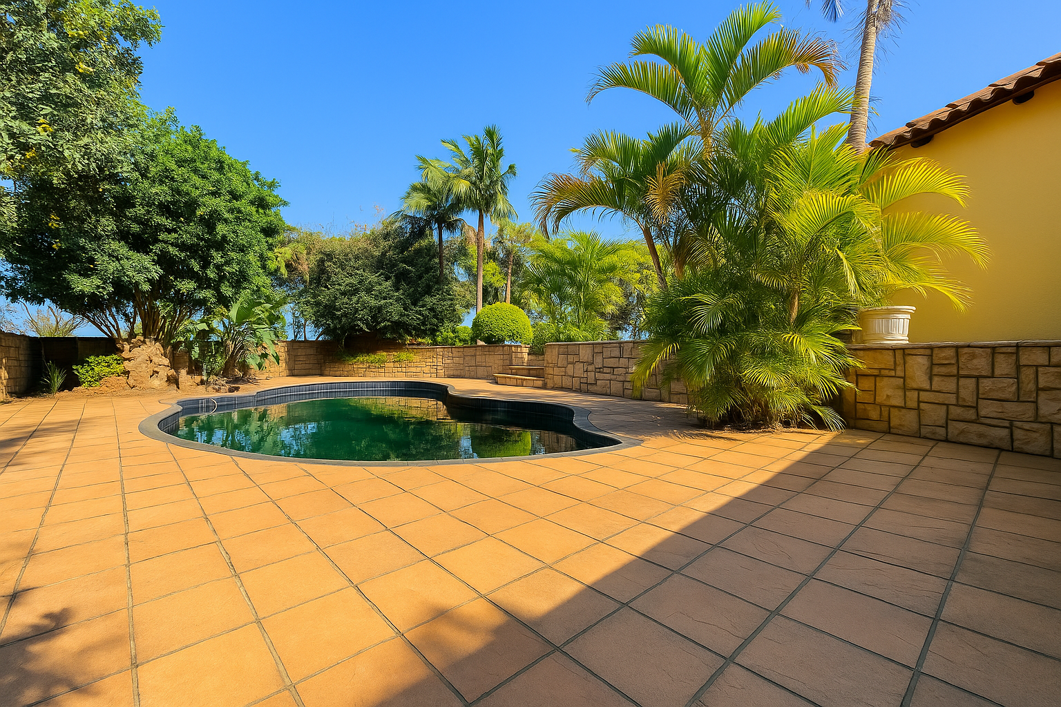 The tranquil pool area is a private oasis, framed by lush greenery and designed for relaxation and entertainment alike. Generously sized bedrooms, including a luxurious master suite, provide the ultimate retreat with garden or balcony views.