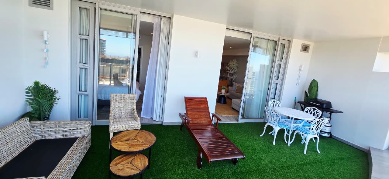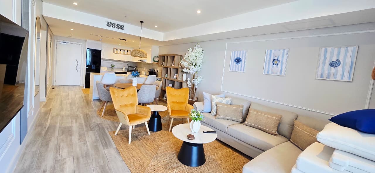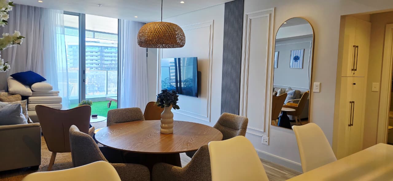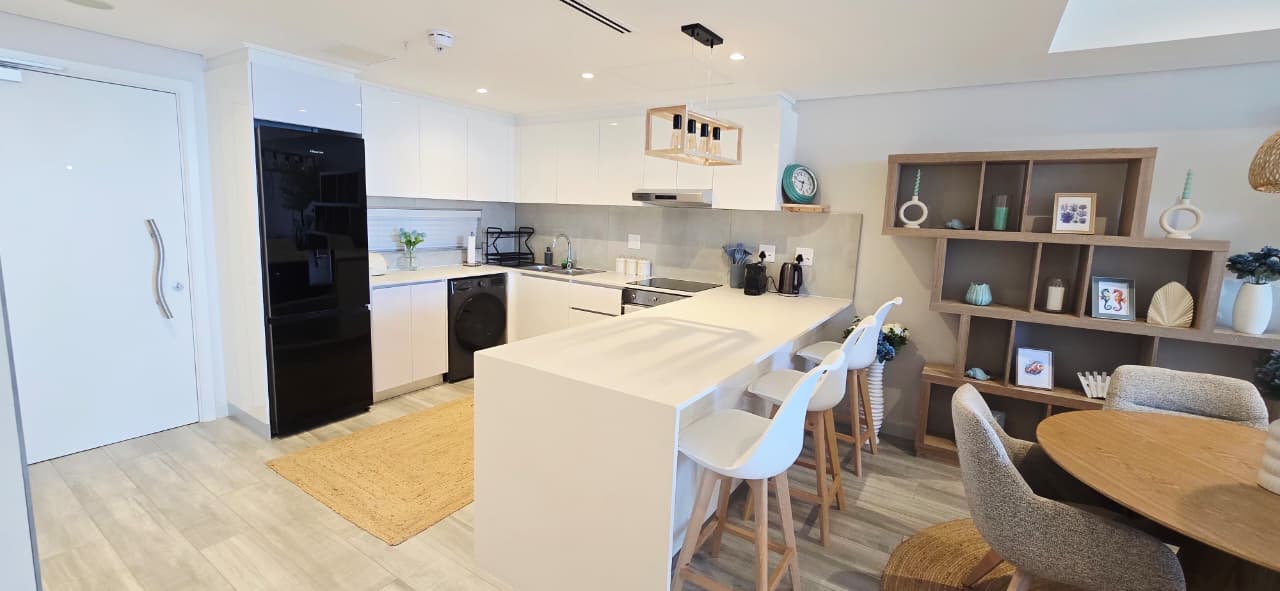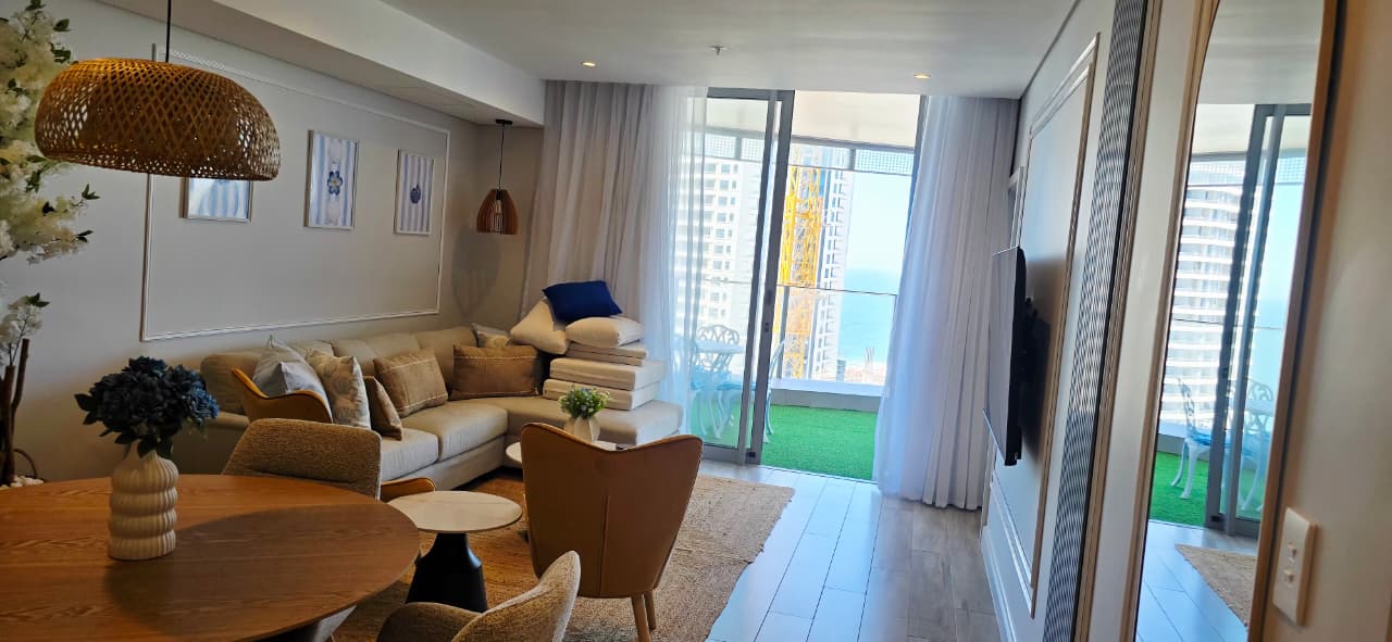 Experience elevated coastal living in this exquisite, fully furnished two-bedroom penthouse, located in a brand-new beachfront development with uninterrupted sea views. The apartment features a spacious open-plan living and dining area, a sleek modern kitchen, and two stylish en-suite bedrooms. Step out onto your private balcony to soak in the ocean views, while enjoying the convenience of direct access to the mall below, secure living, and a truly unmatched beachfront lifestyle just moments from the sand.