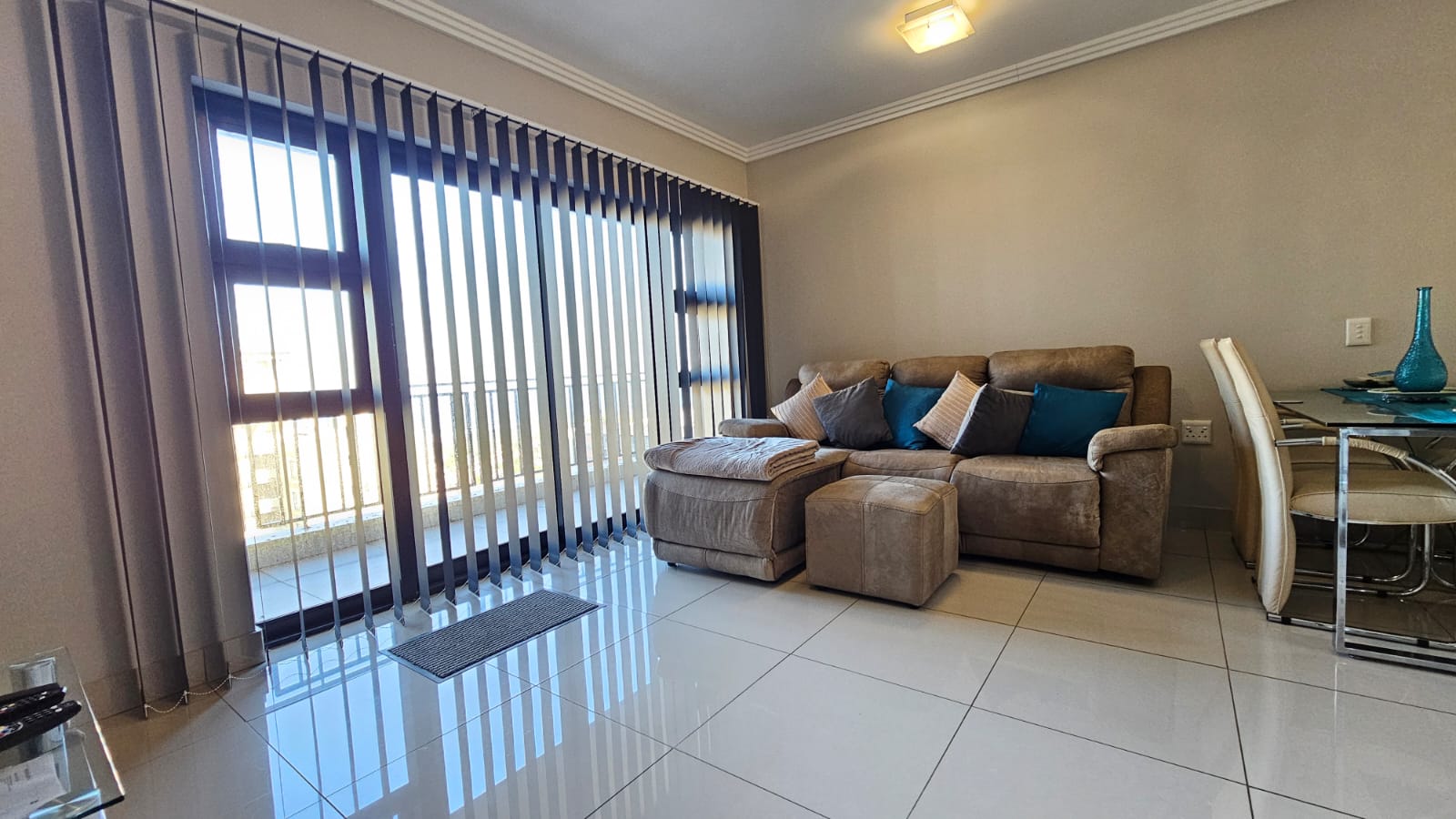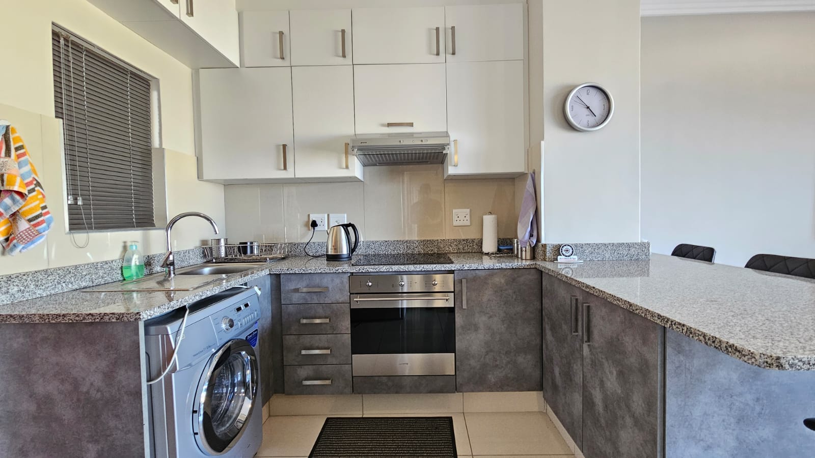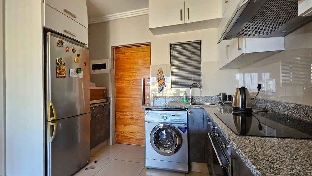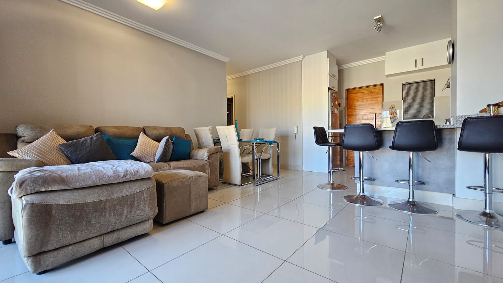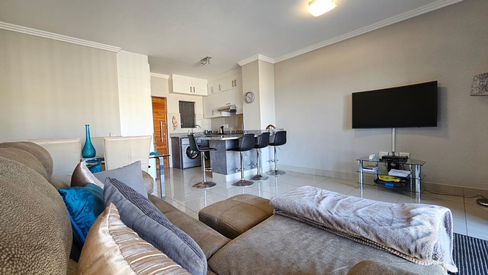The spacious living area flows seamlessly into a state-of-the-art kitchen