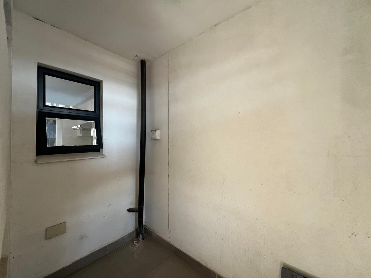 The home features a fully tiled, open-plan kitchen, dining, and lounge area with sleek granite countertops, high-quality black aluminium finishes, and modern fittings throughout. The lounge opens onto a private balcony with beautiful sea views — ideal for relaxing or entertaining.