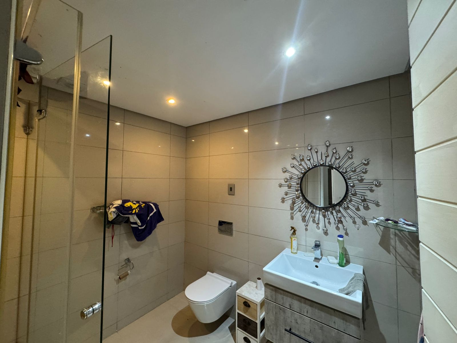 The apartment comprises three well sized bedrooms, all fitted with built in cupboards. The main bedroom features a private en-suite bathroom and ample cupboard space, providing a comfortable and private retreat.