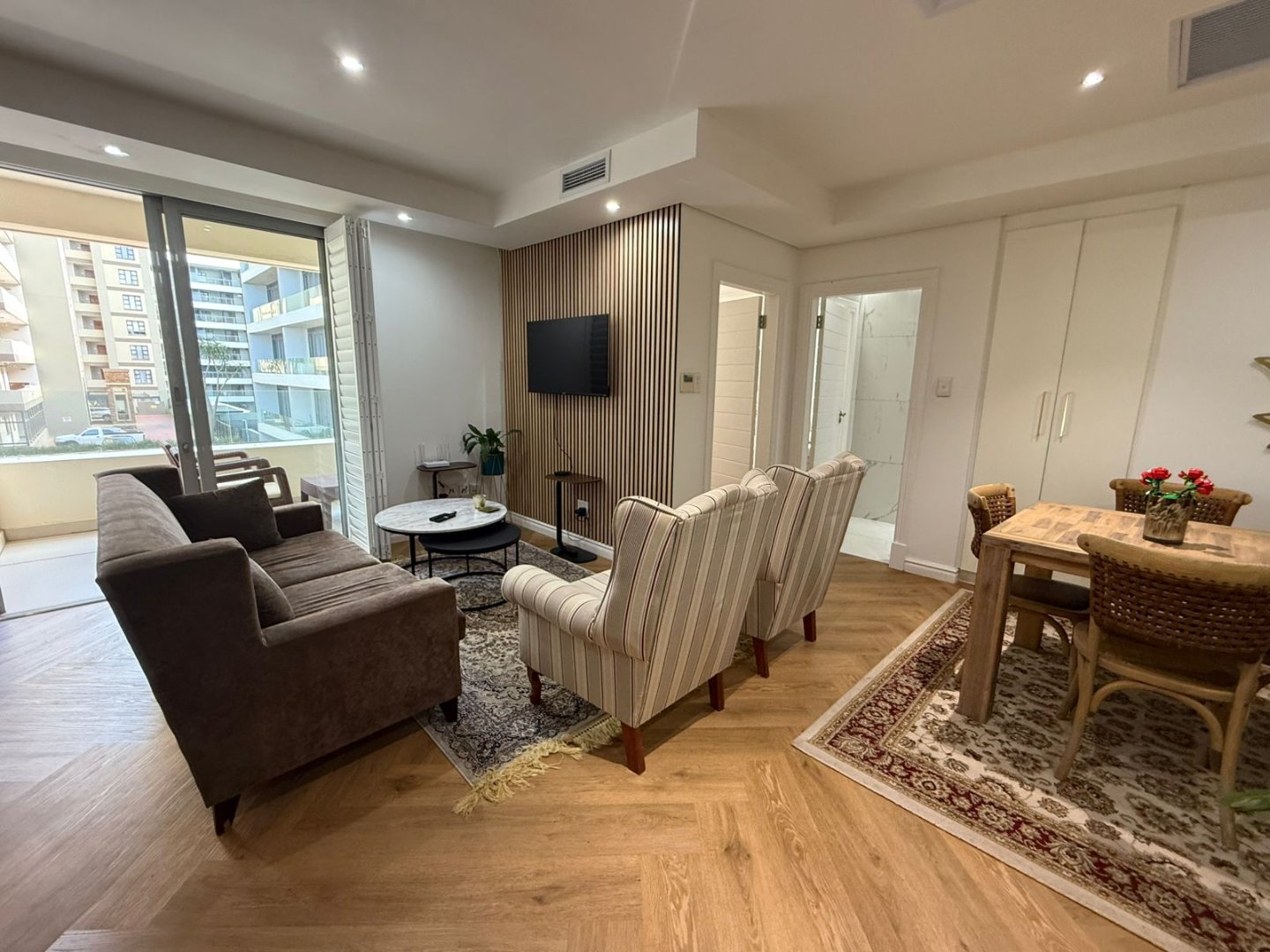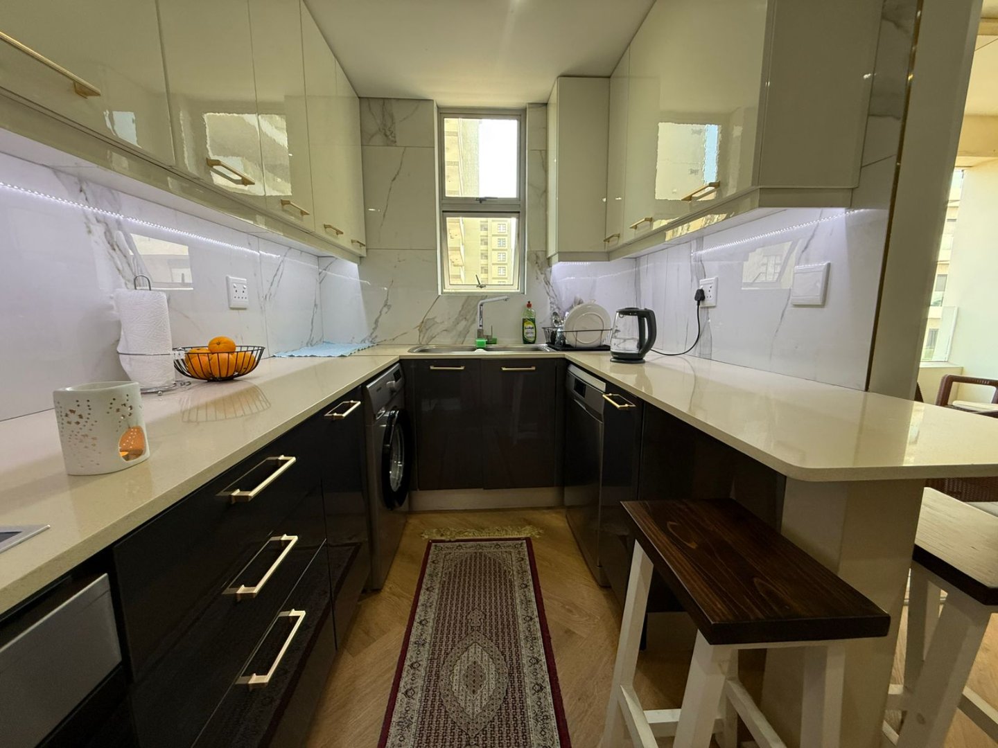 The allotted parking for the apartment is at the door with visitors parking available. A beautiful communal pool and sundeck is available for the residents pleasure. Close to business hubs, shopping malls and social venues with easy access to all major routes.