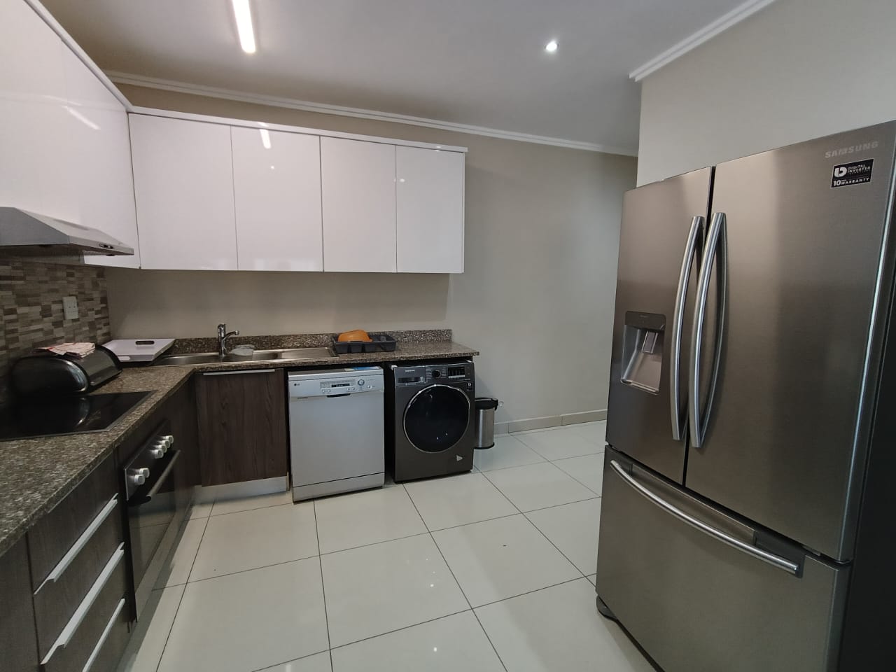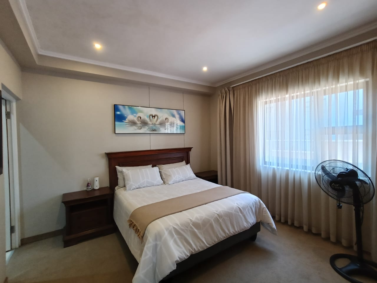 Tastefully furnished 3 bedroom apartment in an upmarket complex in Umhlanga Ridge. An open plan kitchen and living area opens via sliding doors to a spacious corner balcony. The kitchen is well equipped and comes with a double door fridge. The 3 bedrooms are all en suite and are generous in size with ample built in cupboards. All bathrooms consist of a shower, toilet and basin.