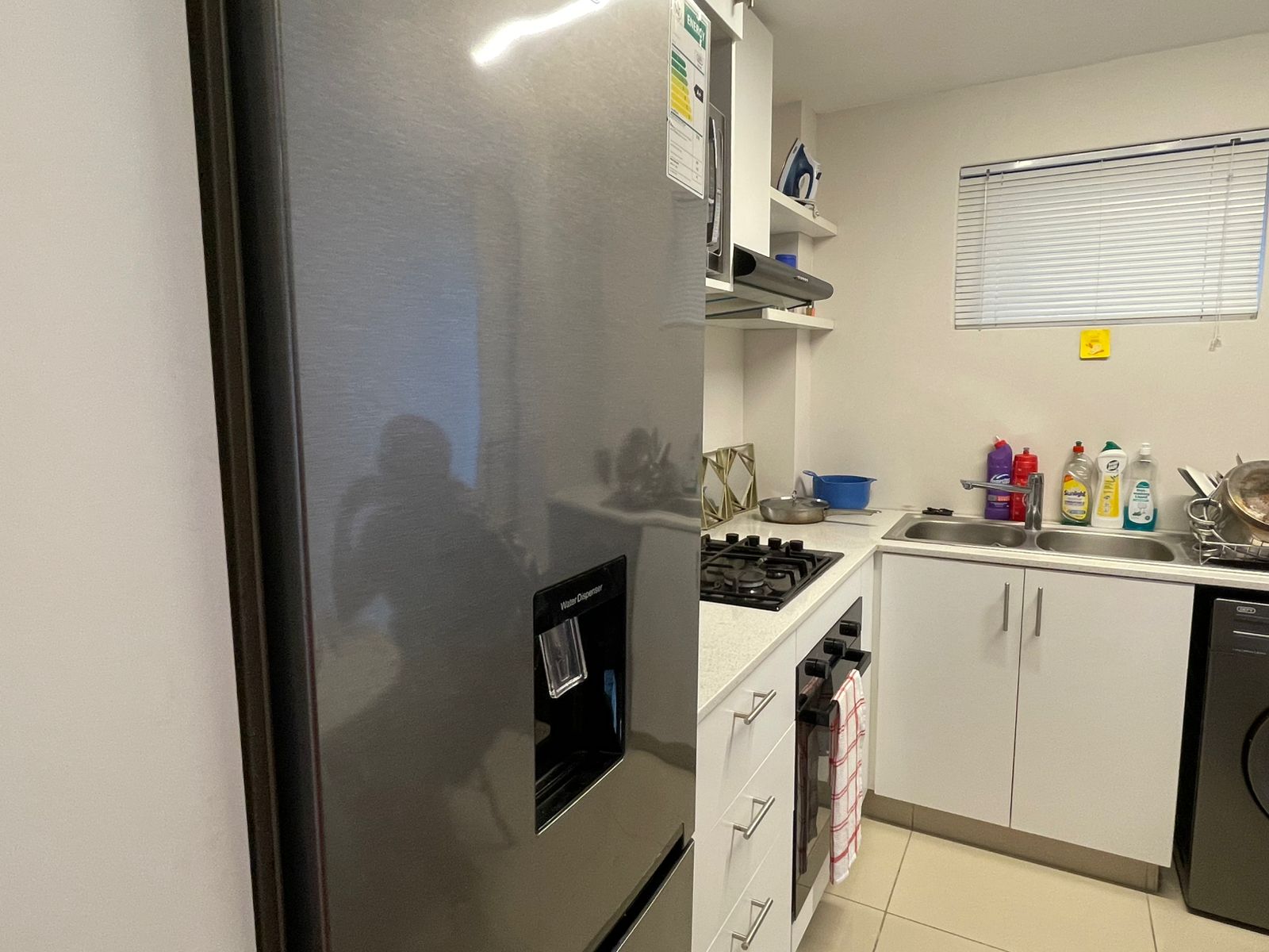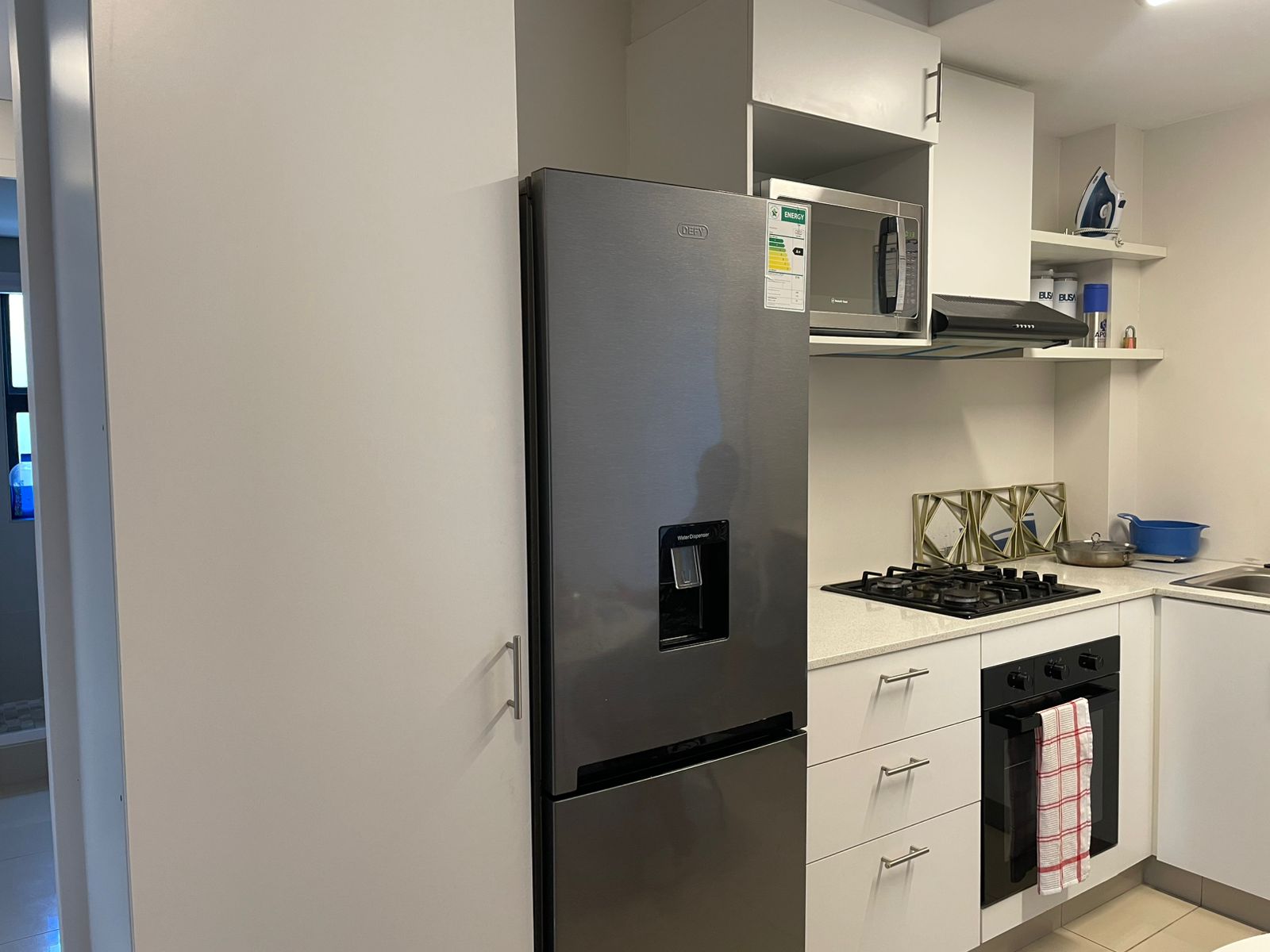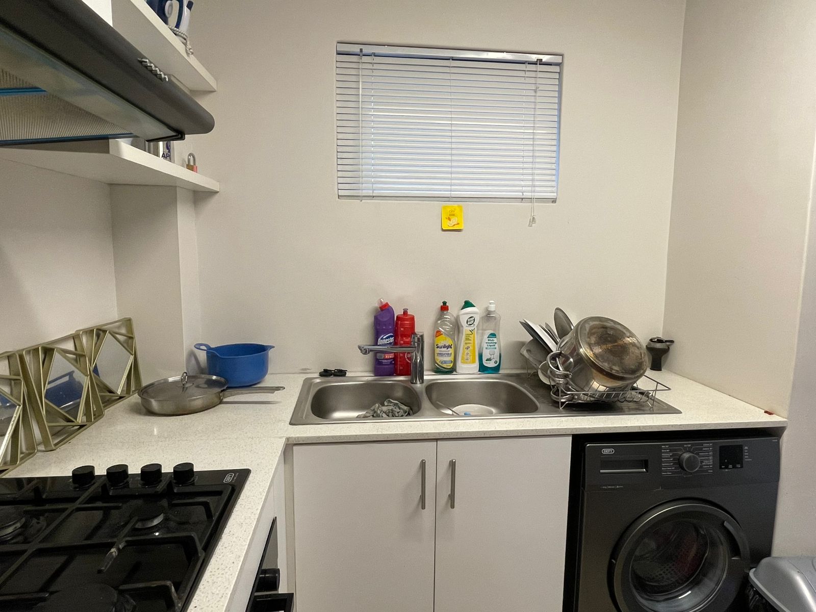 The apartment features an open-plan living and dining area that flows seamlessly into a neat kitchen, creating a bright and functional living space. Both bedrooms are well-sized with built-in cupboards, while the bathroom is modern and well finished.