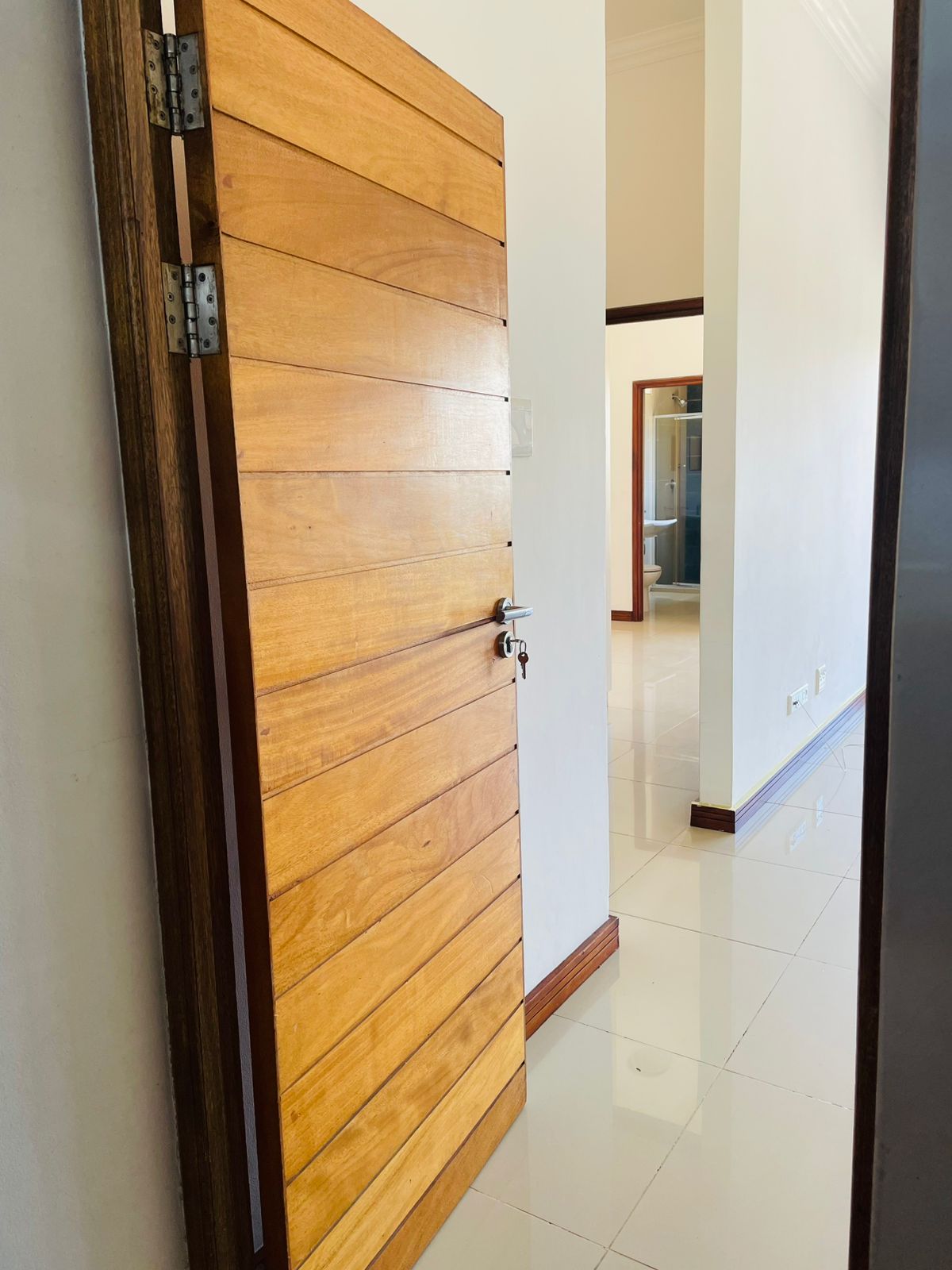 This lovely apartment offers an open-plan kitchen and living area with plenty of natural light. Both bedrooms are spacious with built-in cupboards, and the main bedroom includes an en-suite bathroom. The second bathroom is conveniently located for guests or family members.