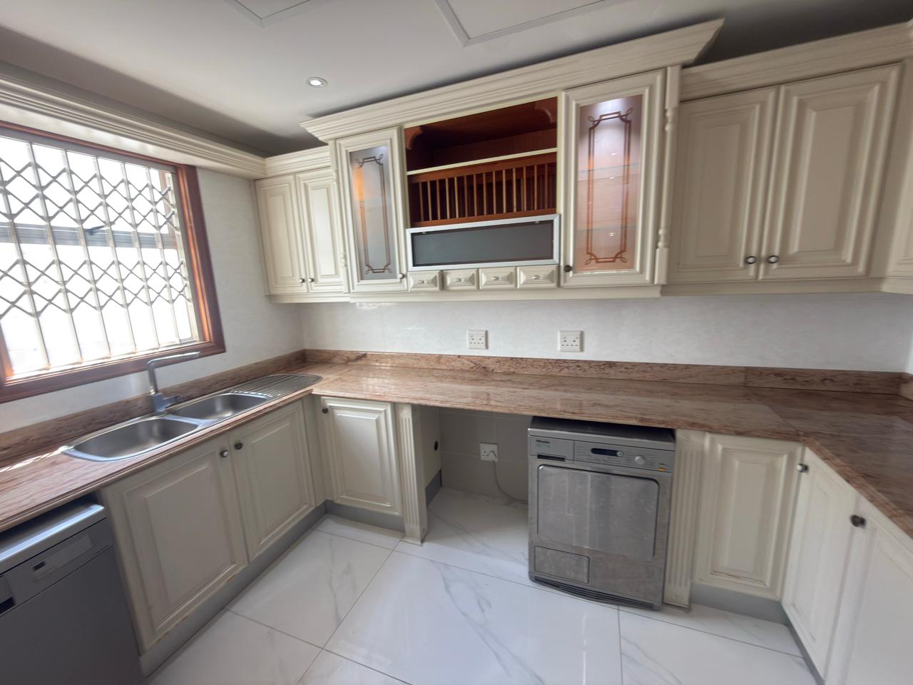 Kitchen: Modern fitted kitchen with space for appliances such as a dishwasher and washing machine.