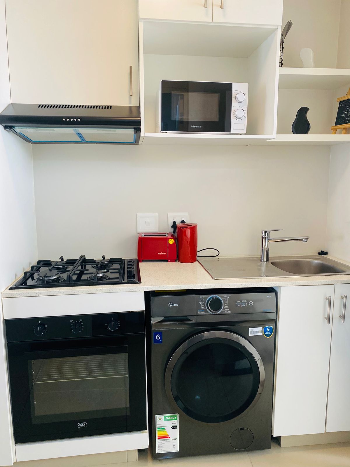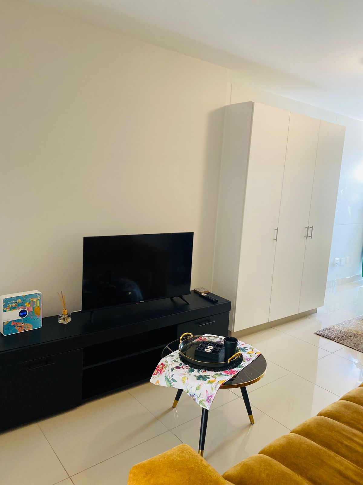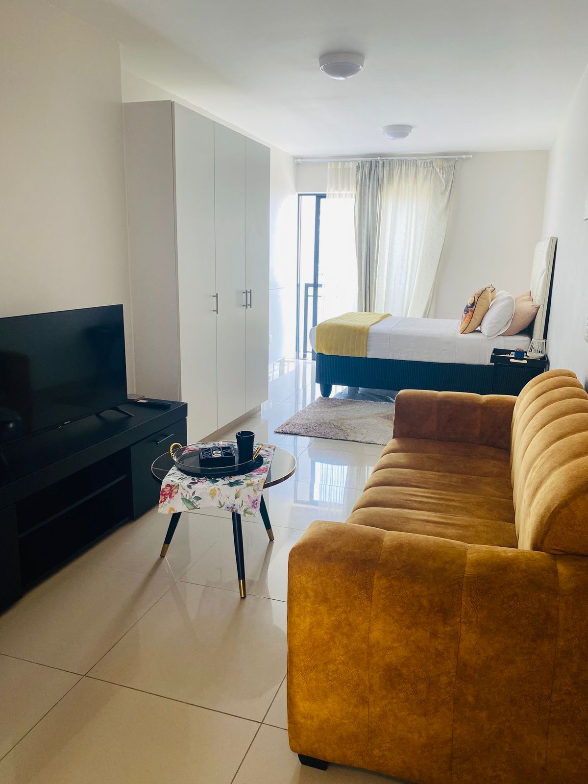 A modern studio apartment offering an open-plan living space that combines the bedroom, living area, and kitchenette into one stylish and functional layout. Perfect for singles or young professionals, the apartment features built-in cupboards, a private bathroom, and large windows that bring in plenty of natural light.