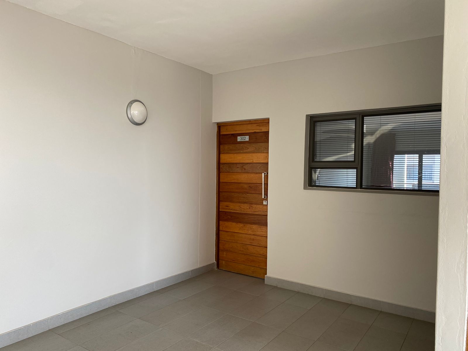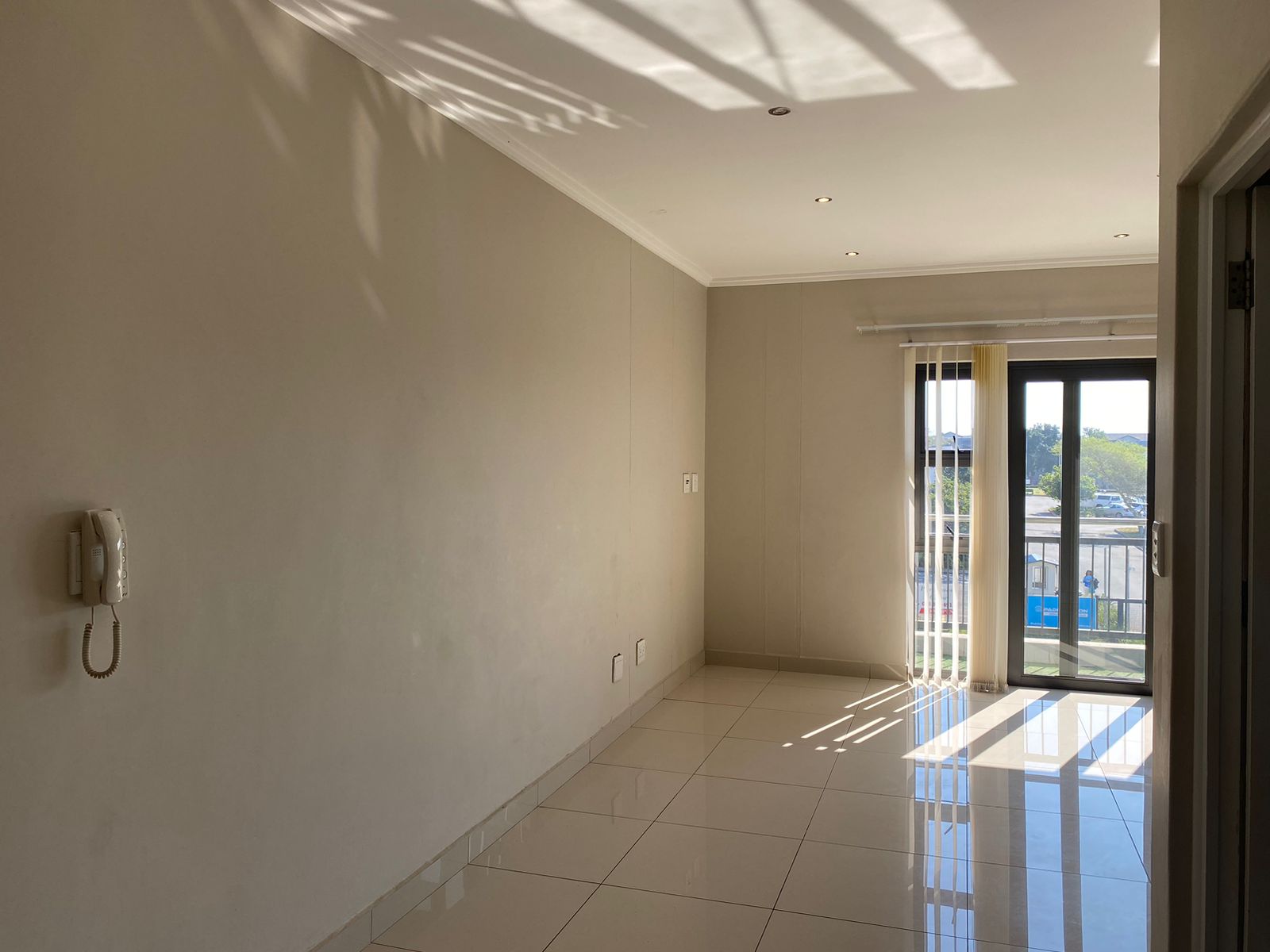 -Open plan living room with balcony and tiled floors