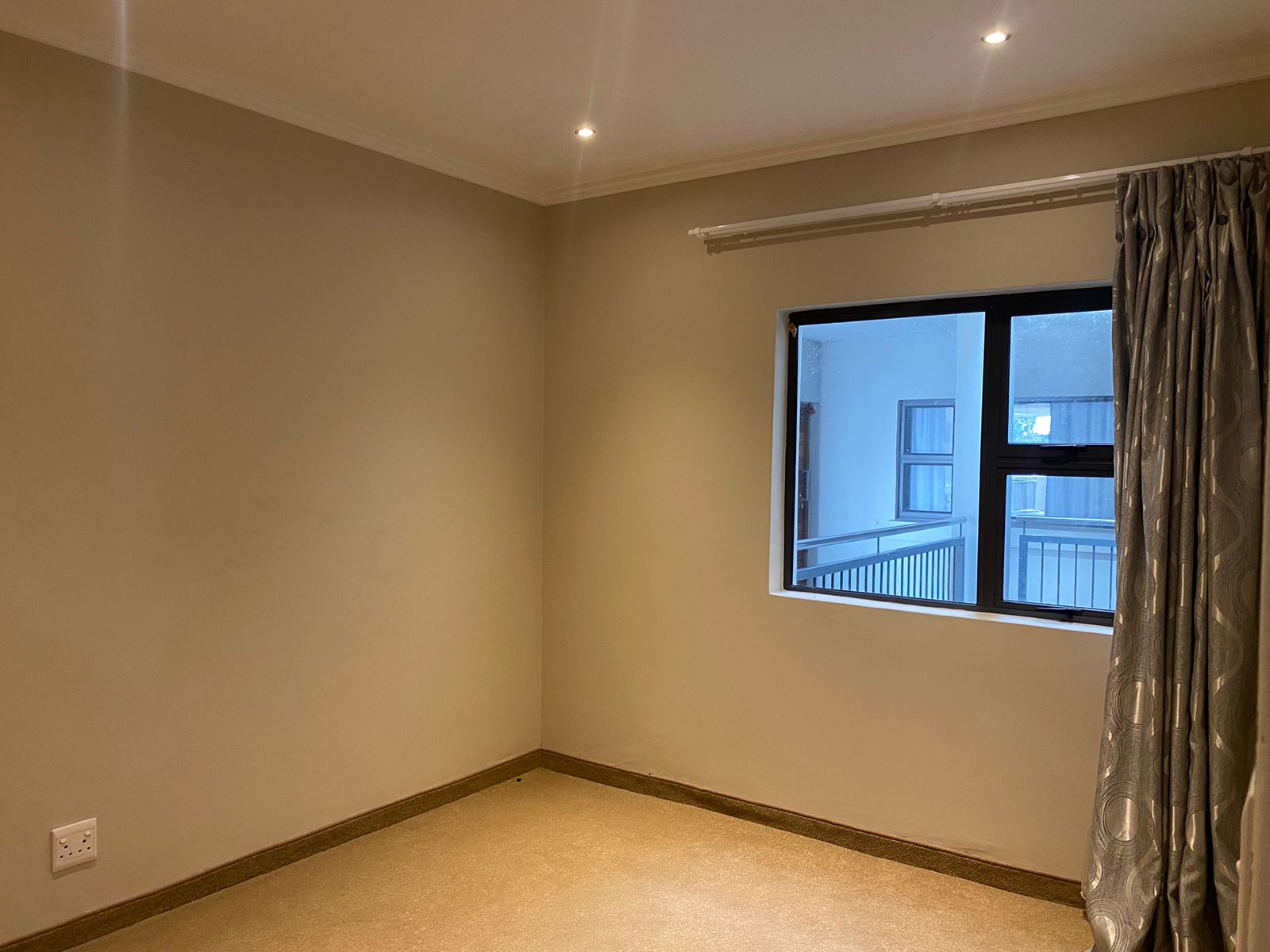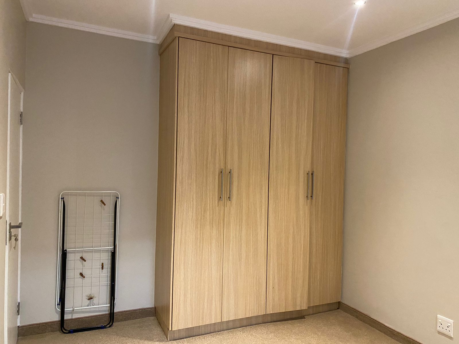 -Bedroom 2 with blinds, built-in cupboards and tiled floors