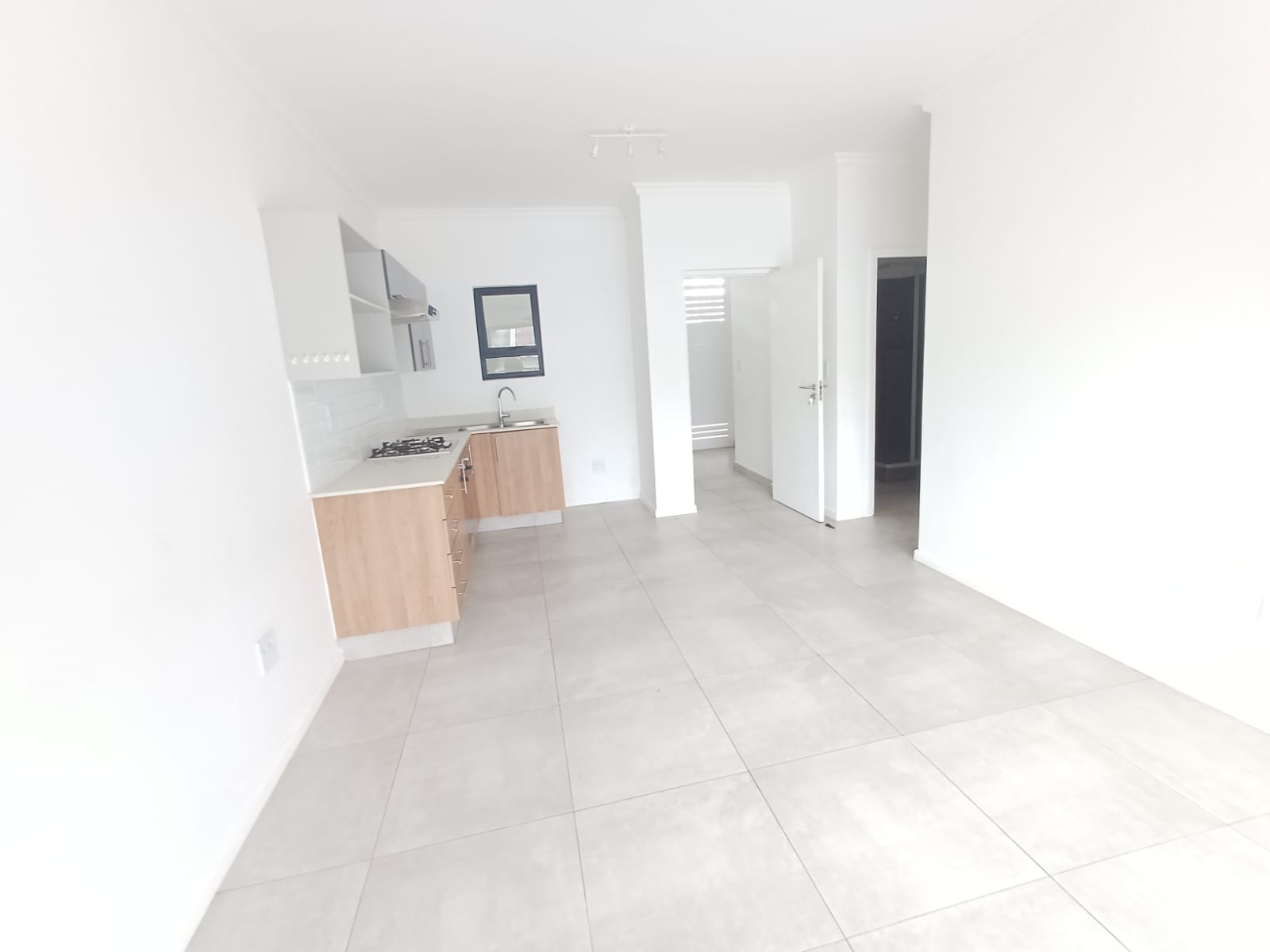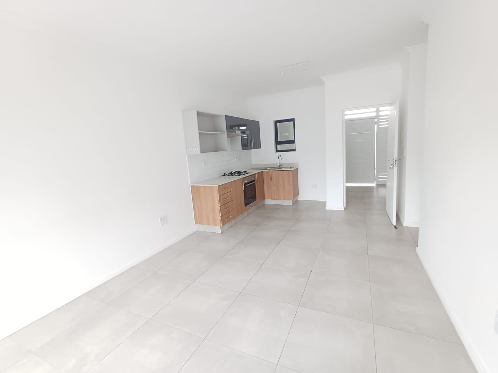 - Open-plan living area with fitted kitchen