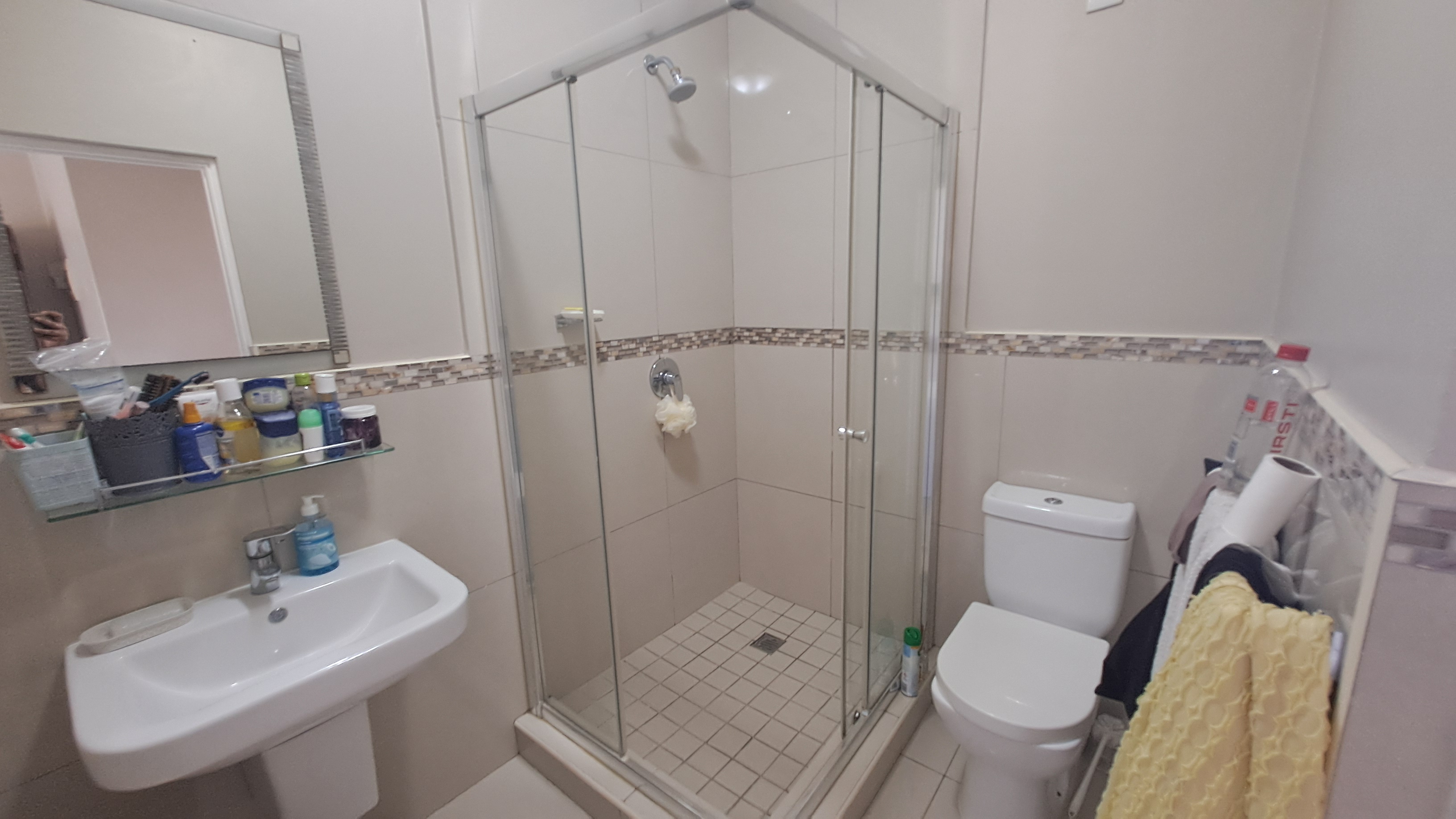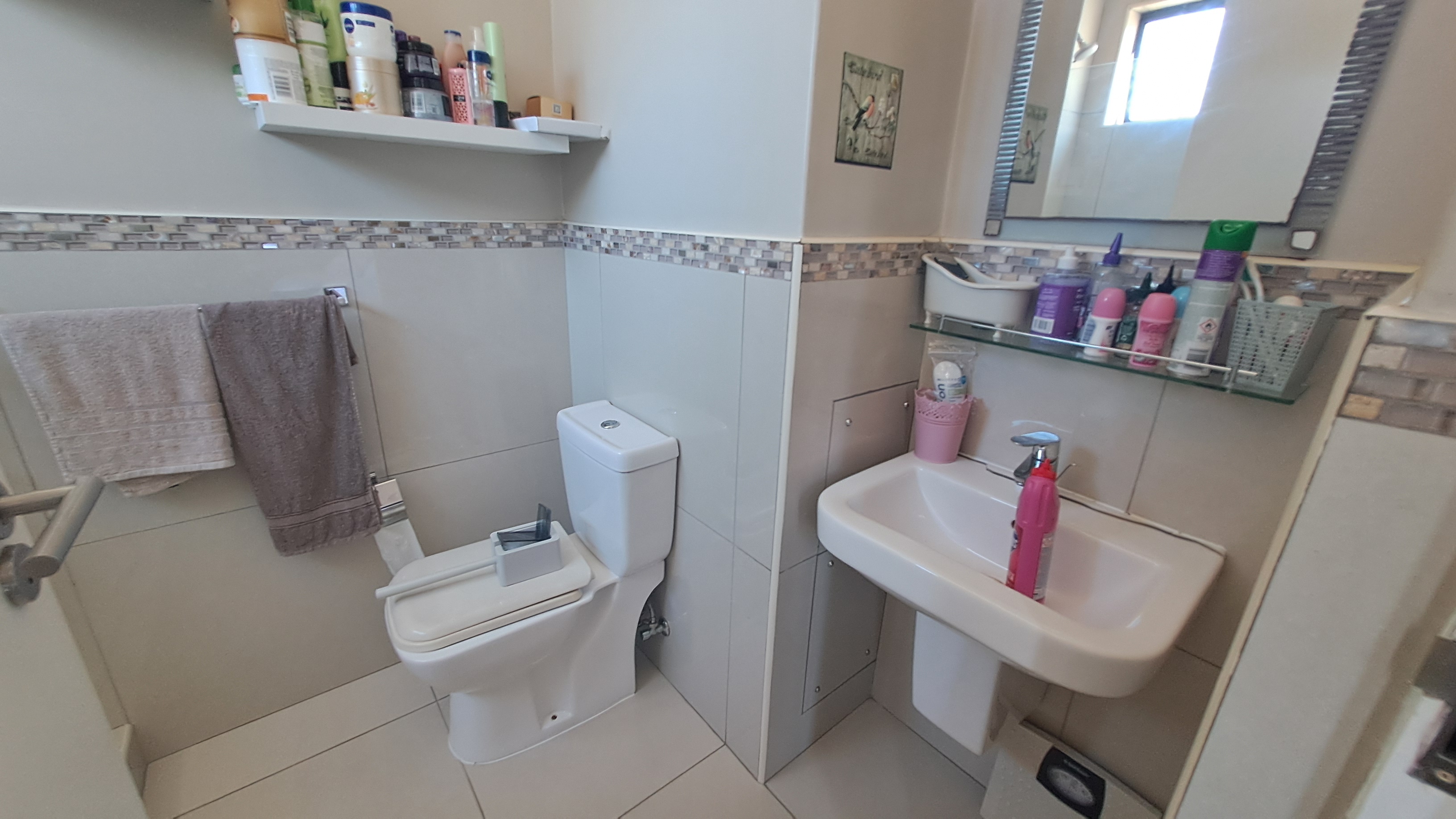 Both bedrooms are generously sized with built in cupboards, while the main bedroom features an en suite bathroom for added privacy. The second bathroom is neat and modern, perfect for guests or family.