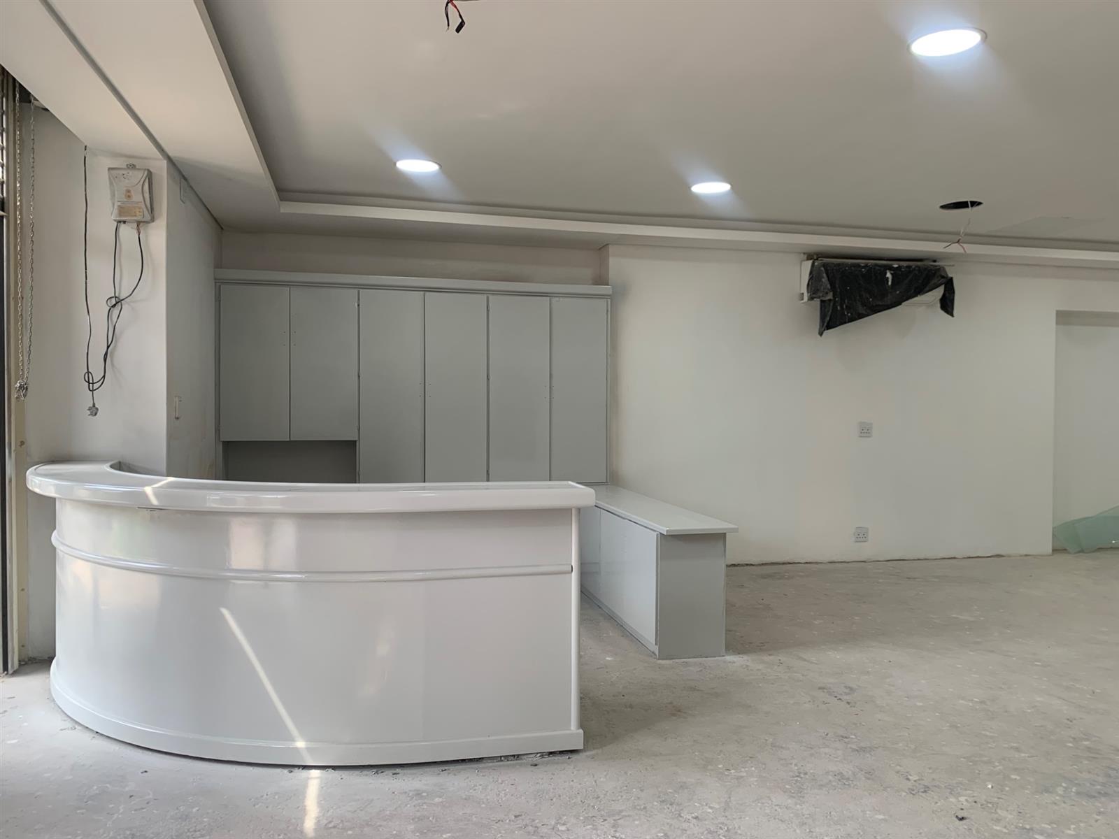 This well-sized 180sqm office space offers a functional and welcoming layout. As you enter, you’re greeted by a large reception area fitted with built-in cupboards and drawers for convenient storage. Beyond the reception is a spacious open-plan area, ideal for desks, workstations, or a collaborative setup.