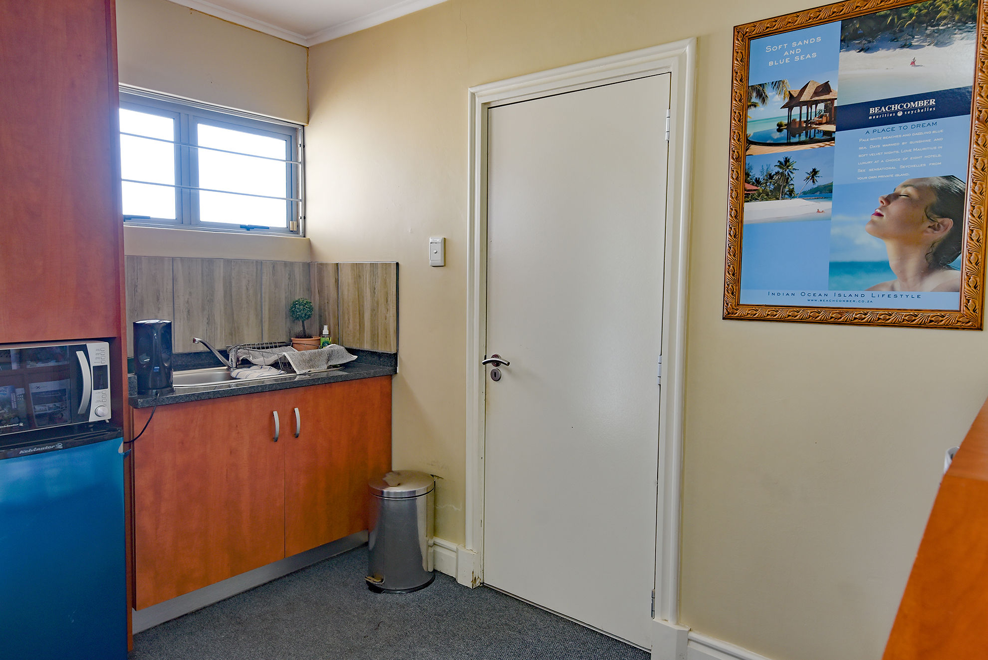 -The office is air conditioned.-Kitchen.