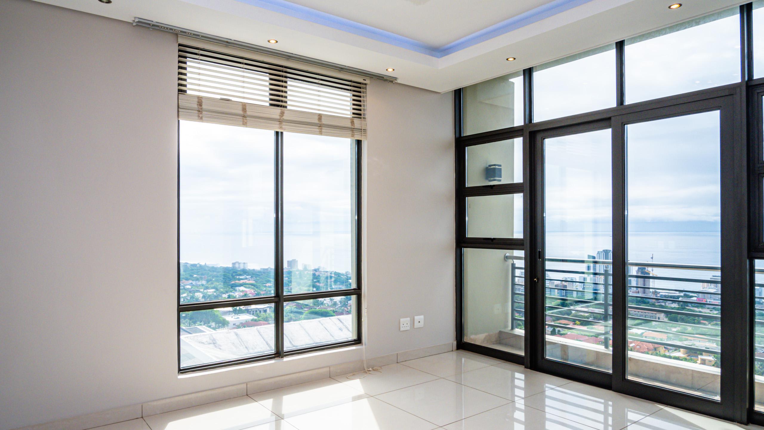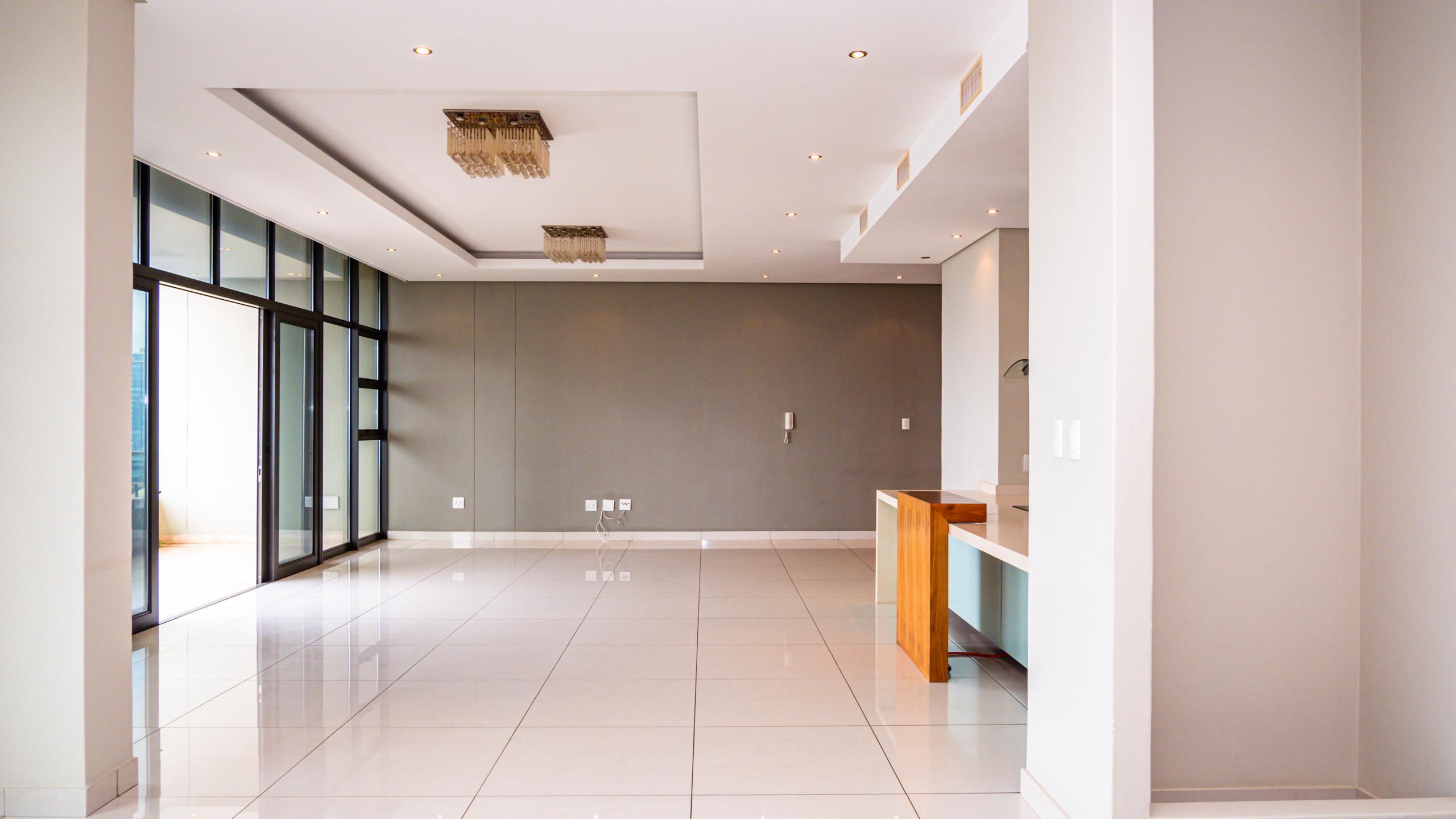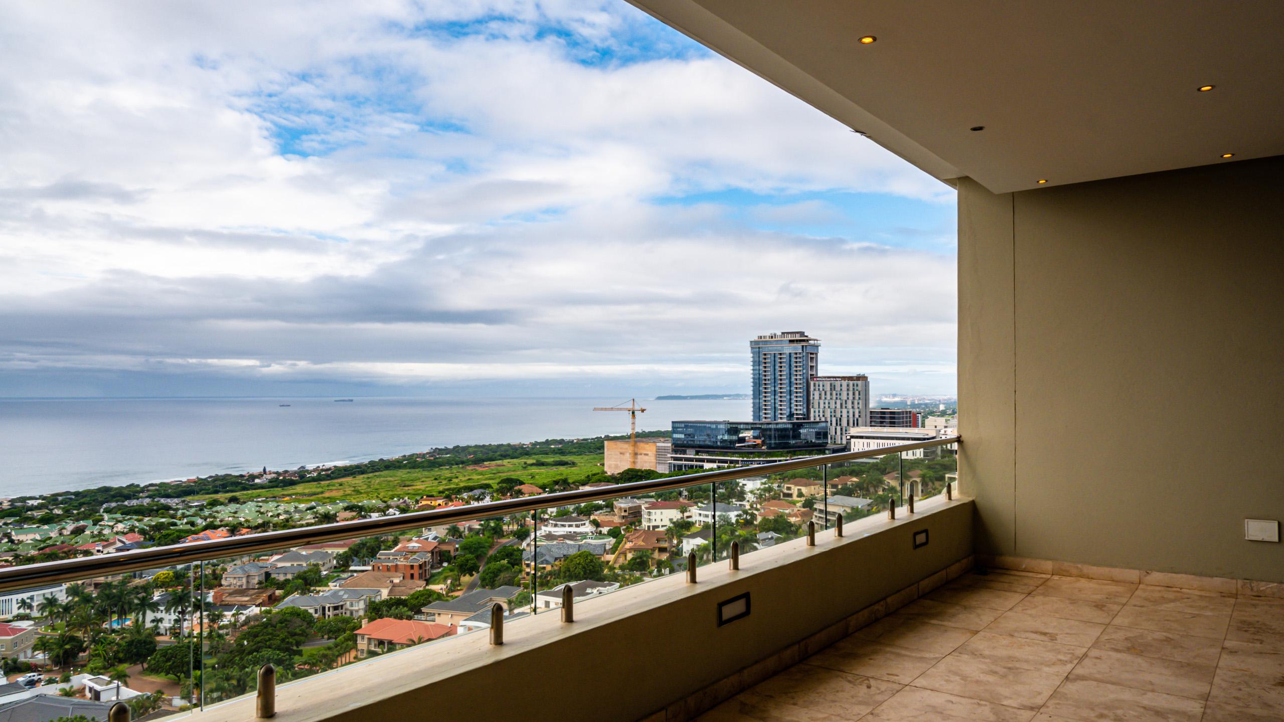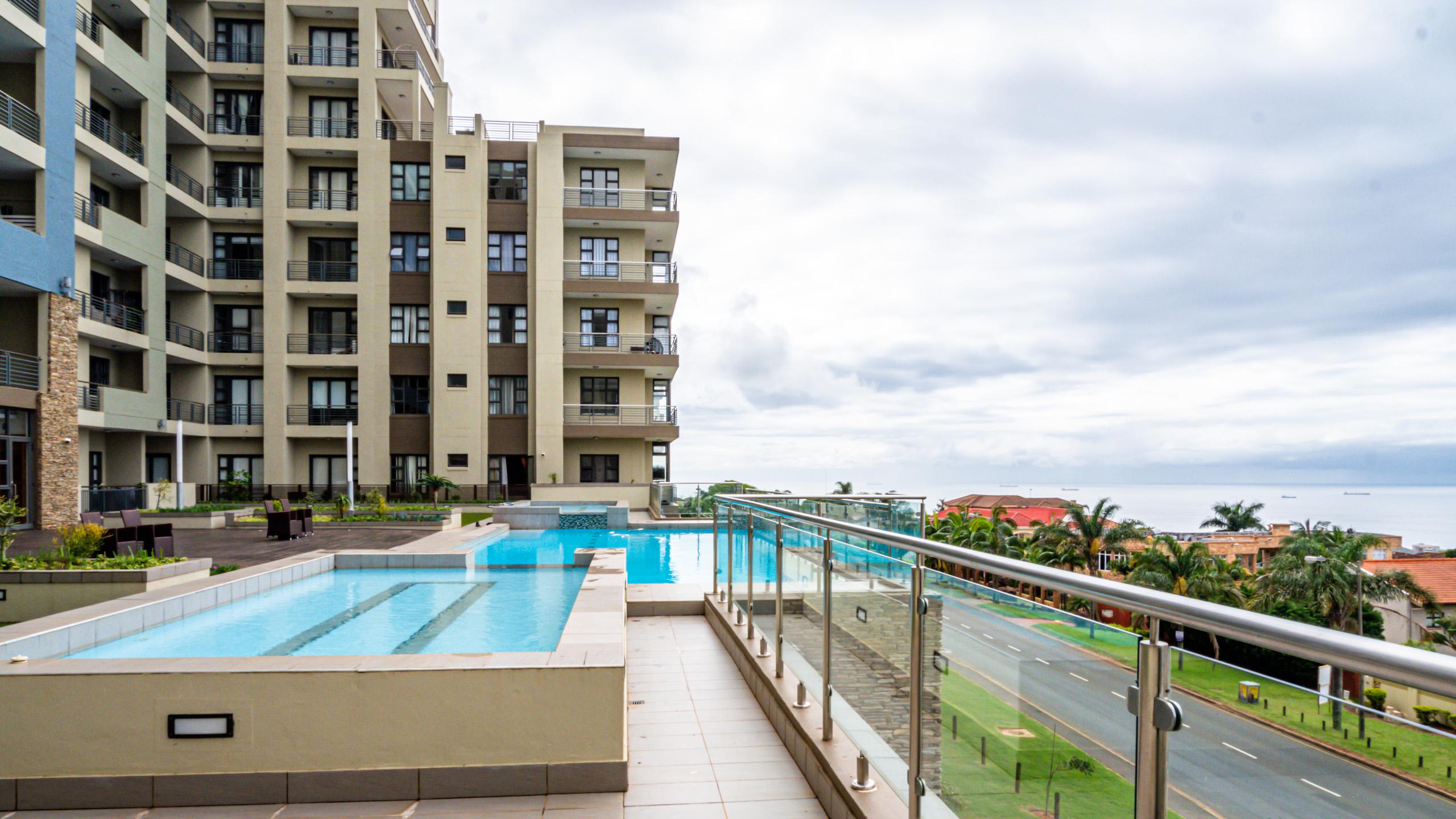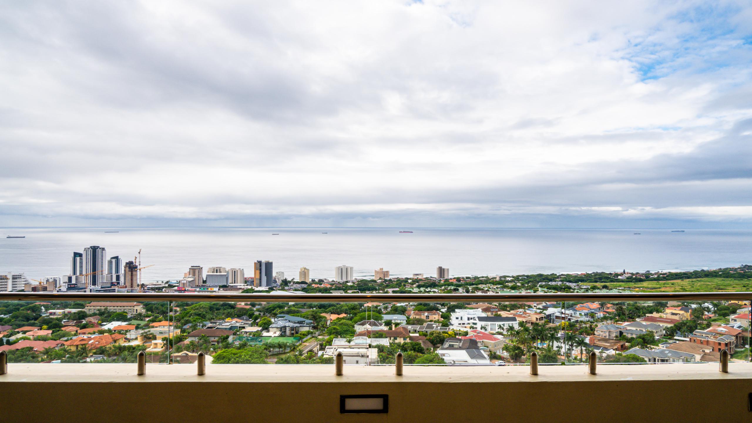 The open plan living area is light and airy and has sliding doors which open onto a covered balcony from which the extensive sea views can be admired. The ultra-modern kitchen is integrated with the living area and features built in cupboards, granite tops and a large breakfast bar. The home also contains a separate scullery and an office area. The apartment is situated within a secure development and two lock-up garages, two parking bays and maids quarters in the building, as well as the communal pool, are available for the use of the residents of the apartment. The development is nearby to all local amenities and is available to rent, unfurnished.