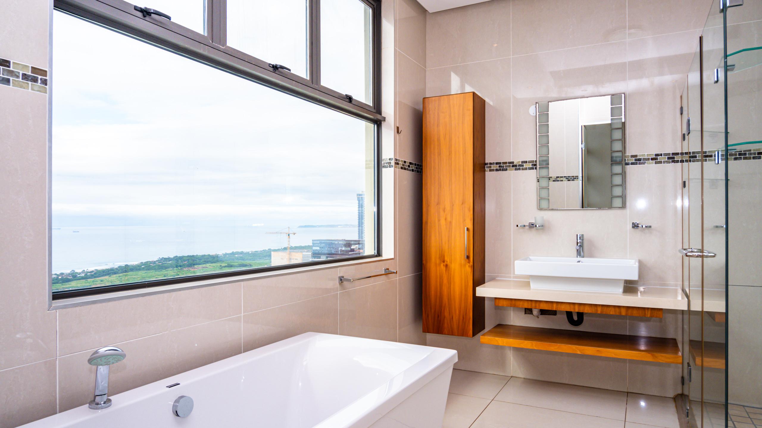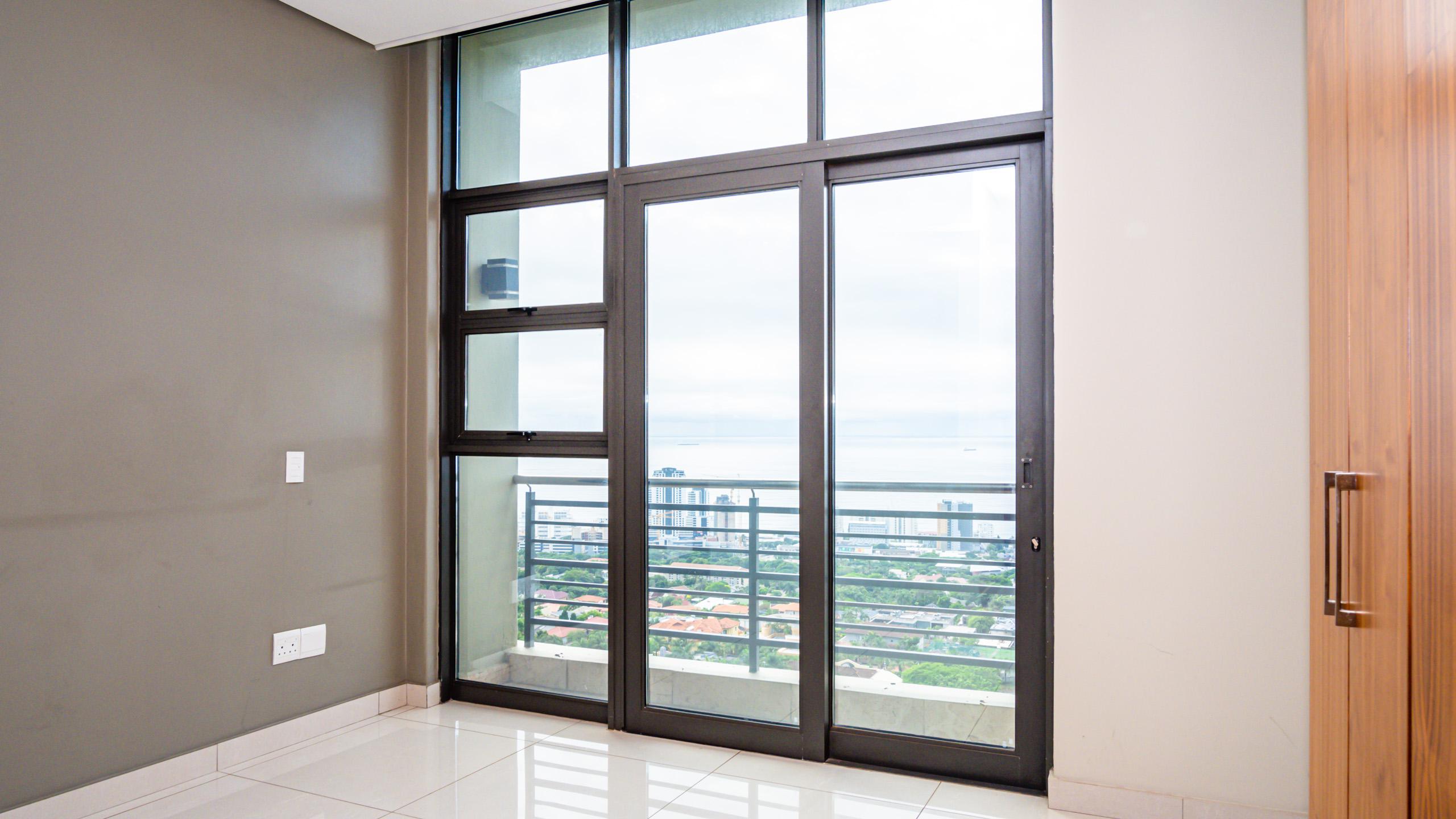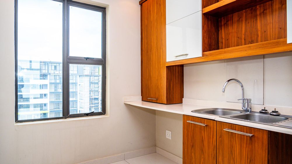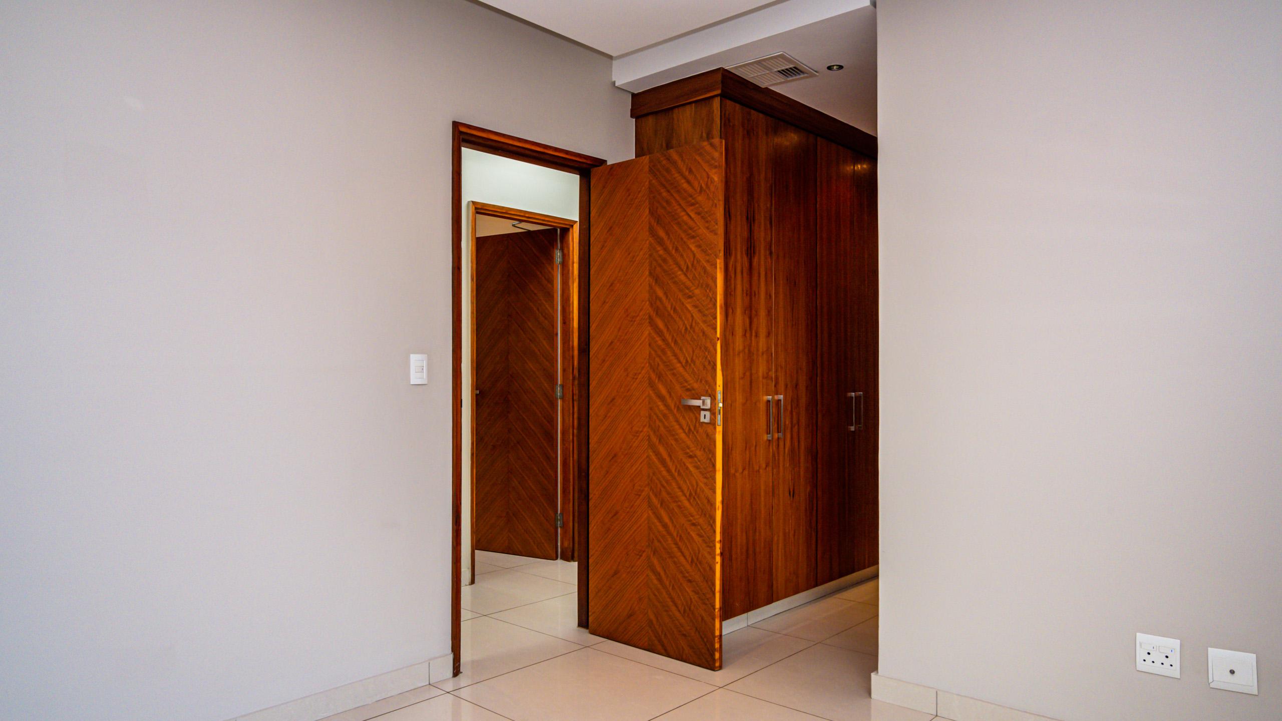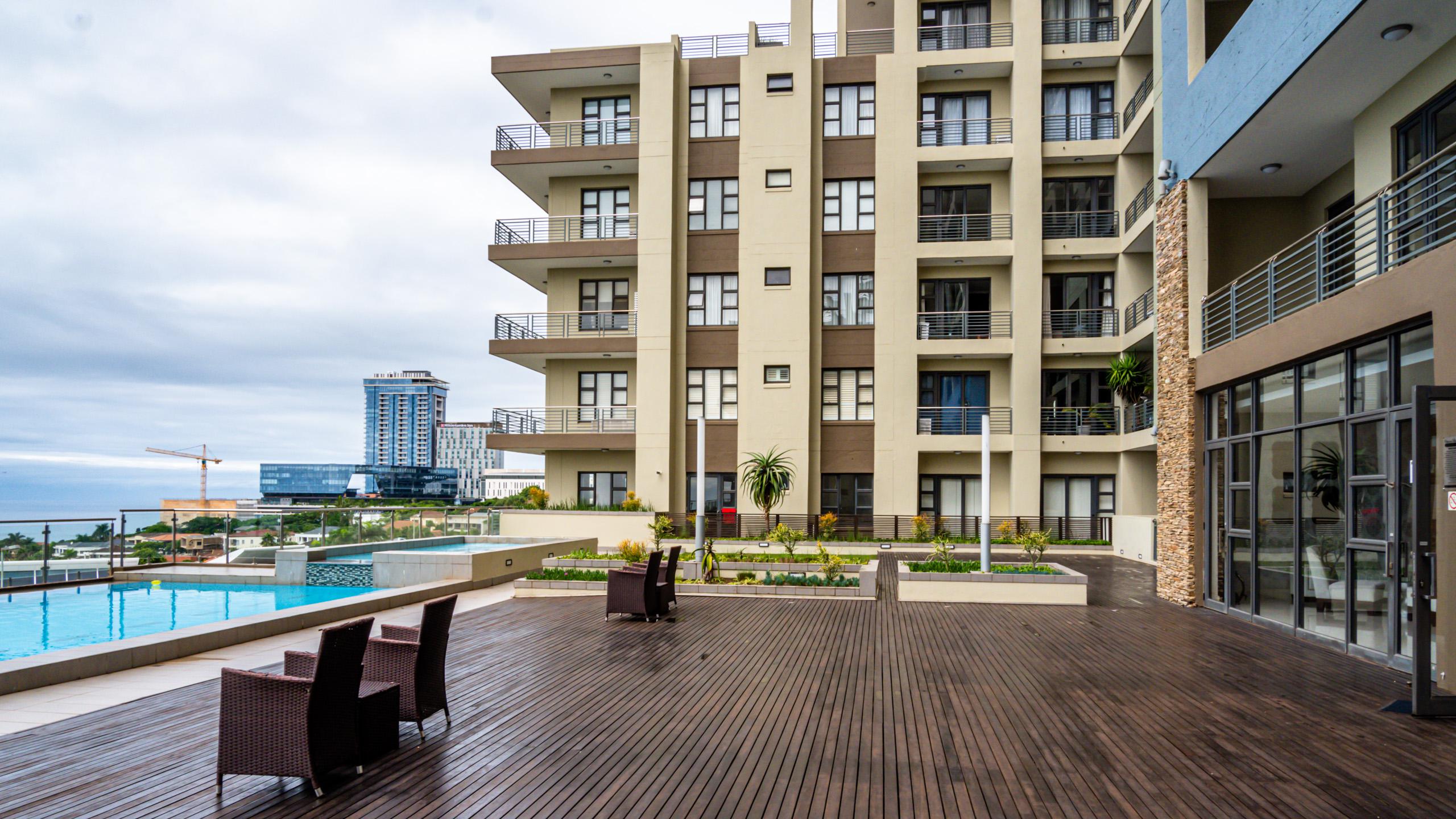 The open plan living area is light and airy and has sliding doors which open onto a covered balcony from which the extensive sea views can be admired. The ultra-modern kitchen is integrated with the living area and features built in cupboards, granite tops and a large breakfast bar. The home also contains a separate scullery and an office area. The apartment is situated within a secure development and two lock-up garages, two parking bays and maids quarters in the building, as well as the communal pool, are available for the use of the residents of the apartment. The development is nearby to all local amenities and is available to rent, unfurnished.