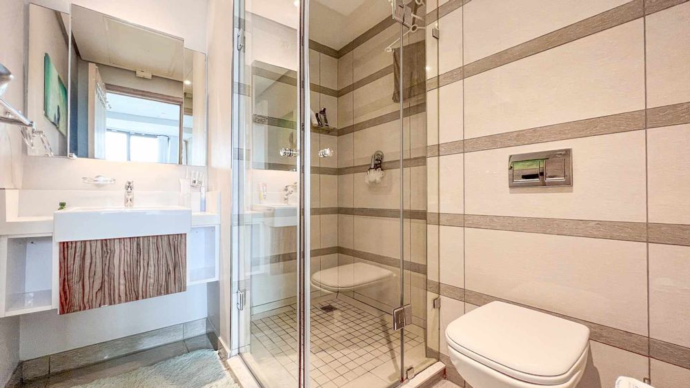 The en-suite bathroom adds a touch of luxury, featuring a modern shower that offers a refreshing escape. With its sleek design and well-thought-out fixtures, this bathroom provides both functionality and style, ensuring your daily routines are both comfortable and efficient.