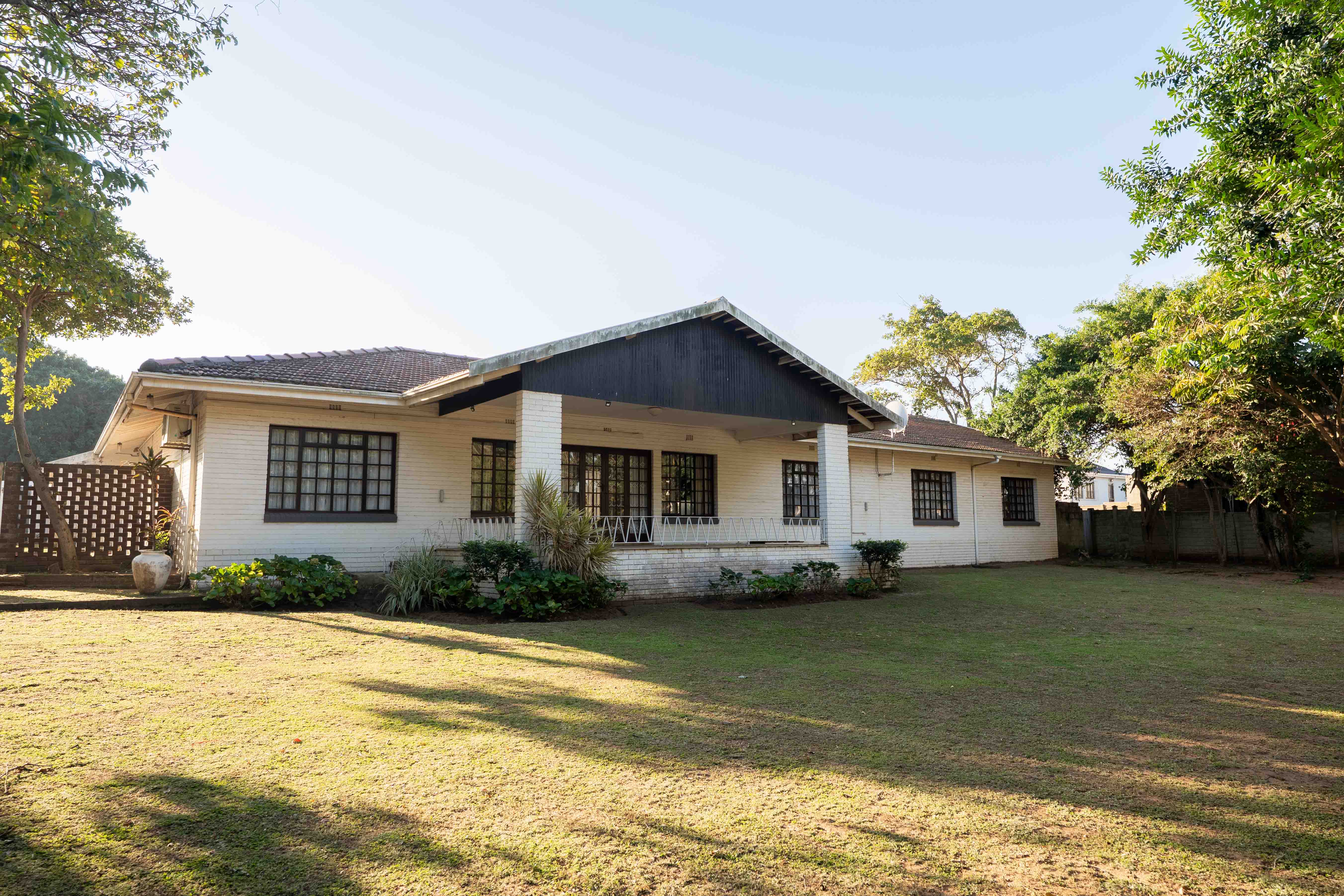 Set on a large, level, fully walled property in the quiet suburb of Umkomaas a few meters away from the Golf course , this beautiful home offers the perfect blend of space, comfort, and potential. A generous driveway and double garage welcome you in, while the expansive yard provides a secure playground for children and pets alike. Inside, you’re greeted by a versatile entrance area—ideal as a home office or study. The airy lounge flows seamlessly to a spacious veranda, perfect for entertaining or simply soaking in the views of the lush garden. The kitchen is neat and functional, featuring ample built-in cupboards and a dedicated laundry area with direct access to the garage. A guest toilet and full guest bathroom service the home, along with two generously sized bedrooms, each with built-in cupboards.