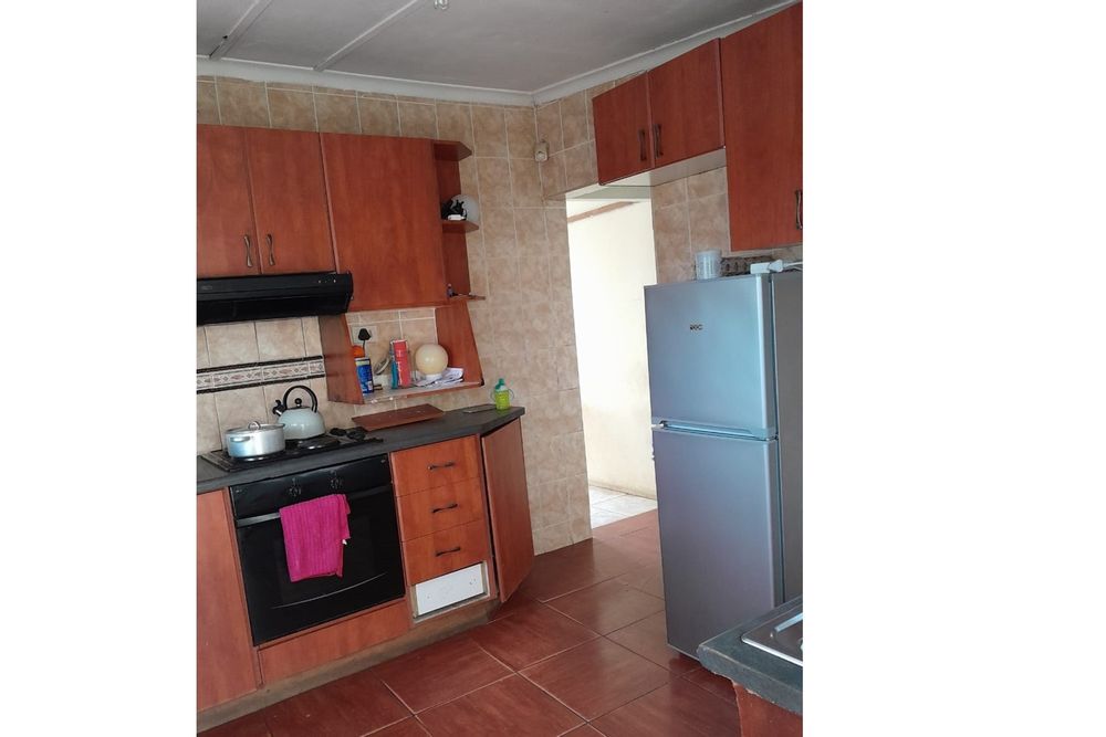 EXP introduces beautiful 2 bedrooms house. Master bedroom boasts built‐in cupboards. 1 fully tiled with geyser supplying hot water. Fully fitted with built‐in cupboards, wall and floor tiles, plus a fitted stove . Entire house is tiled throughout—clean, modern, and easy to maintain. Flat, fully fenced yard with a look up garage. Can accommodate parking for up to 4 cars on-site .Situated on a main transport route, offering easy access to taxis, buses, shops, and schools