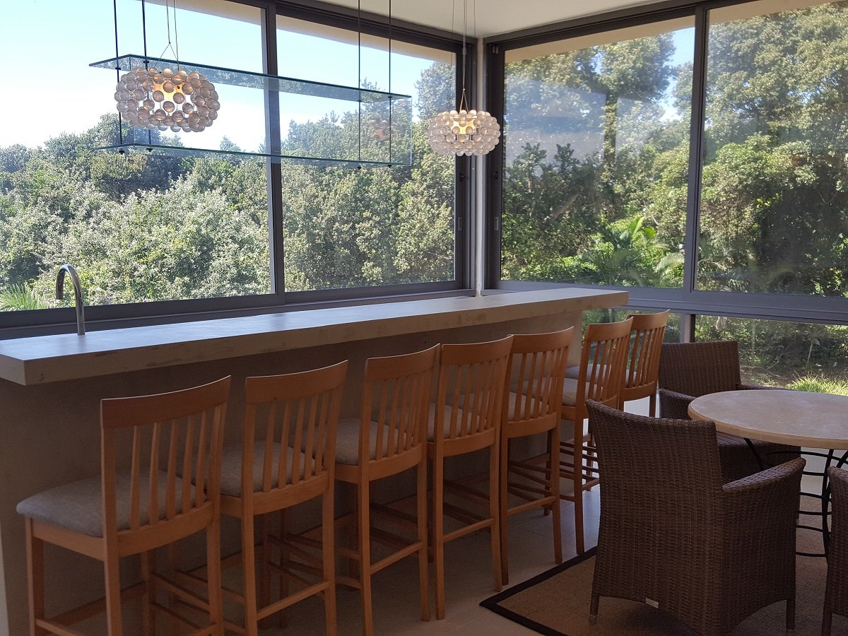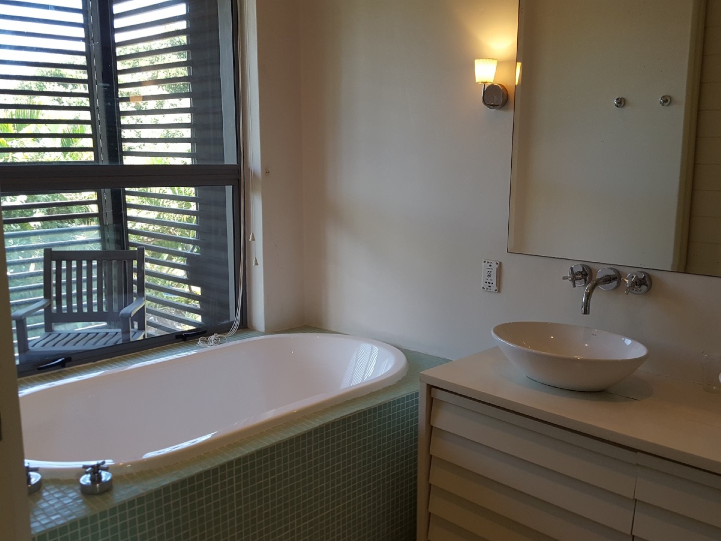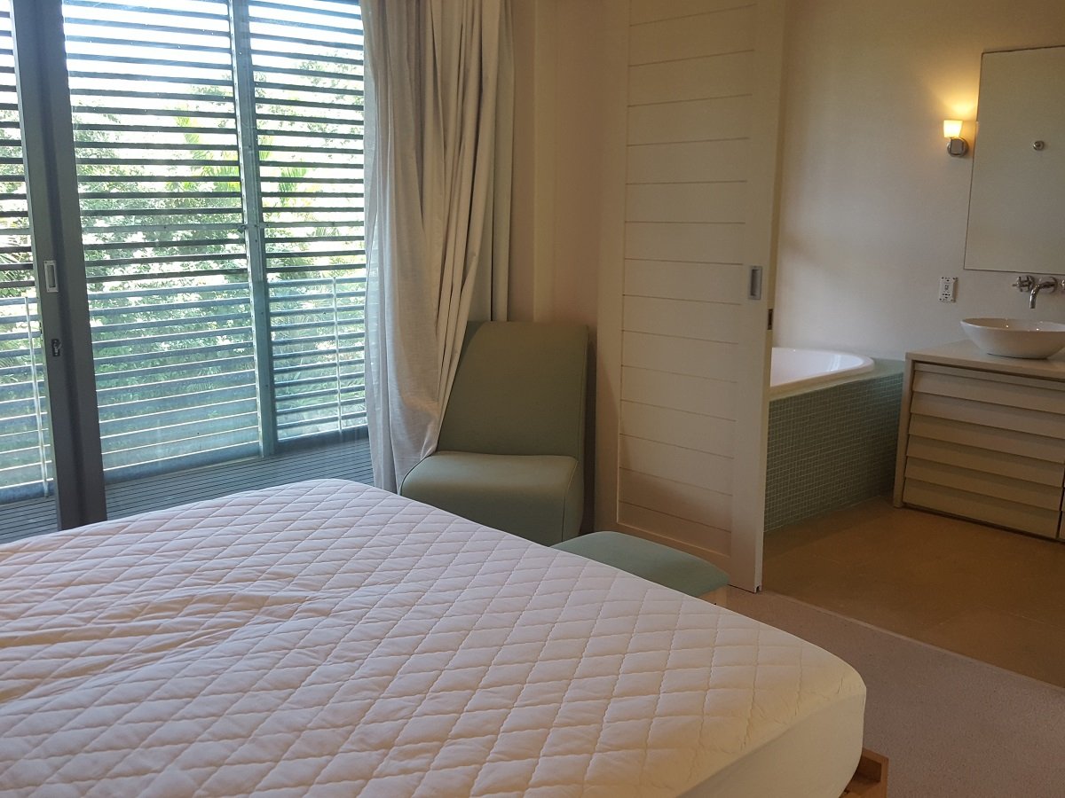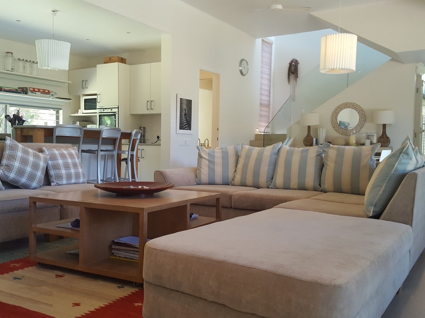 The upper level sports a bar with ocean and garden views, an entertainment area and a pyjama lounge with fireplace that looks onto the downstairs family room. A passage off these living areas leads to the 2 other air-conditioned bedrooms both with full en-suite; main bedroom has a large walk in dressing area with built in cupboards, plus an adjoining room that could be used as a baby room/study or private lounge, en-suite is open plan and the room opens to balcony and views!