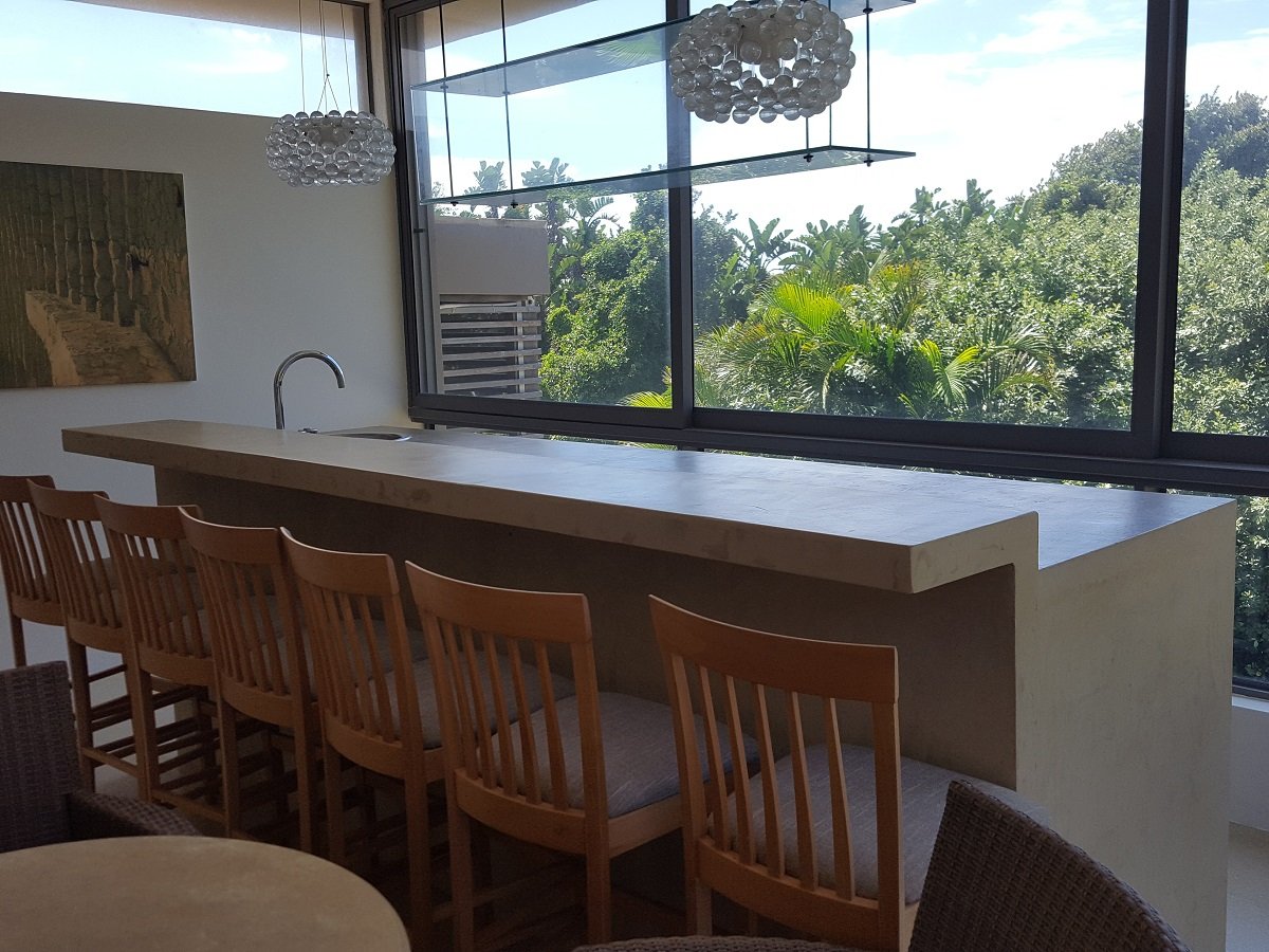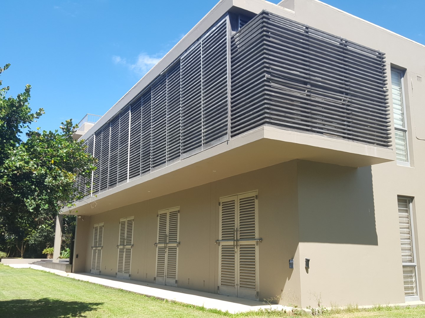 All outside doors have wooden shutters that open letting in the light and cool ocean breeze, and when closed add security and coolness, giving that Mediterranean feel.