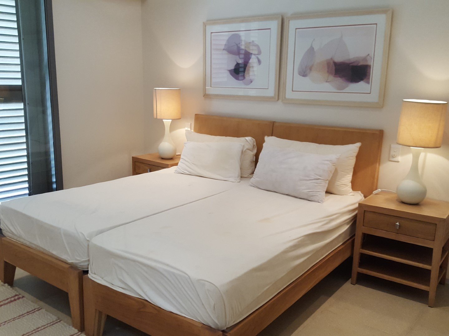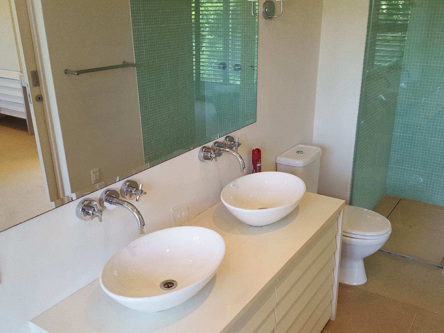 On the lower level are the very spacious open plan kitchen, dining room, lounge and family room which are concealed behind shutter sliding doors that run along the entire front of the home and open to a large deck style, undercover patio overlooking the heated pool and manicured garden. Also on this level are 4 huge stylishly furnished bedrooms all with built in cupboards, dressers, ceiling fans and all open to a patio which leads to the garden and pool area! Off the passageway are 2 full bathrooms with modern, quality finishes!