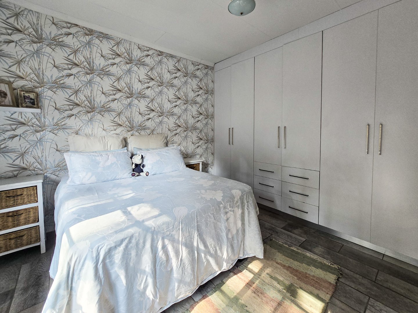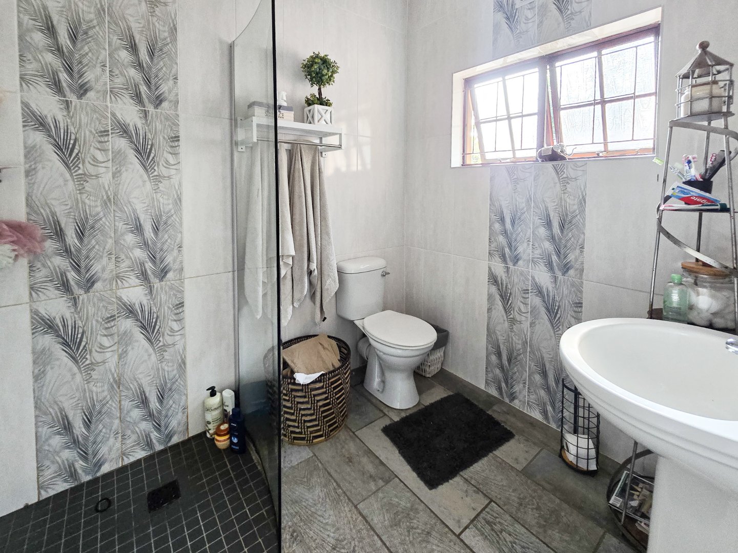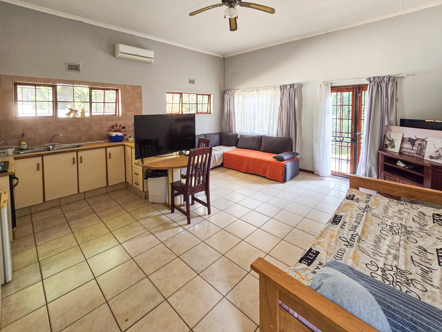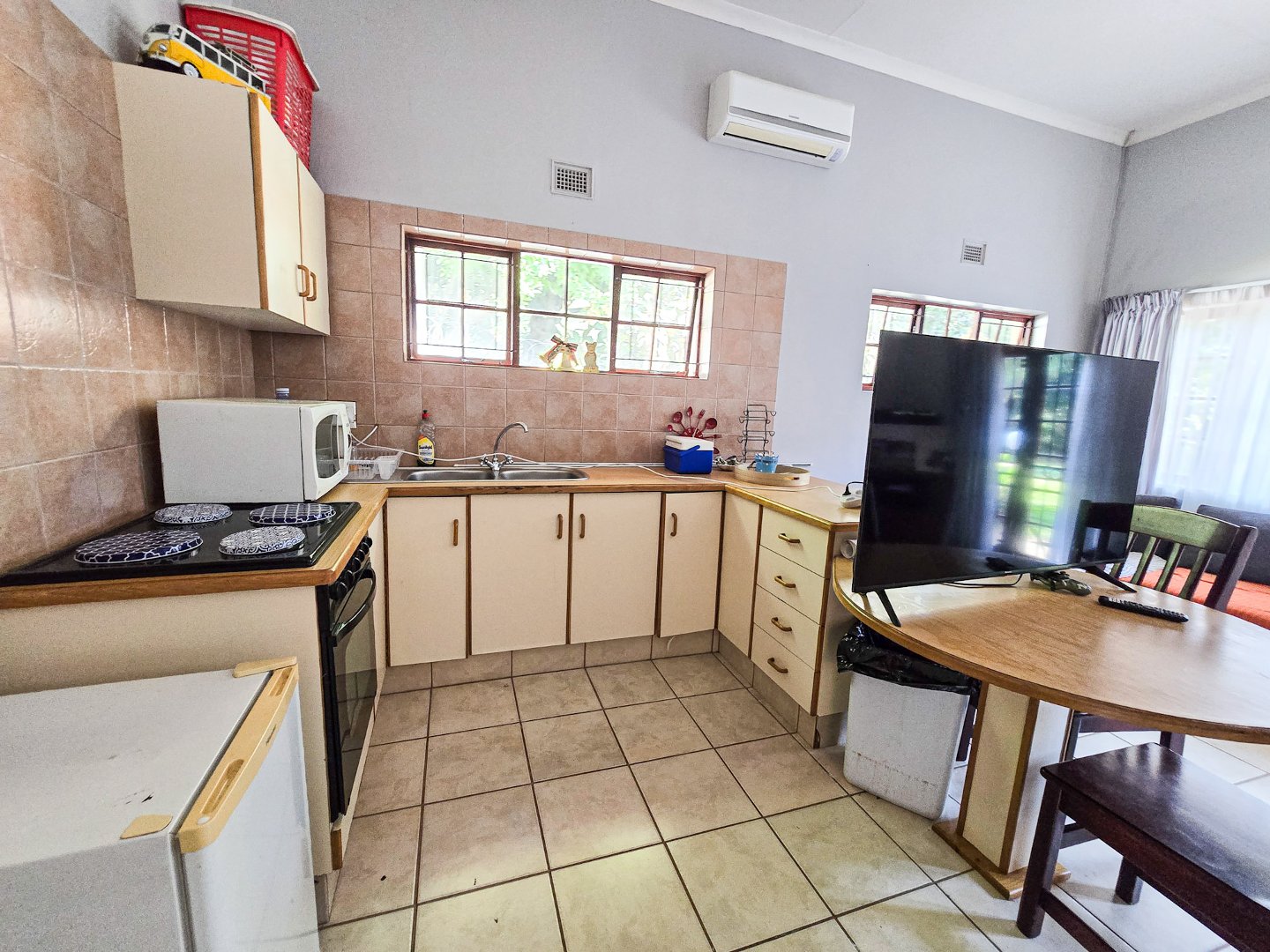 The main home boasts an impressive 4 bedrooms and 2 bathrooms, designed for comfortable and practical living. Step into a large open plan living area, with a lovely, large kitchen with ample cupboard space, hob and a double eye-level oven, complemented by a spacious scullery. The sunken lounge creates a cozy and inviting atmosphere, leading to a patio with a swimming pool.