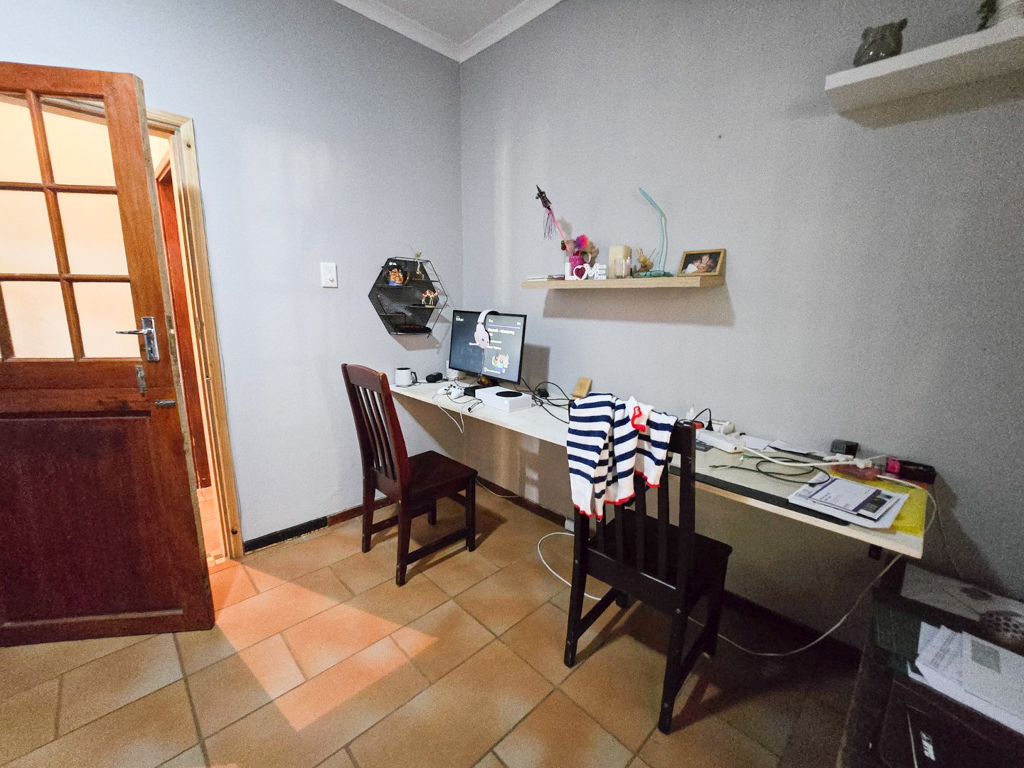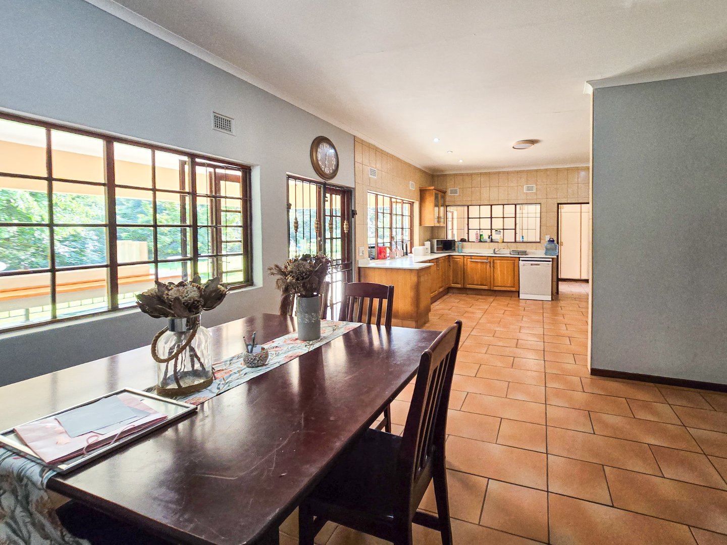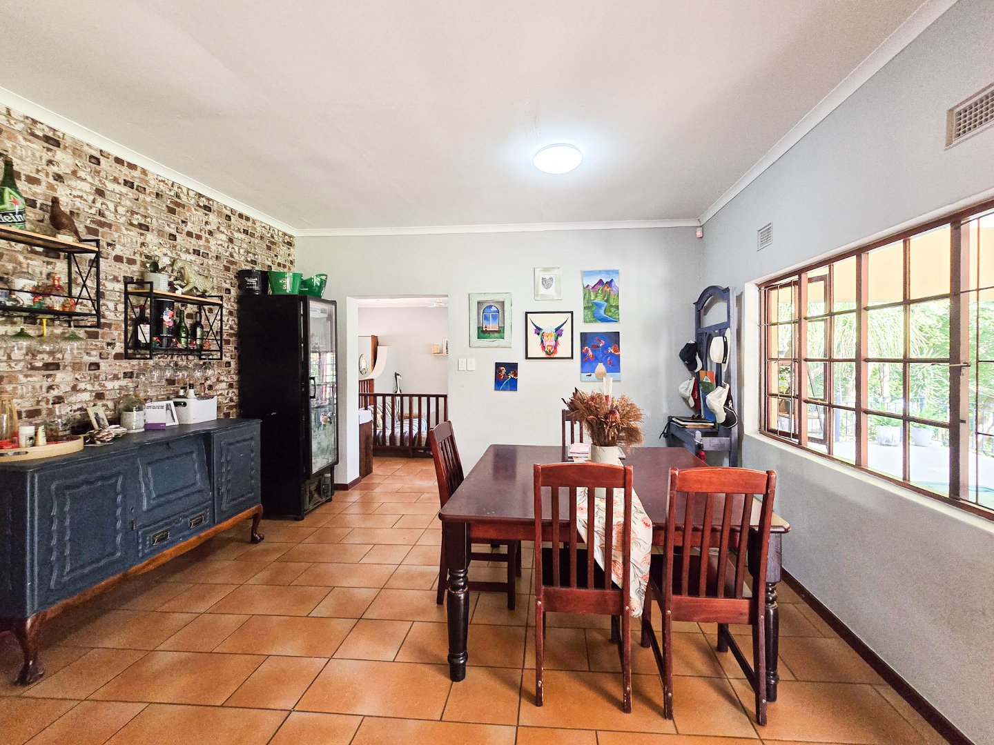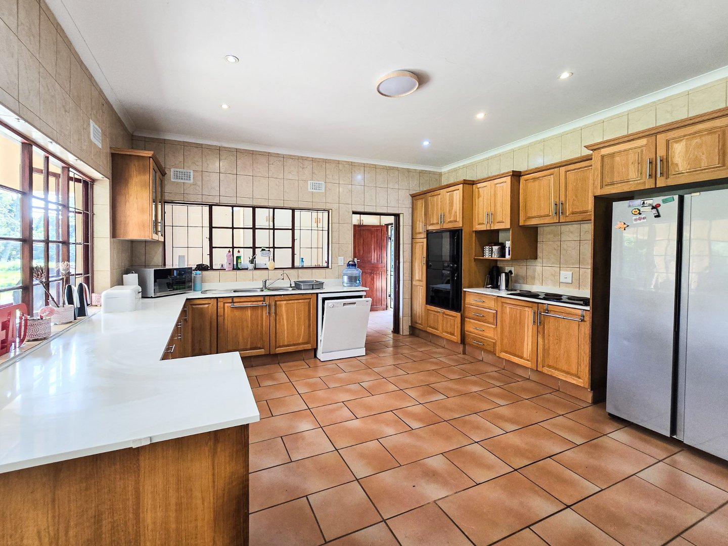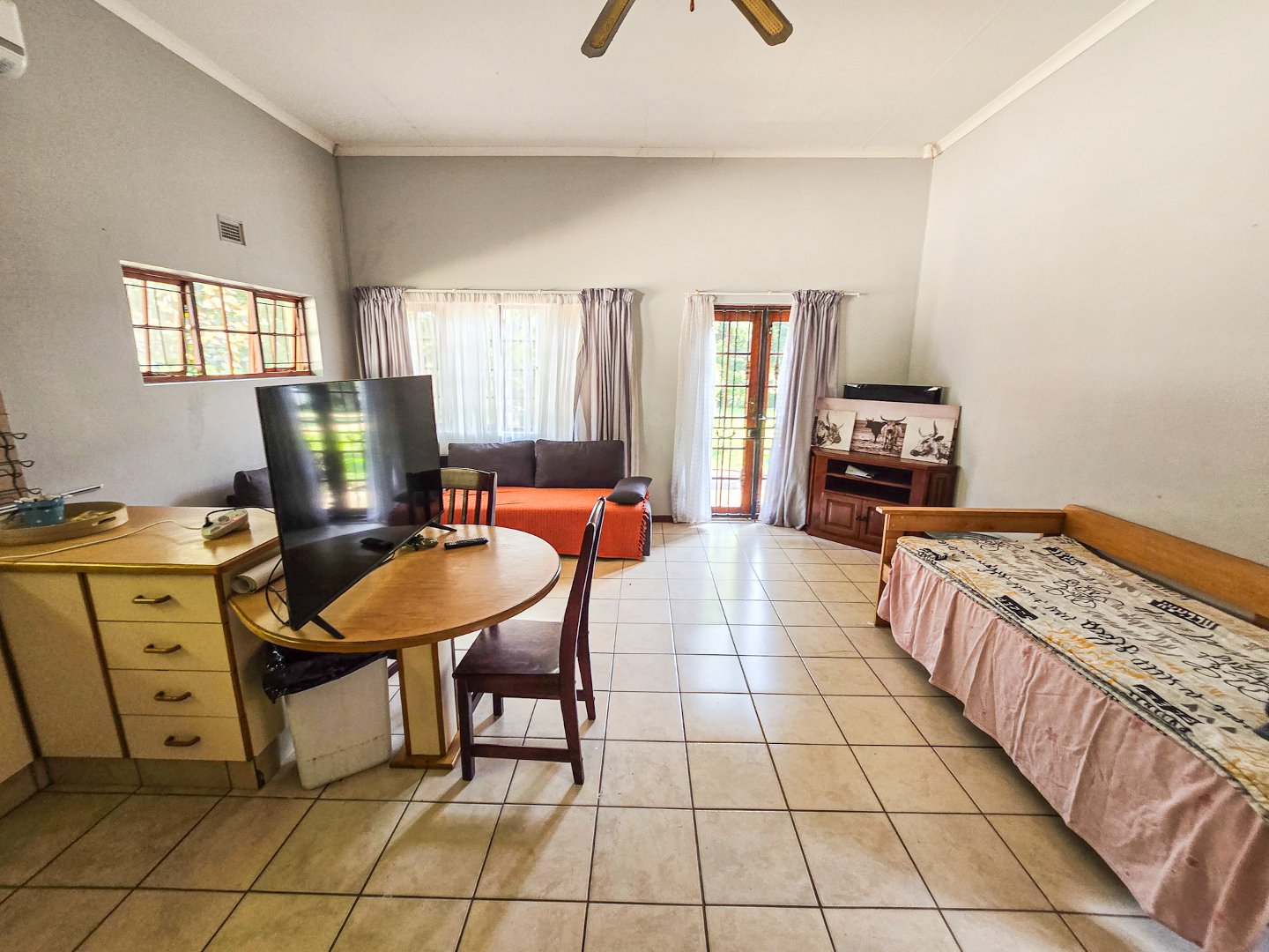The main home boasts an impressive 4 bedrooms and 2 bathrooms, designed for comfortable and practical living. Step into a large open plan living area, with a lovely, large kitchen with ample cupboard space, hob and a double eye-level oven, complemented by a spacious scullery. The sunken lounge creates a cozy and inviting atmosphere, leading to a patio with a swimming pool.