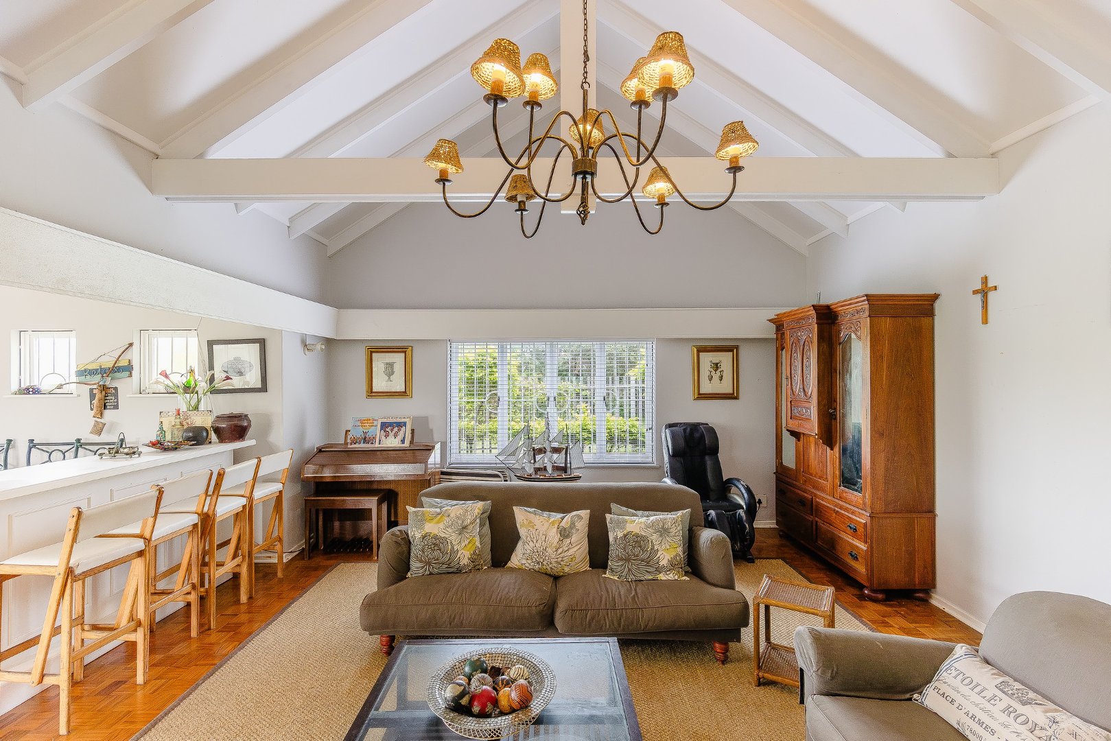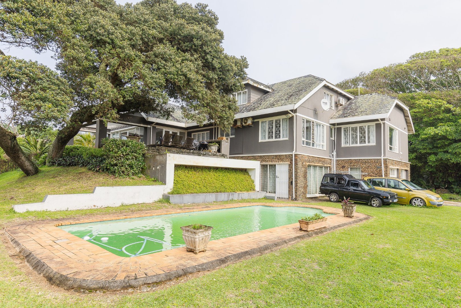 If you are looking for space... look no further. This is a huge 6 bedroom beachfront home located in the popular suburb of Umtentweni. With its spacious living area, boasting high ceilings, you will enjoy the light and airy feel. The lounge features a cozy fireplace, creating a warm ambiance, and also leads into a bar and entertainment area, making it ideal for hosting unforgettable gatherings.