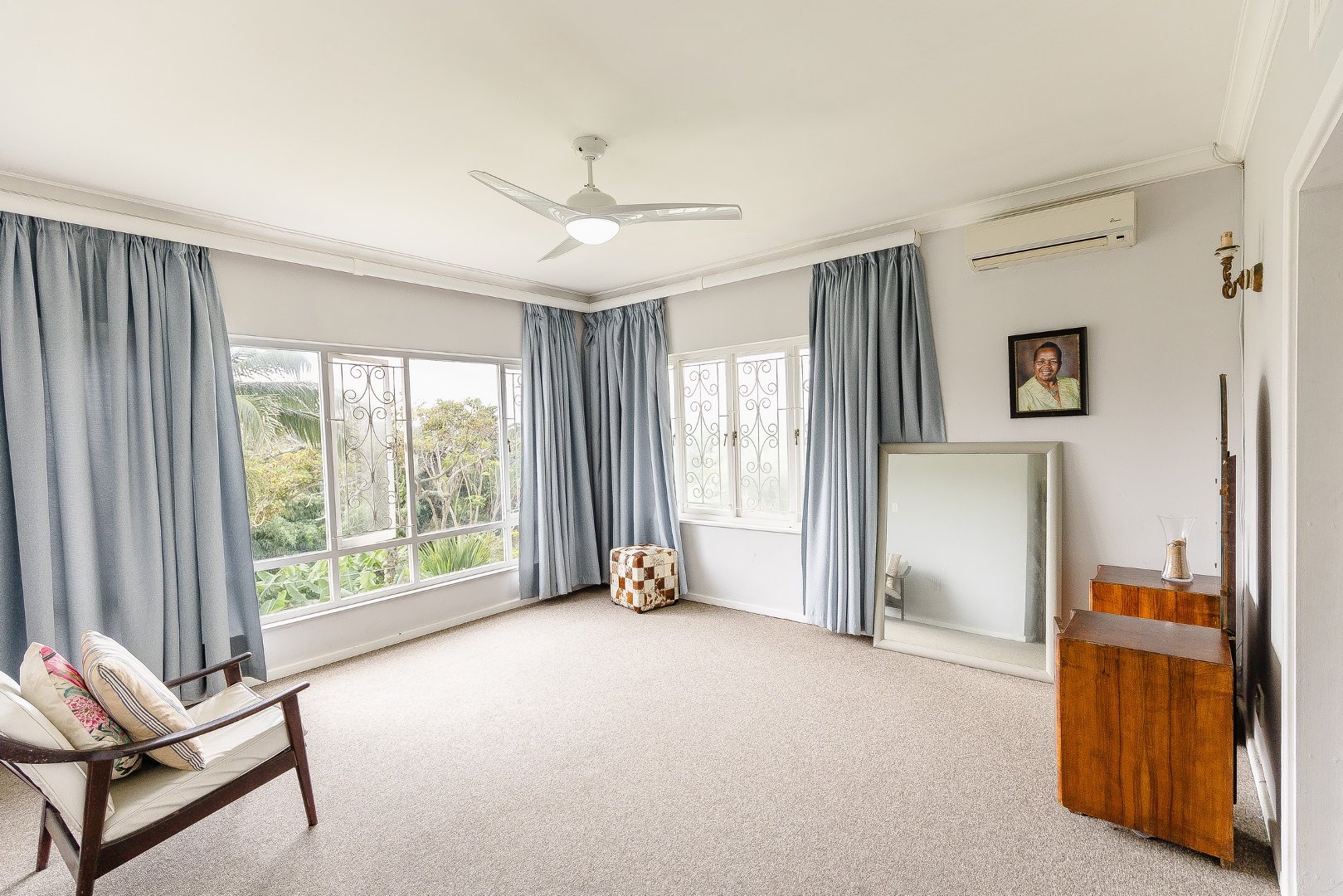 The upper level presents a third expansive bedroom where one can home more guests or visitors.