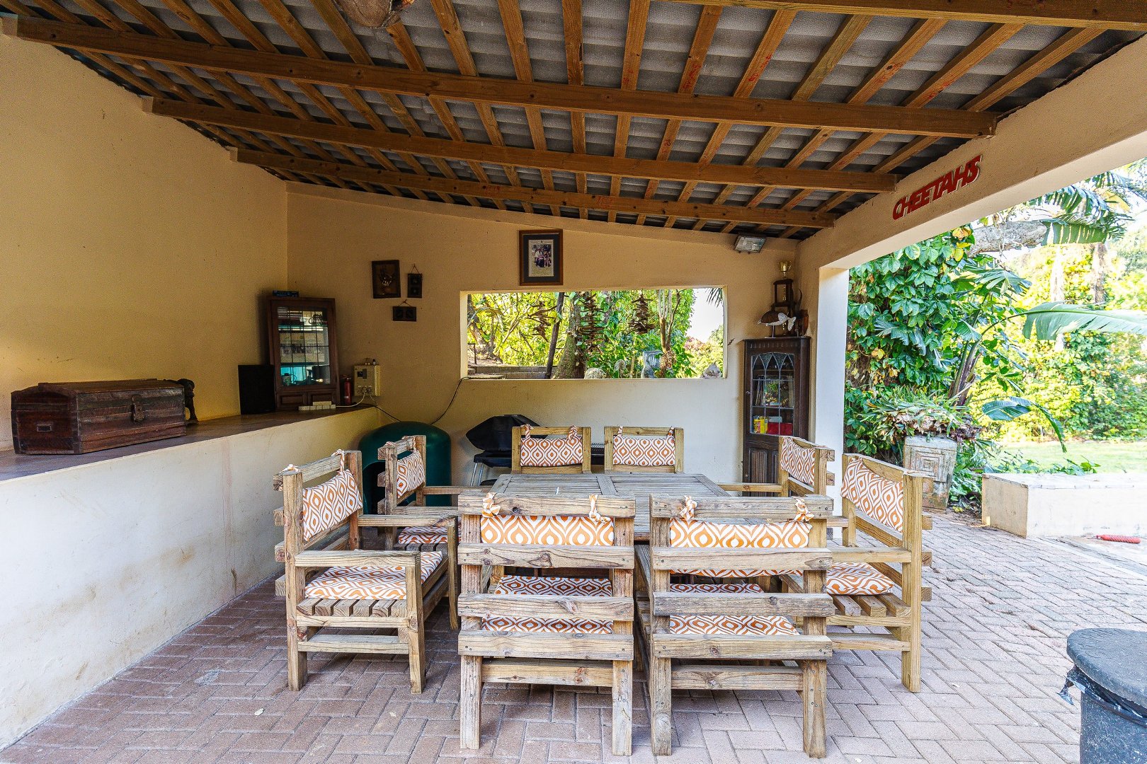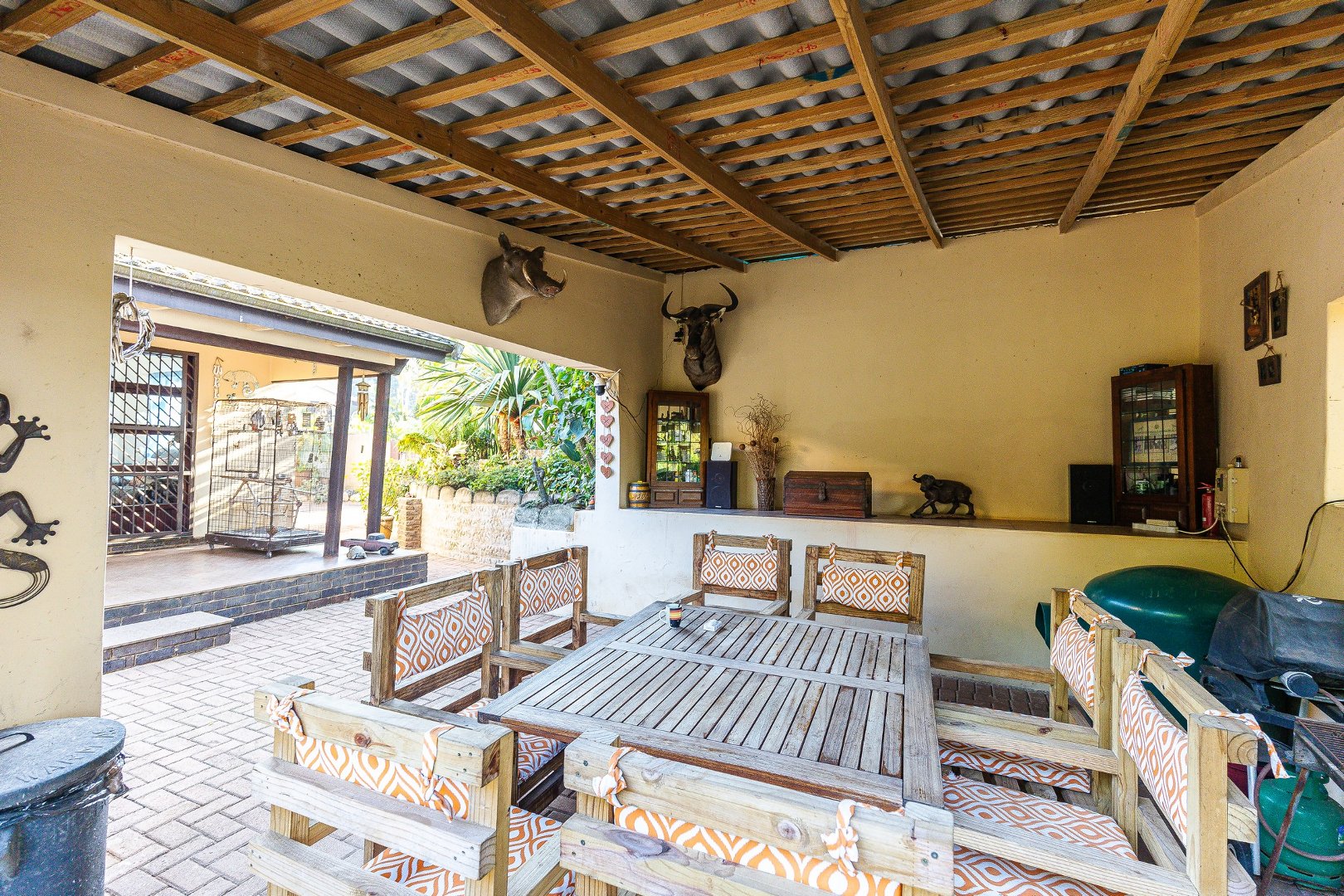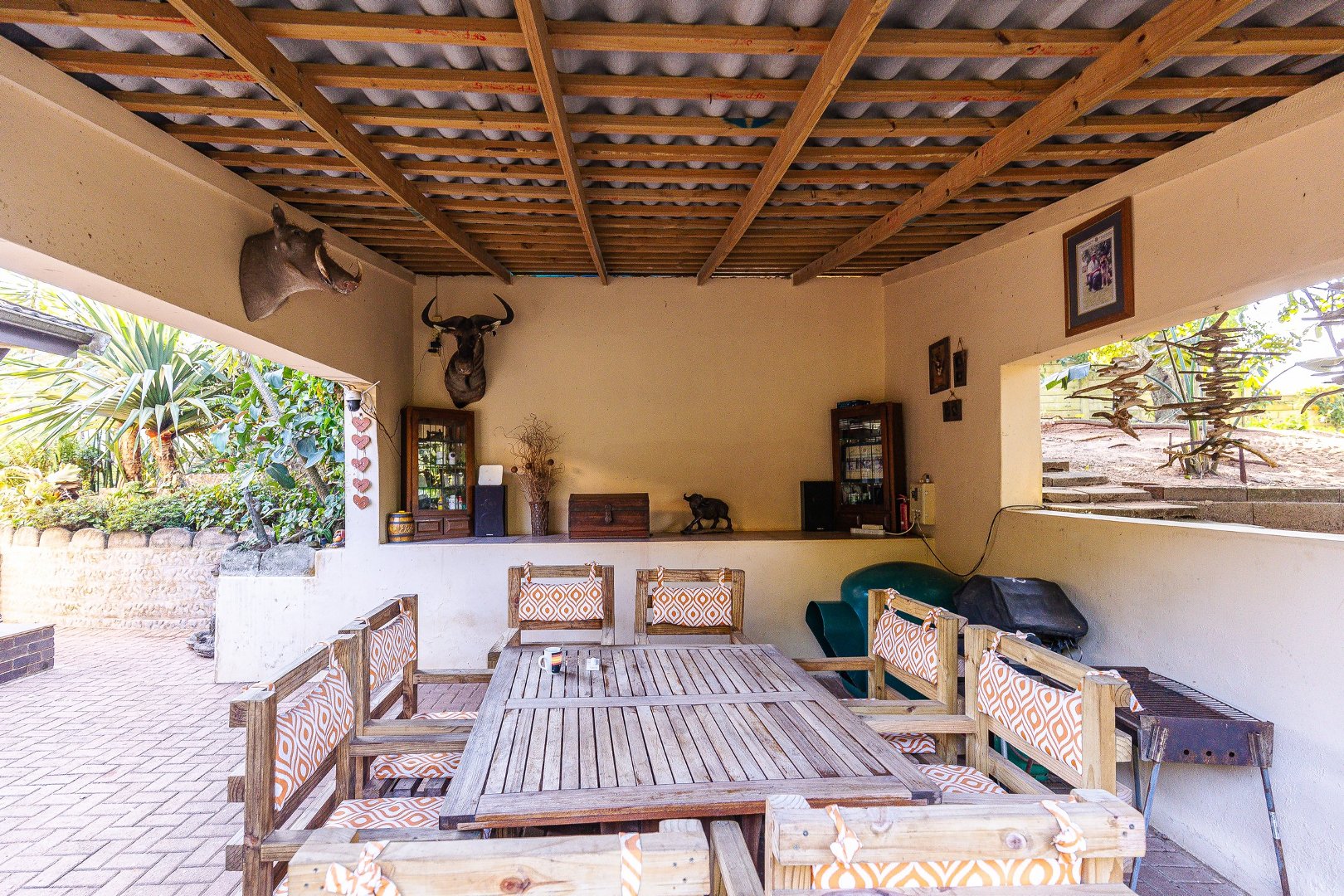 There is a separate one-bedroom self-contained flat, complete with its own entrance. This privacy is a great solution for guests, extended family, or even a rental opportunity, allowing for additional income or independent living. There is also staff accomodation.
