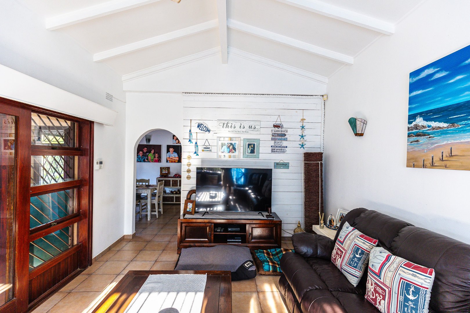 The home is equipped with an alarm system and beams.