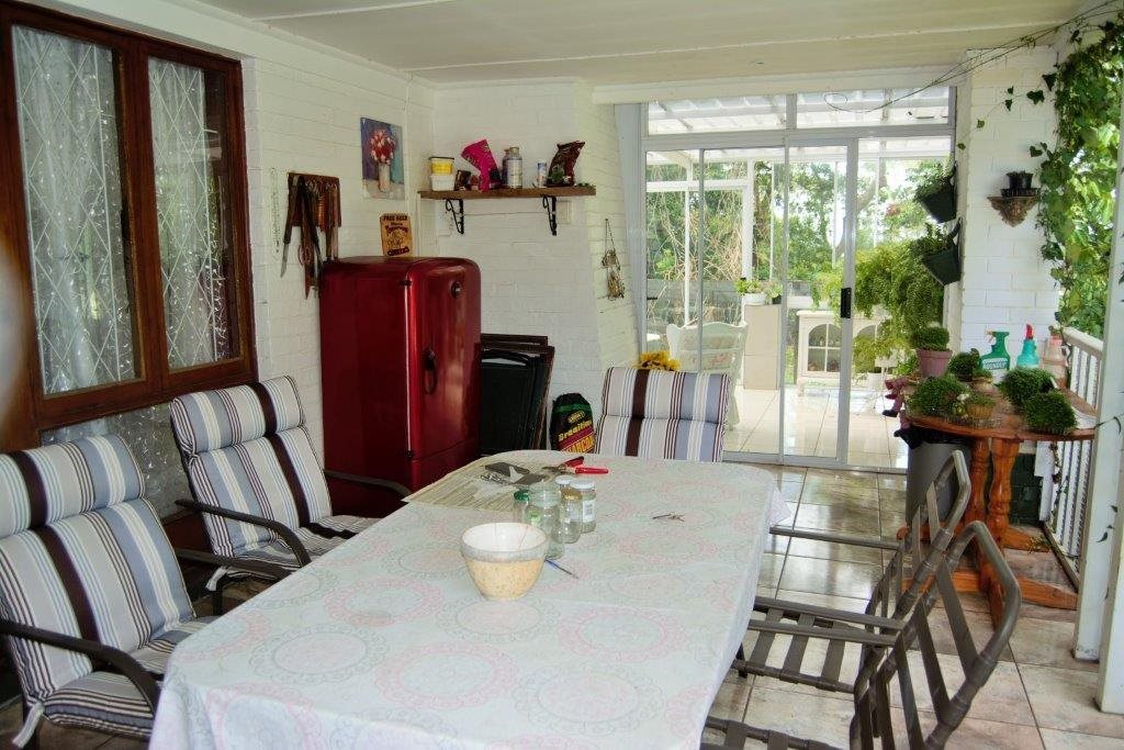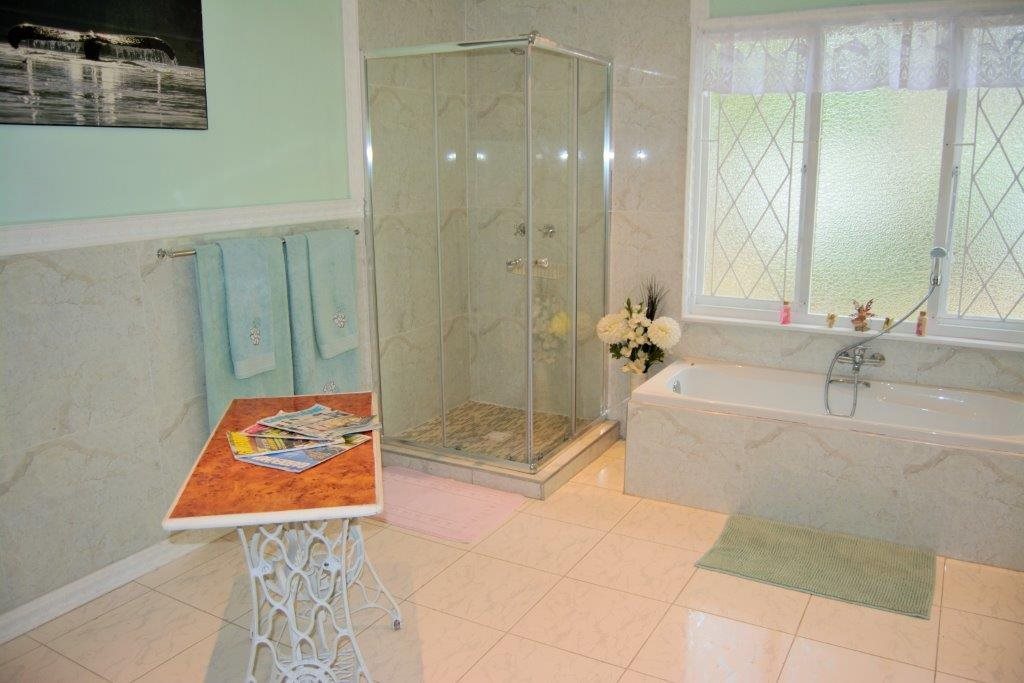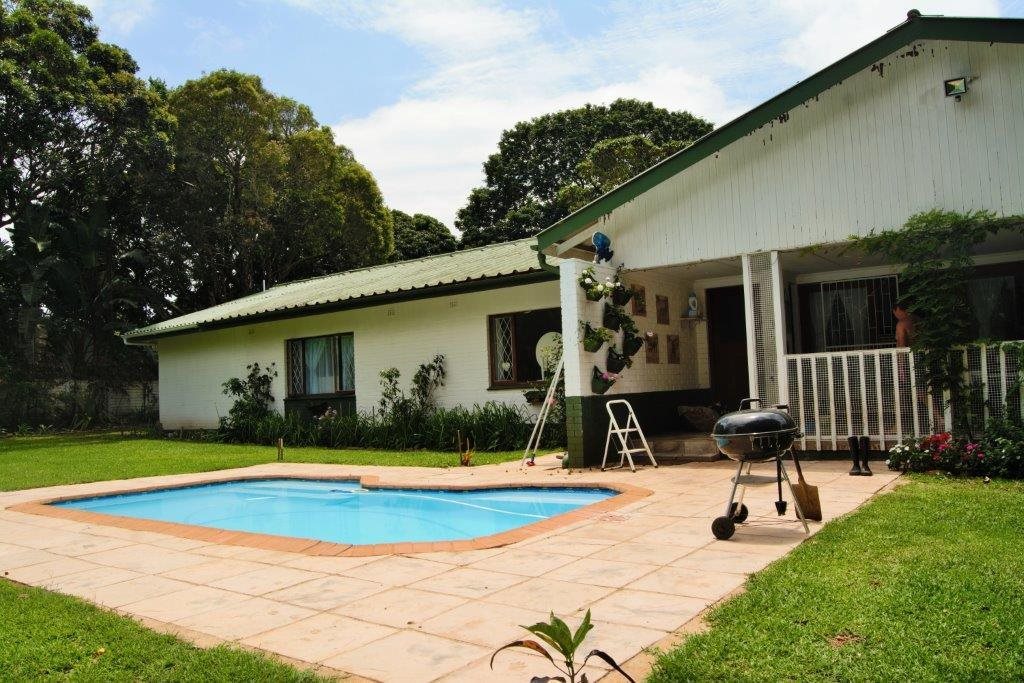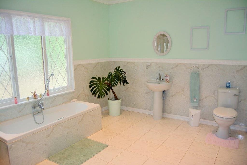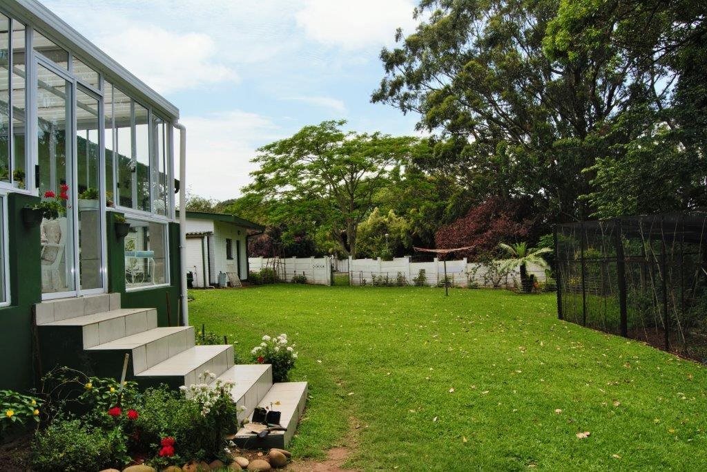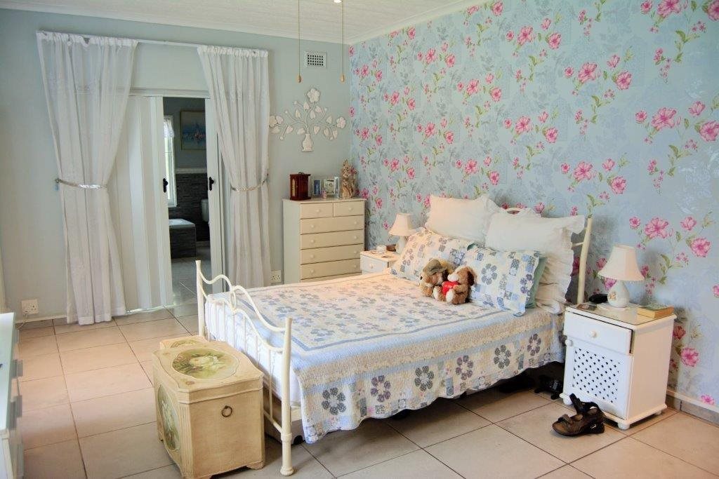 Sparkling blue swimming pool set in sprawling garden with prolific birdlife. Also a green house, ample parking, single garage, carport, storeroom and staff quarters!
