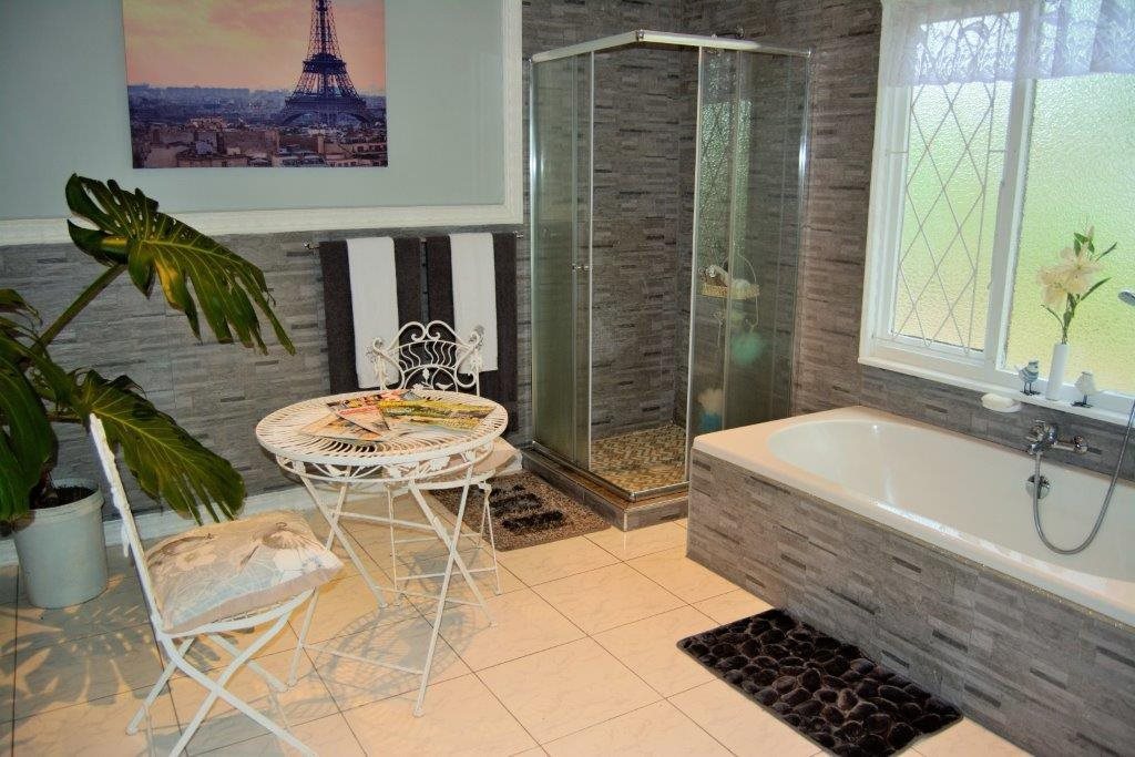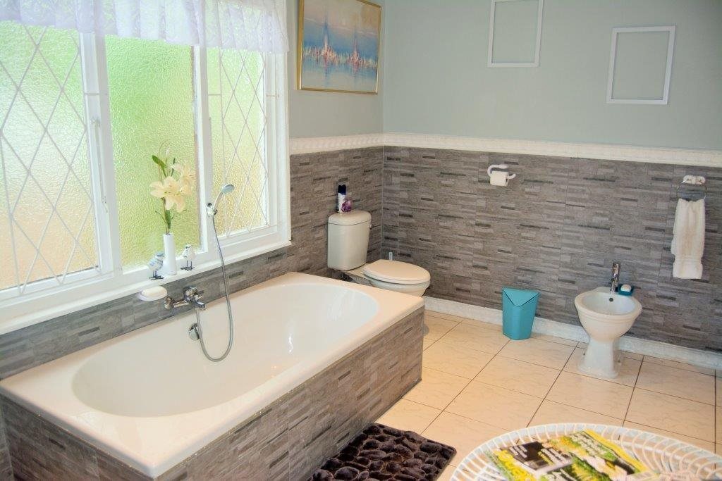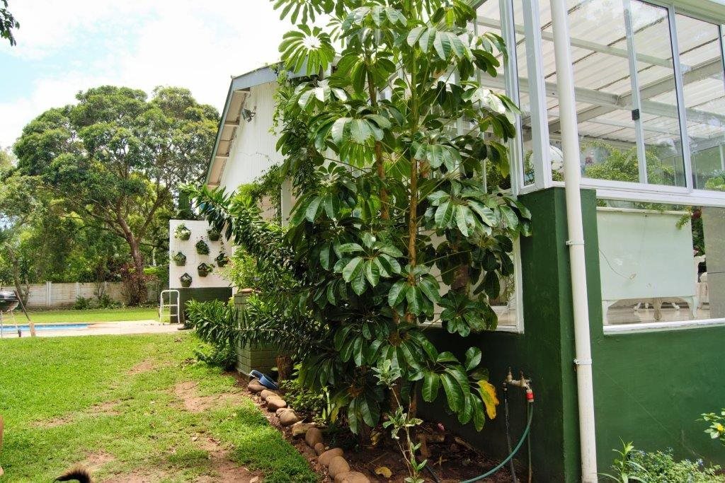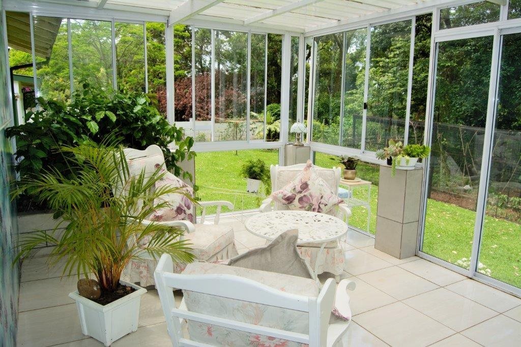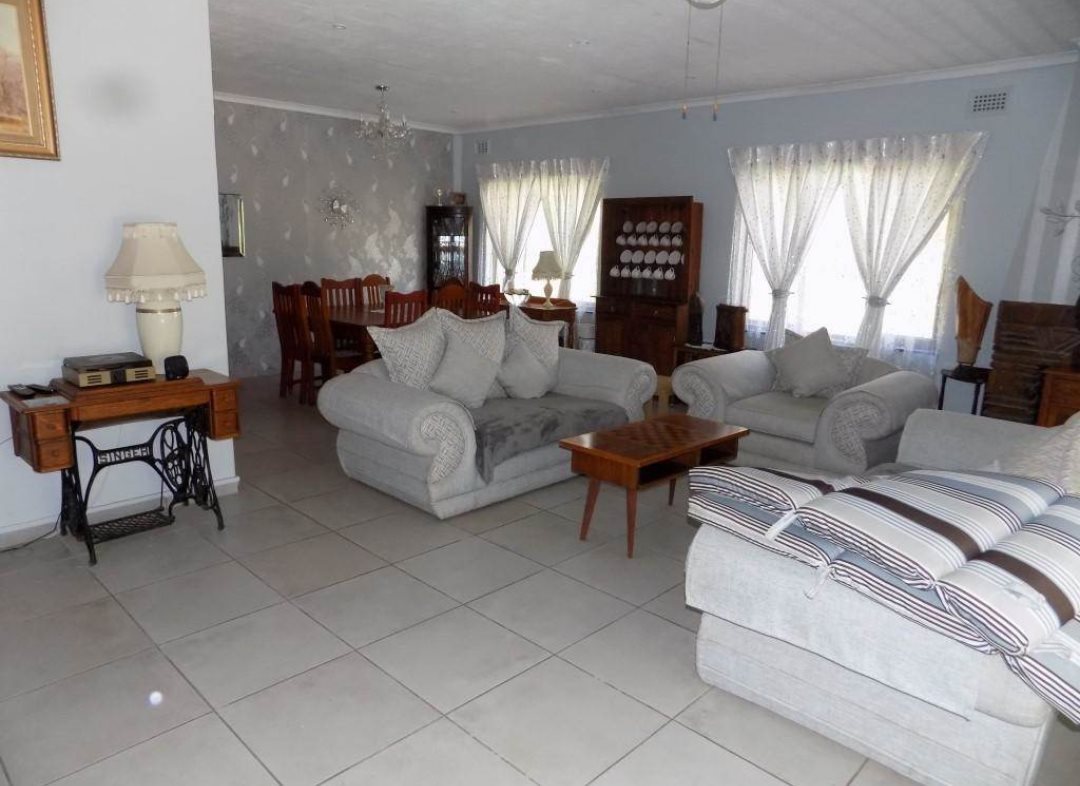 Sparkling blue swimming pool set in sprawling garden with prolific birdlife. Also a green house, ample parking, single garage, carport, storeroom and staff quarters!