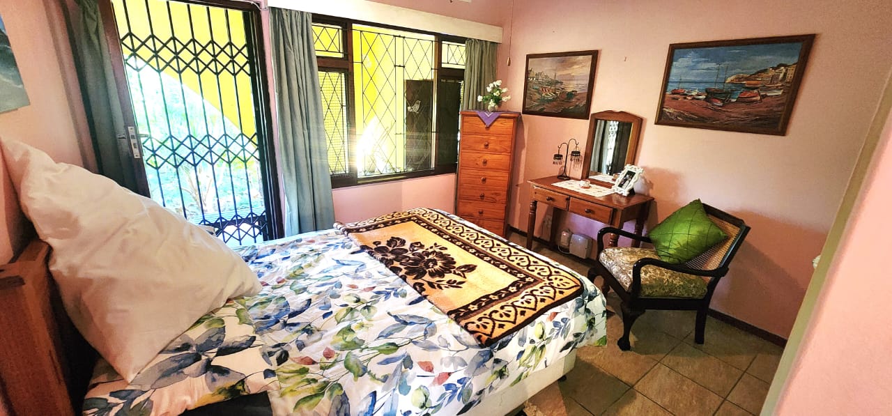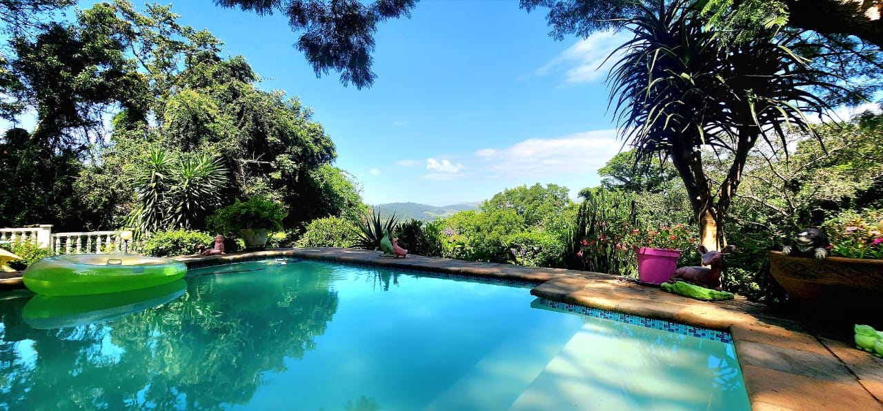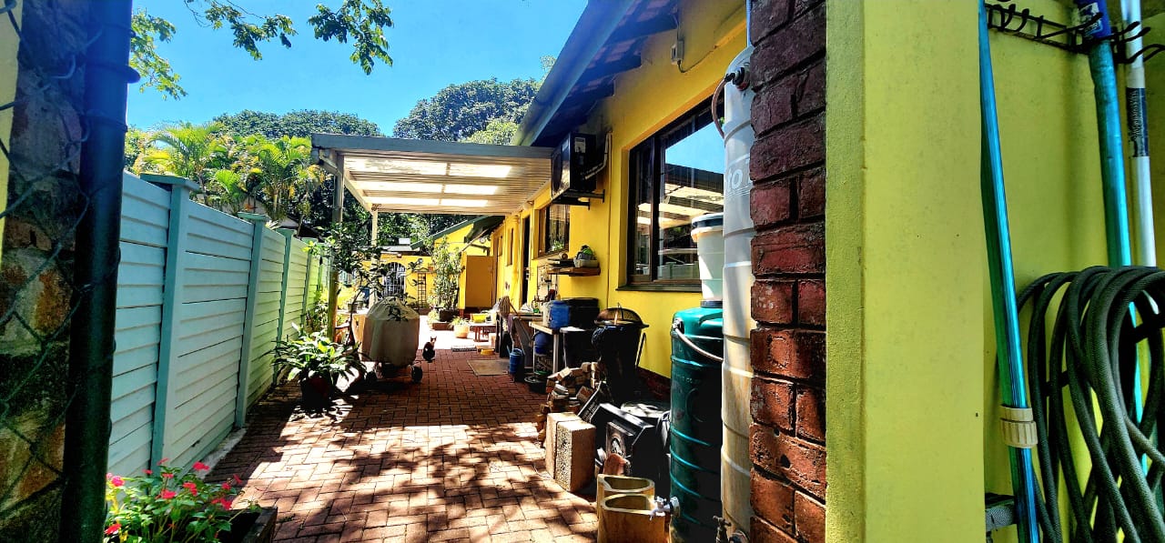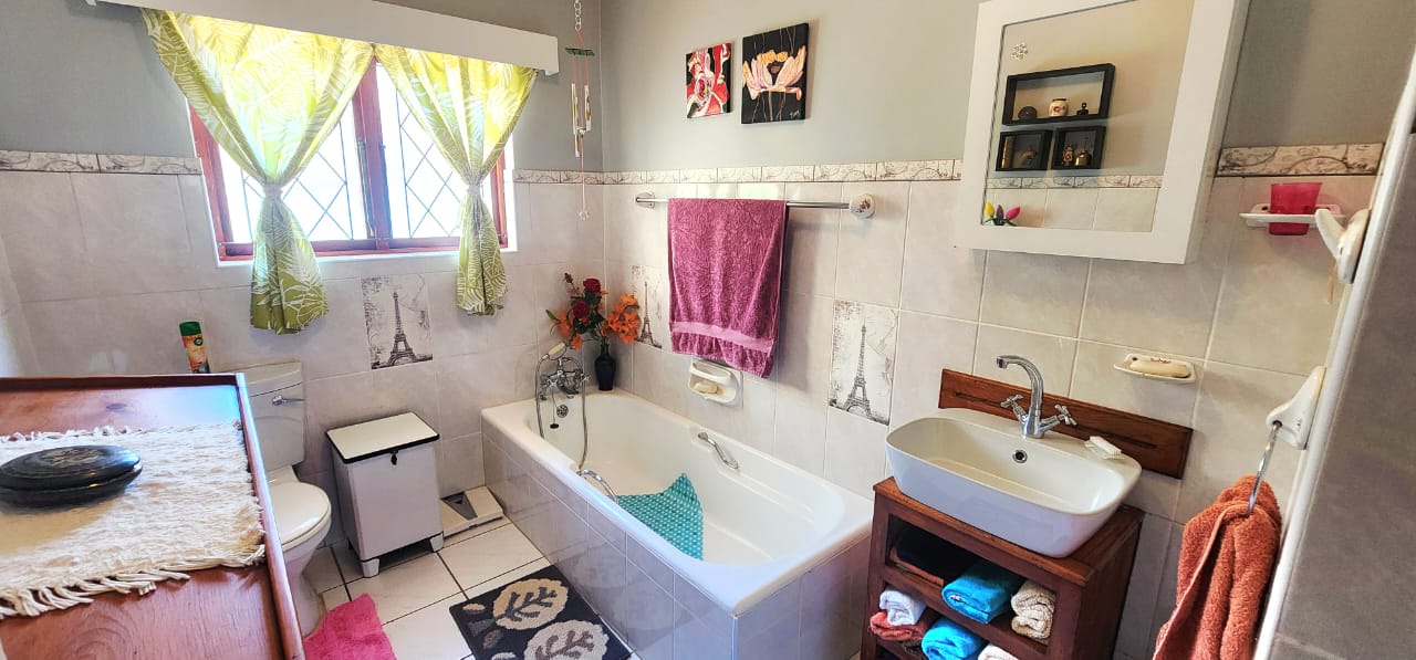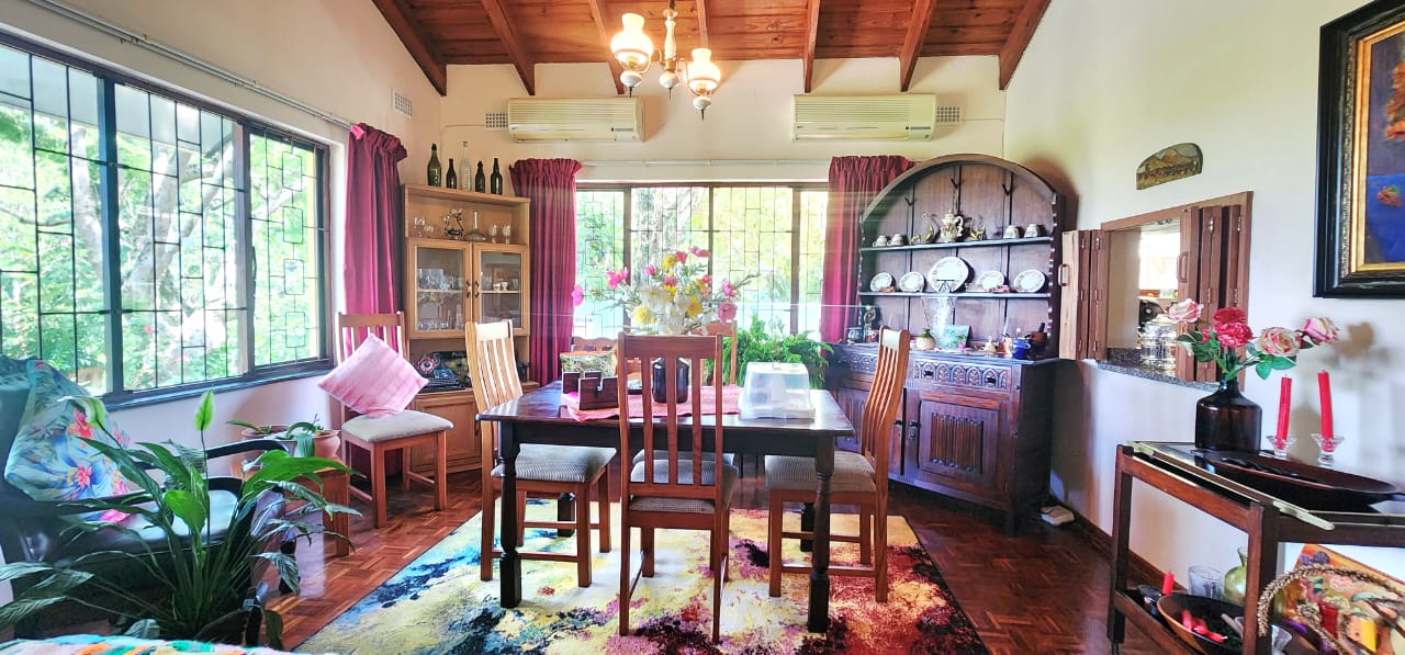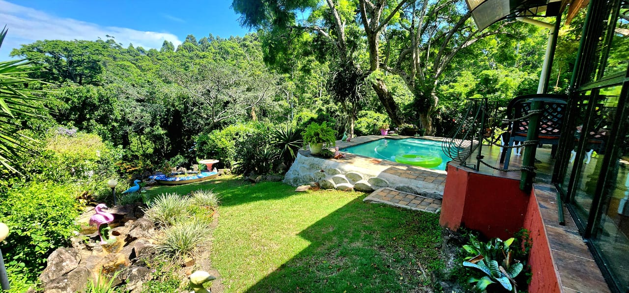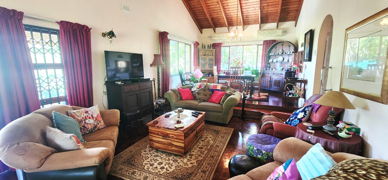 Situated in the upmarket village of Umtentweni, a short drive to Port Shepstone and the fabulous main beach. The home offers a large split level open plan lounge (sliding doors to the pool side covered patio, with amazing views of the valley and the mighty Umzimkulu river) and dining area, with stunning parquet flooring and vaulted ceilings, making it nice and cool in the summer months. The kitchen is separate, with a serving hatch to the dining area, it is farm style and has plenty of cupboard space and an abundance of natural light. There are 3 well sized bedrooms (one is used as a hobby room) two of them have doors to the front covered patio. The main is large and the room is filled with natural light through the 2 corner windows, there are plenty of cupboards and a full ensuite bathroom. The family bathroom consists of a bath, basin and toilet. Off the poolside patio is an open patio, overlooking the pool deck and 'the view', perfect for entertaining and admiring the abundant birdlife that frequent the tropical garden and large indigenous trees. There is a single garage plus 3 carports, all nice and secure with burglar bars and automated gate. water tanks take care of the dry days and there is a 3kw inverter taking care of power outages. An alarm system and beams , burglar guards and security gates takes care of the insecurities. This is an amazing, older home, solid as a rock, well maintained and oozing with serenity. Please contact us ANYTIME to chat further! Matriarch Real Estate powered by Mandated Property Group (Pty)Ltd