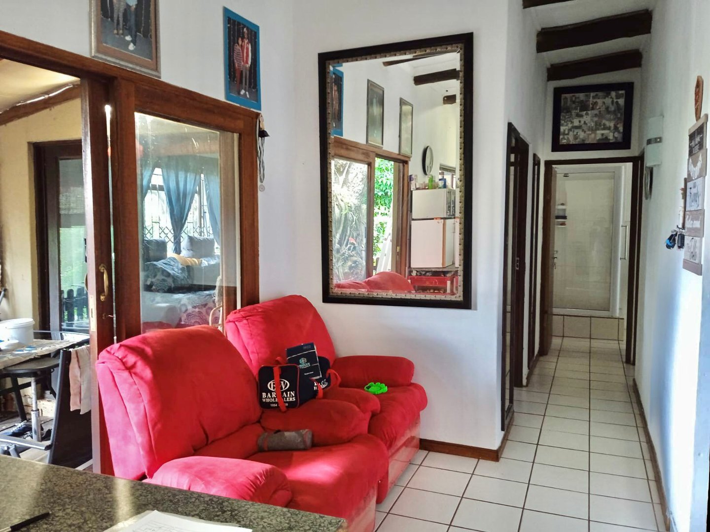 Situated in the safe suburb of Umzumbe with only 24 units, lies this 2 bedroom, 2 bathroom Townhouse set amongst beautiful, tranquil gardens, close to all amenities and fabulous beaches. Be welcomed to this unit by the undercover carport, enter the home to the open plan lounge, dining room and kitchen with doors to an undercover patio. Head down the passage to the main bedroom with fan, build in cupboards and doors leading to the undercover patio. The main bedroom has an en-suite bathroom (shower, toilet & basin) The 2nd bedroom is large in size with build in cupboards and a fan. There is another bathroom which services the 2nd bedroom. This unit comes with a gas stove and gas geyser. The complex has water tanks for those dry days, giving uninterrupted water supply and a communal pool for endless hours of fun in the sun. A cute townhouse, ideal for a small family, for holidays or to generate and extra income