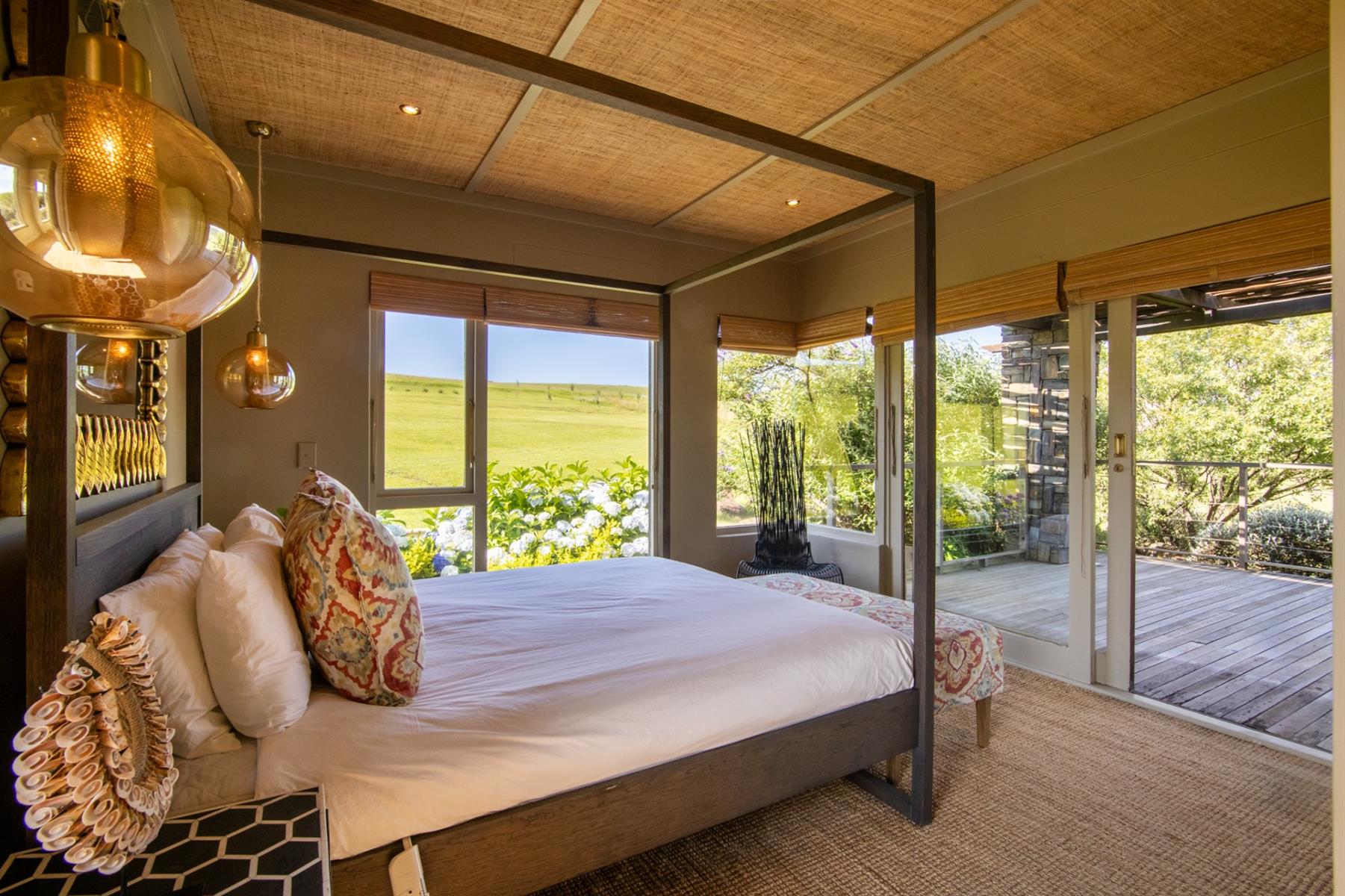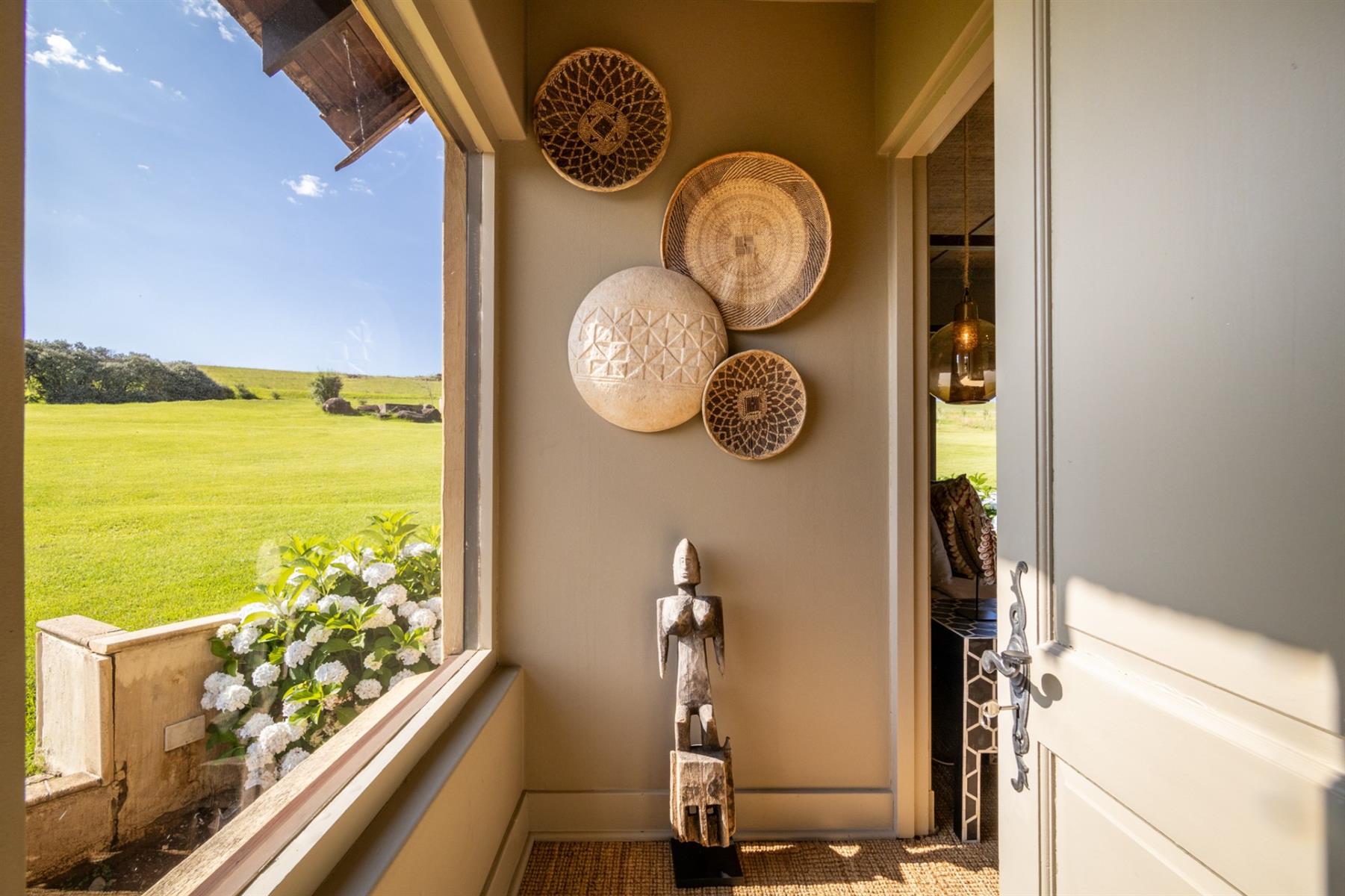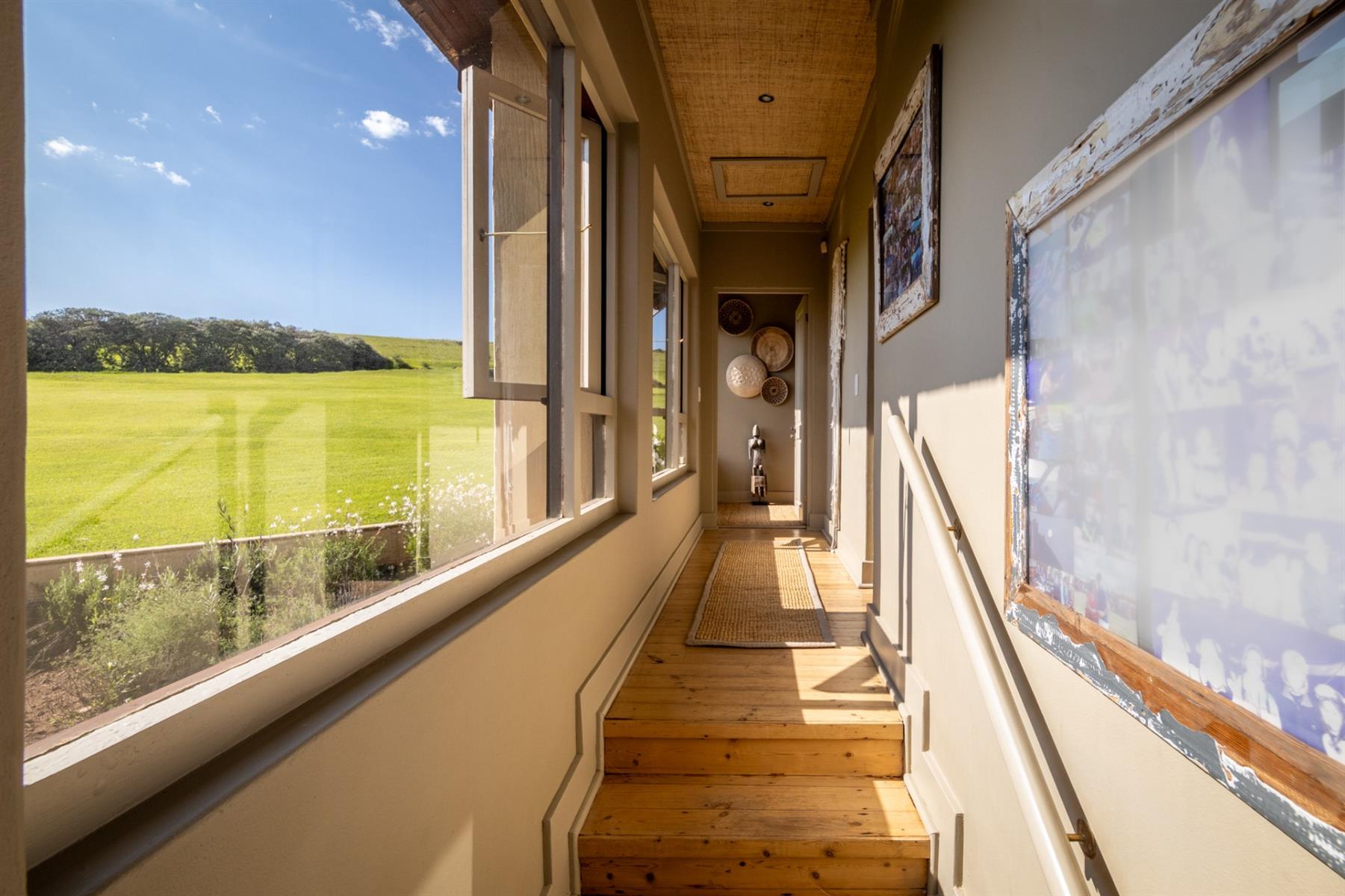 Designed to appeal to both local and international buyers, the home blends contemporary comfort with the relaxed elegance of country living. It offers four generous en-suite bedrooms, each opening onto a private veranda, along with expansive open-plan living and dining areas centred around a striking feature fireplace and flowing seamlessly into the surrounding landscape. The open-plan kitchen is thoughtfully supported by a scullery, pantry, naturally seasoned wine cellar, and laundry, while a games and reading room and staff accommodation add versatility and ease to everyday living.