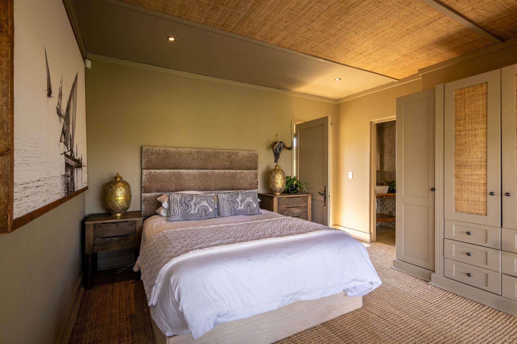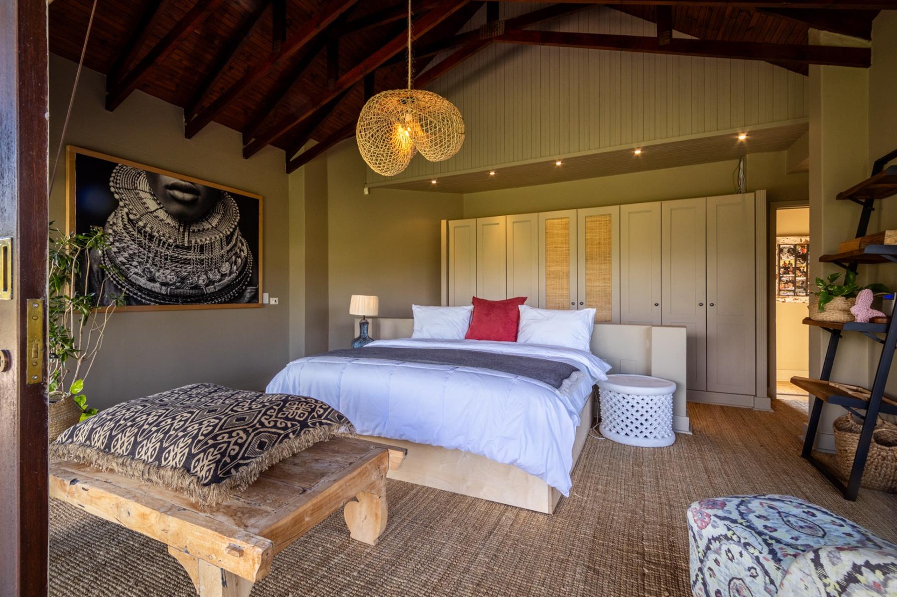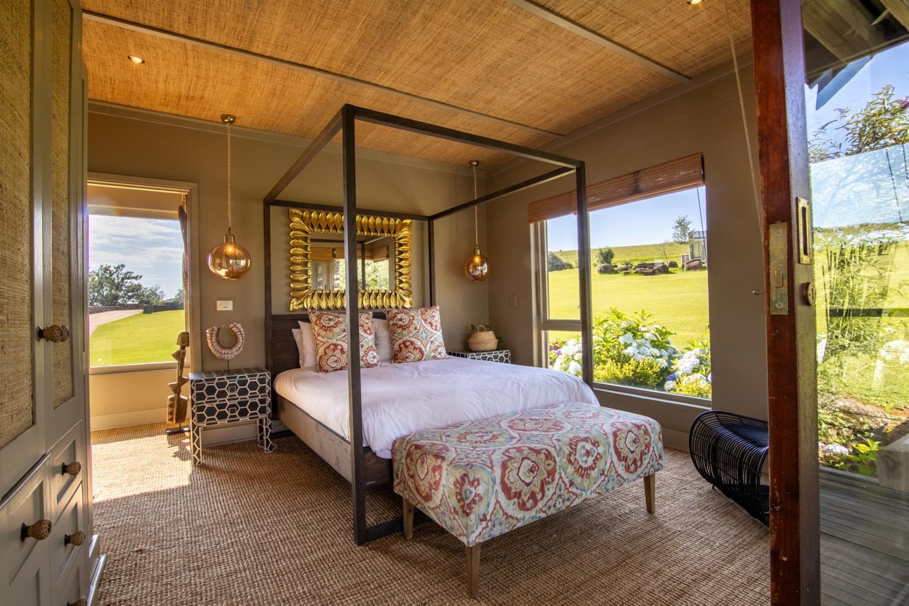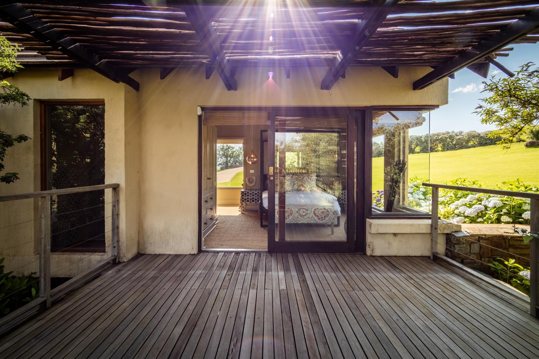 Designed to appeal to both local and international buyers, the home blends contemporary comfort with the relaxed elegance of country living. It offers four generous en-suite bedrooms, each opening onto a private veranda, along with expansive open-plan living and dining areas centred around a striking feature fireplace and flowing seamlessly into the surrounding landscape. The open-plan kitchen is thoughtfully supported by a scullery, pantry, naturally seasoned wine cellar, and laundry, while a games and reading room and staff accommodation add versatility and ease to everyday living.