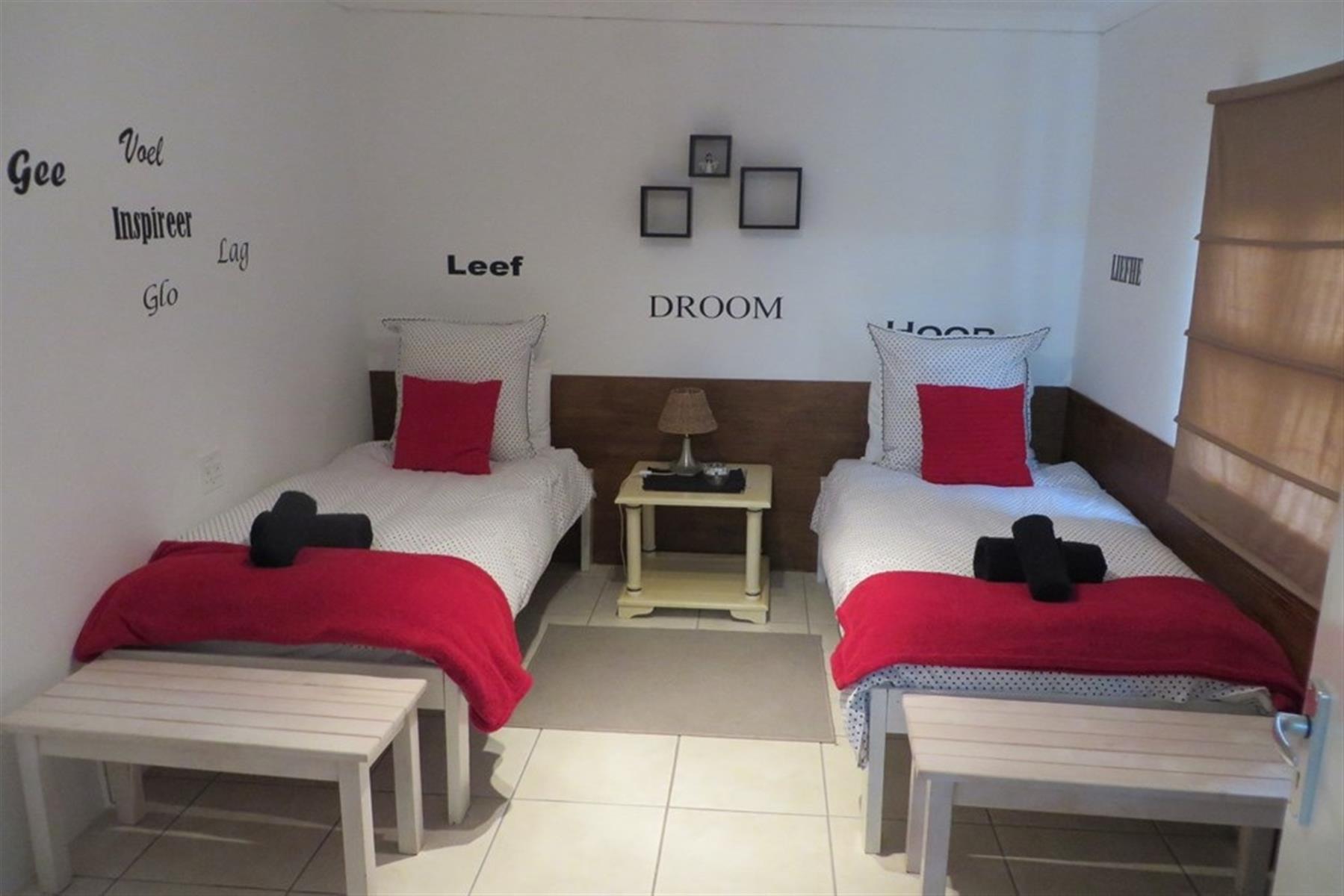 - One bedroom - En-suite bathroom with toilet, shower & basin - Open plan lounge / kitchen area with fireplace and old charm kitchen fire place - Front stoep with built in braai - Gas geyser system - Satellite dish with flat screen open view - Enclosed garden area .