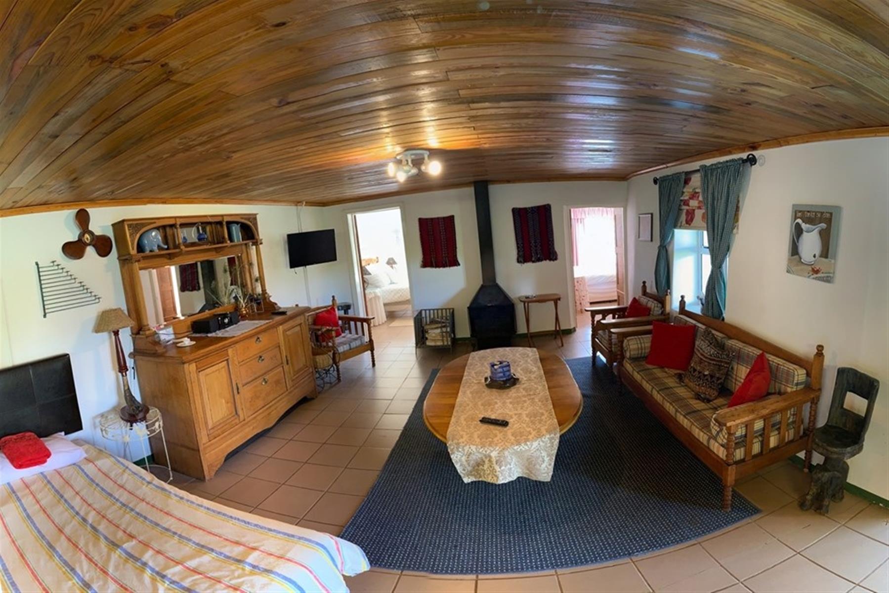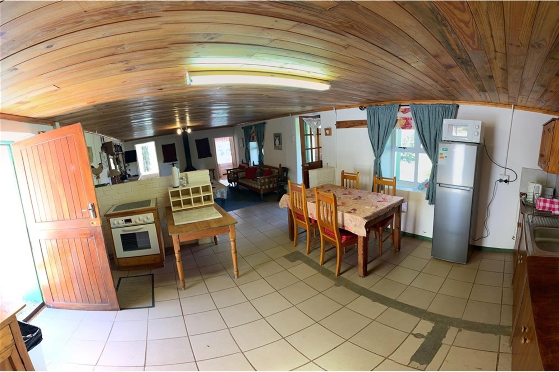 - The original old style farm house with pine ceiling - Two bedrooms with free standing cupboards - Open plan lounge / dining / kitchen with old charm kitchen fire place - Fireplace in the lounge - Bathroom with toilet / shower / basin leading off bedroom 2 and the front stoep - Gas geyser system - Satellite dish with flat screen open view - Front stoep area - Open braai area with seating at the back of the house.