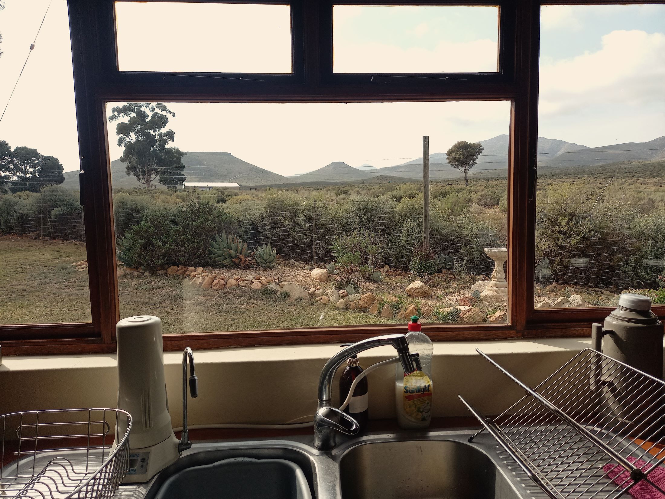 Lovely view from wash basins – just look at the mountain and pastures view through the kitchen sink window