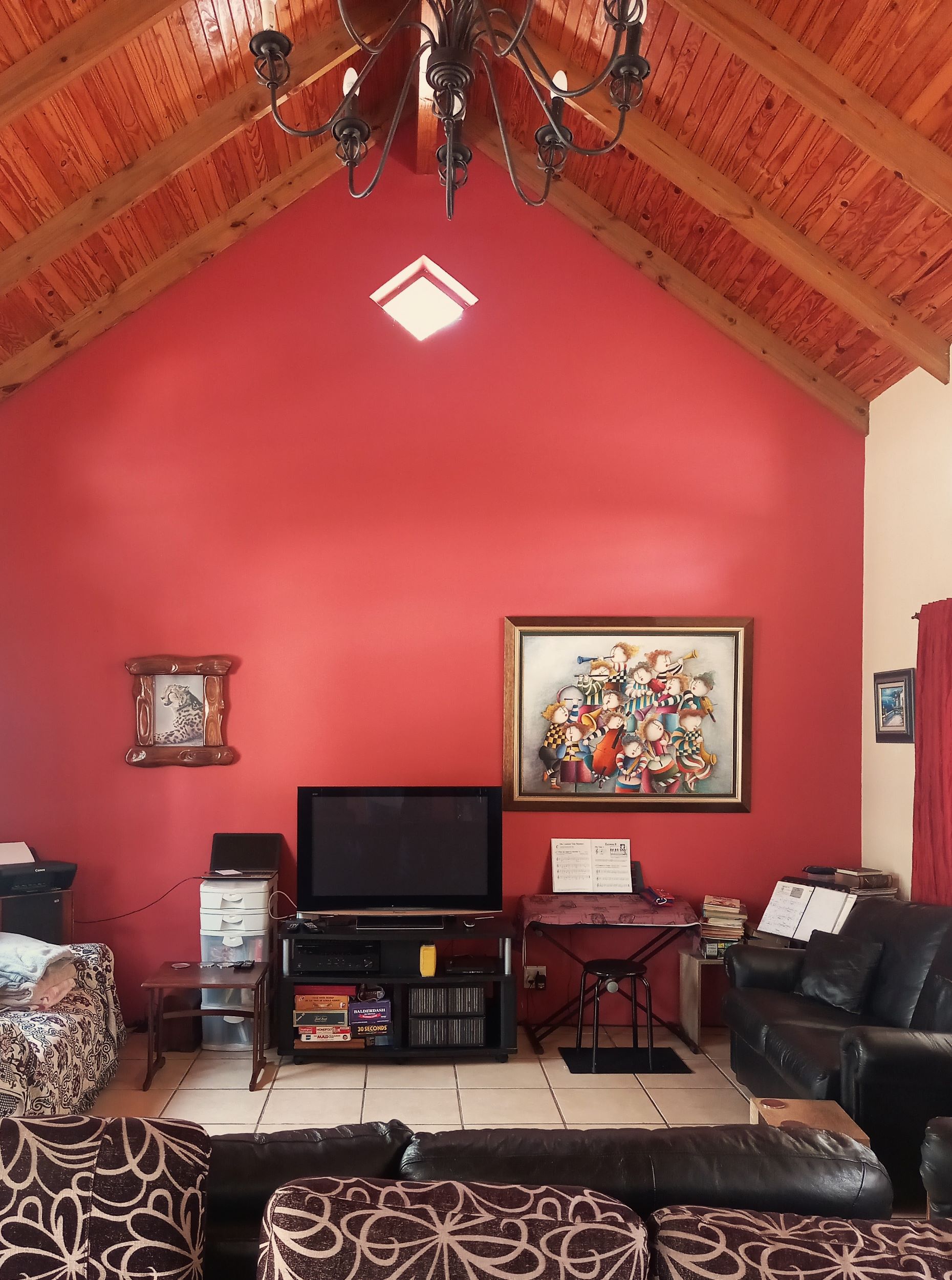 Into lounge area which is double volume giving a feeling of space and coolness completed with pine panelled ceilings with sense of comfort and grandeur.