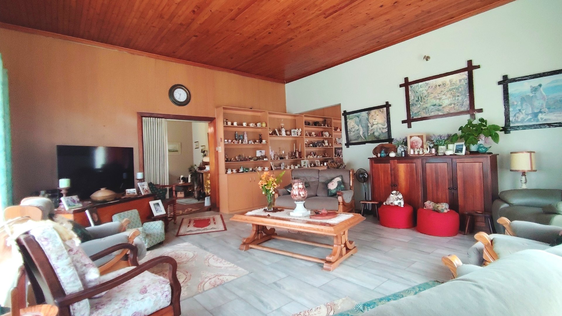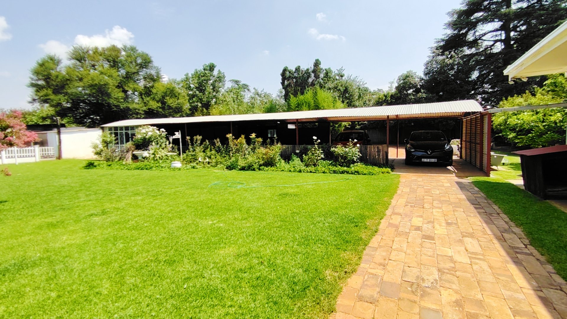The spacious family home offers three bedrooms and two bathrooms. The living areas include a formal lounge, a cozy TV room, and a dining area. The well-appointed kitchen is built for any occasion, featuring a unique combination of coal, electric, and gas stoves, complemented by a separate laundry room.
