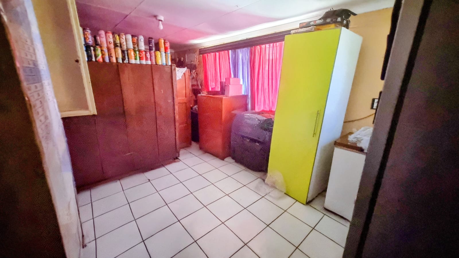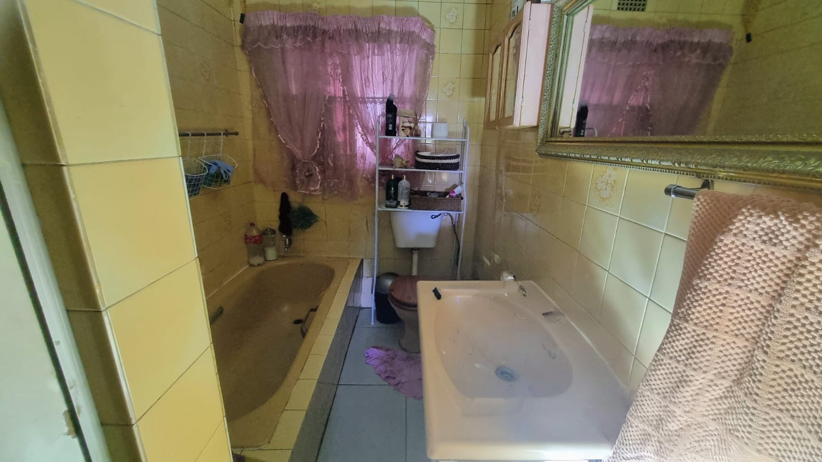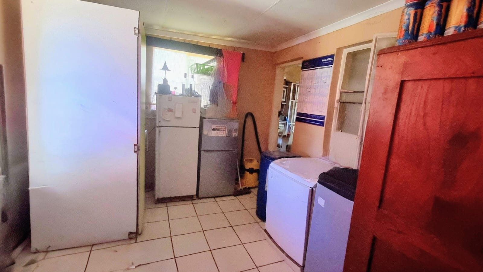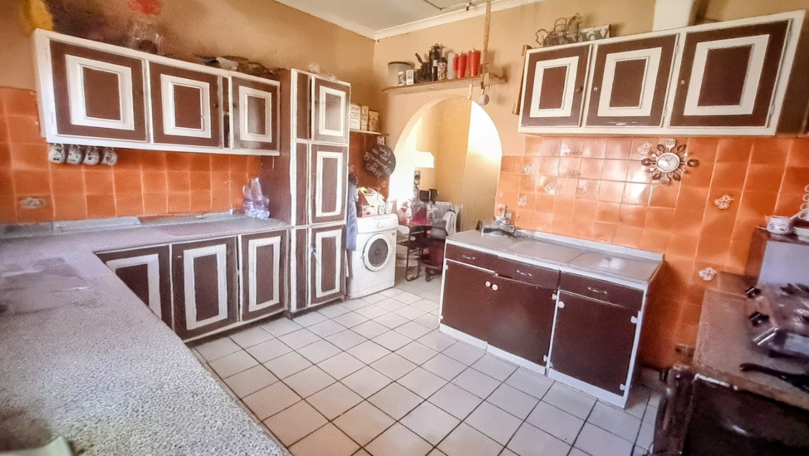 The second house features two bedrooms, with the main bedroom boasting built-in cupboards. There is one bathroom with a bath, basin, and toilet. The kitchen has built-in cupboards, sufficient counter space, and a free-standing oven/stove, with a separate laundry area adding convenience. The open-plan lounge and dining room is perfect for everyday living, and the property includes a single, lock-up garage and a lock-up carport.